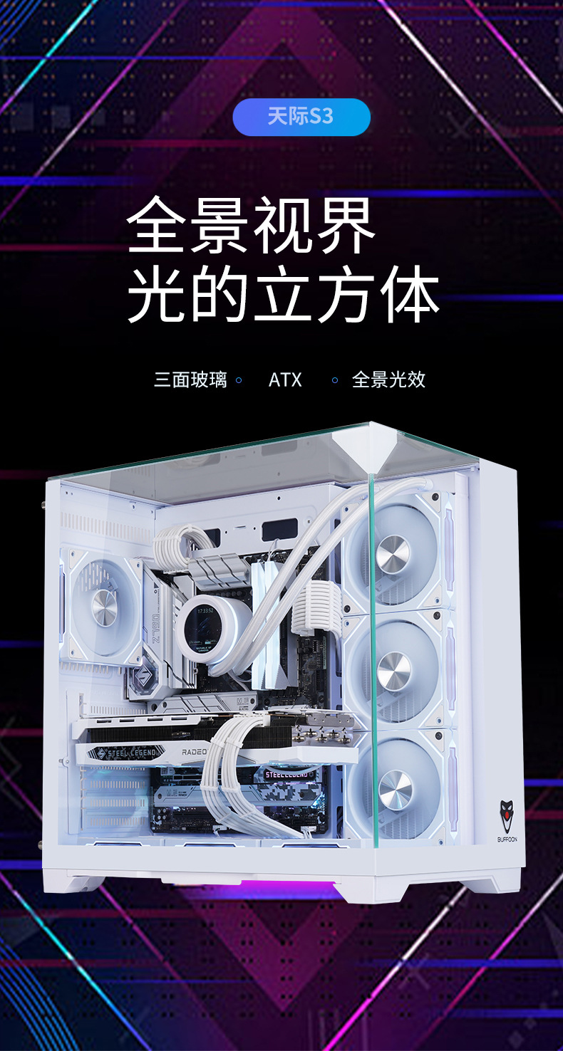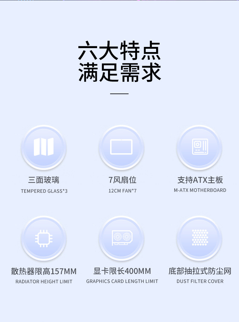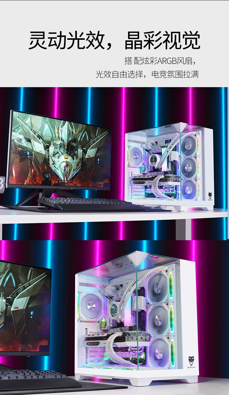 7风扇位全景光效台式电脑主机机箱三面钢化玻璃ATX游戏电竞机箱