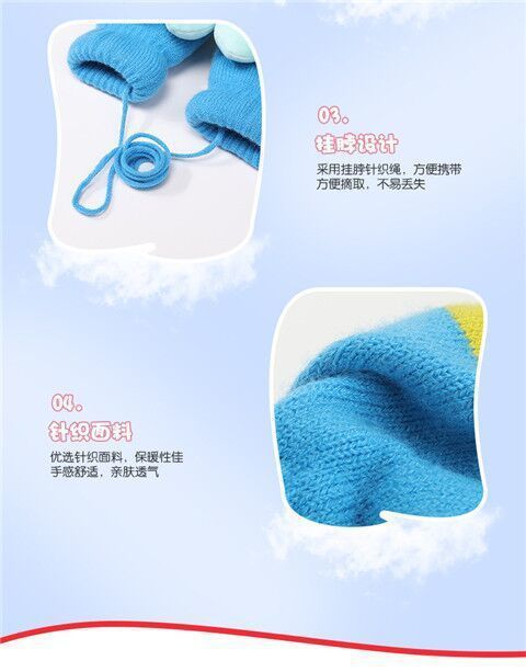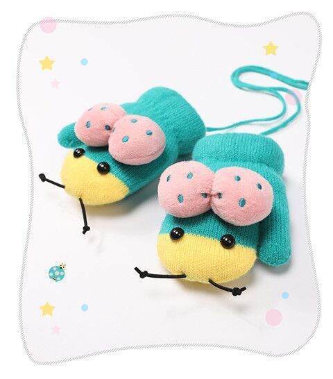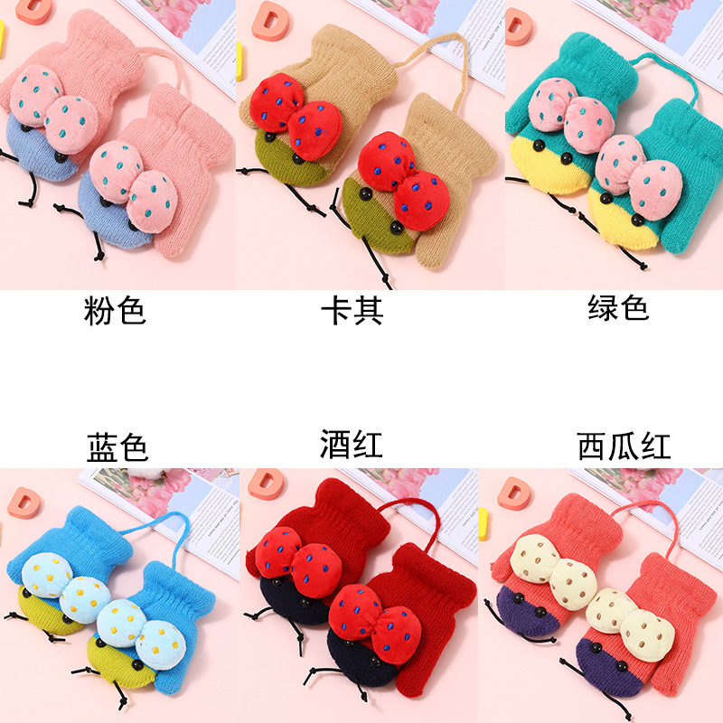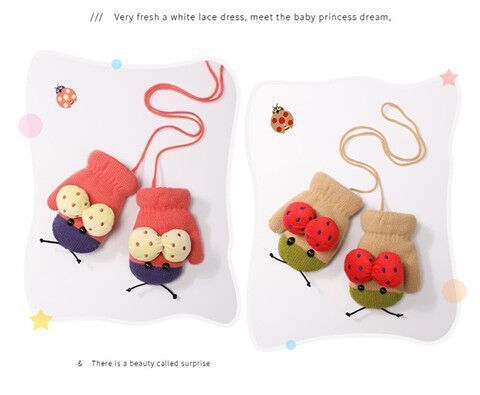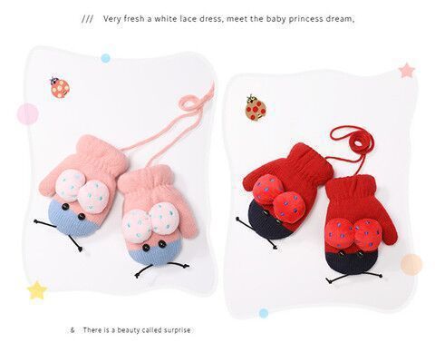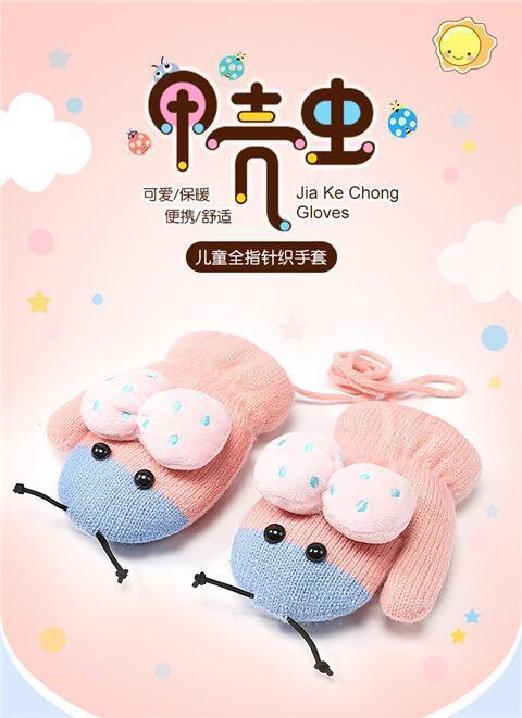 어린이용 겨울 장갑, 새로운 스타일의 벨벳 안감, 귀여운 만화 무당벌레 디자인, 니트 소재, 손가락 덮개, 성인용, 끈으로 묶는, 따뜻한 5손가락 장갑스토어 가기
