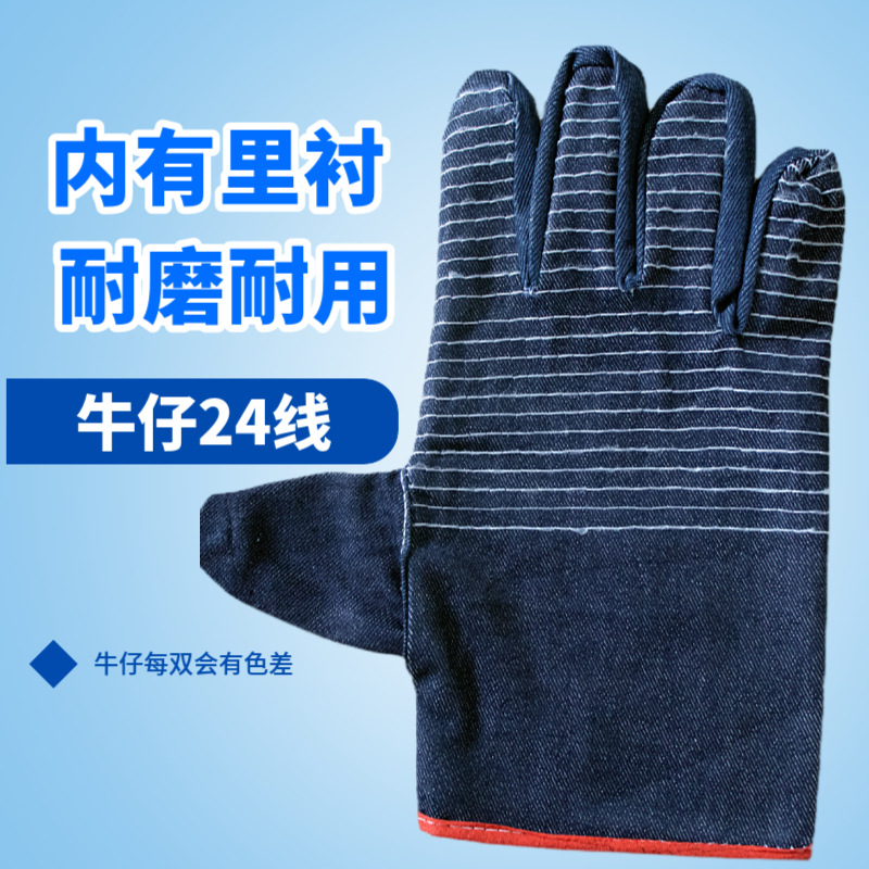 데님 노동 보호 장갑 24 라인 통기성 미끄럼 방지 두꺼운 노동 보호 내마모성 작업 야외 현장 가공 장갑 남성과 여성