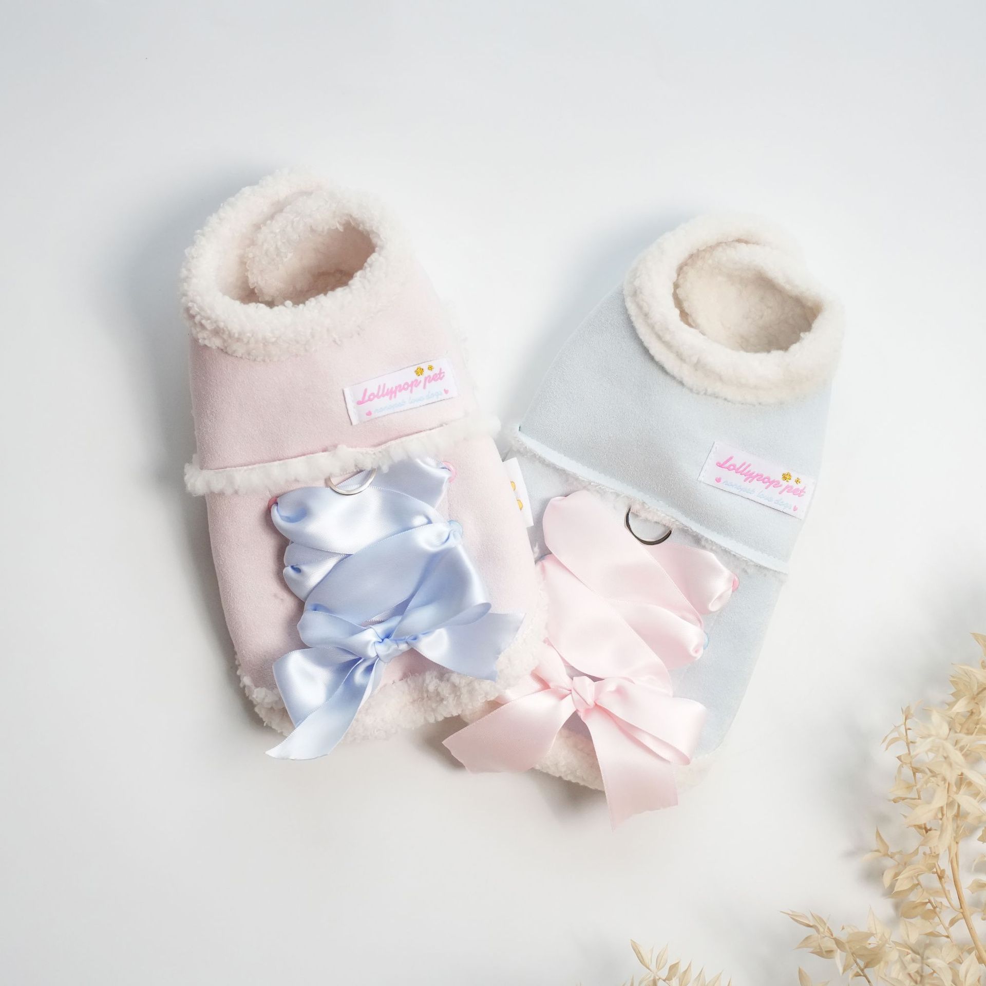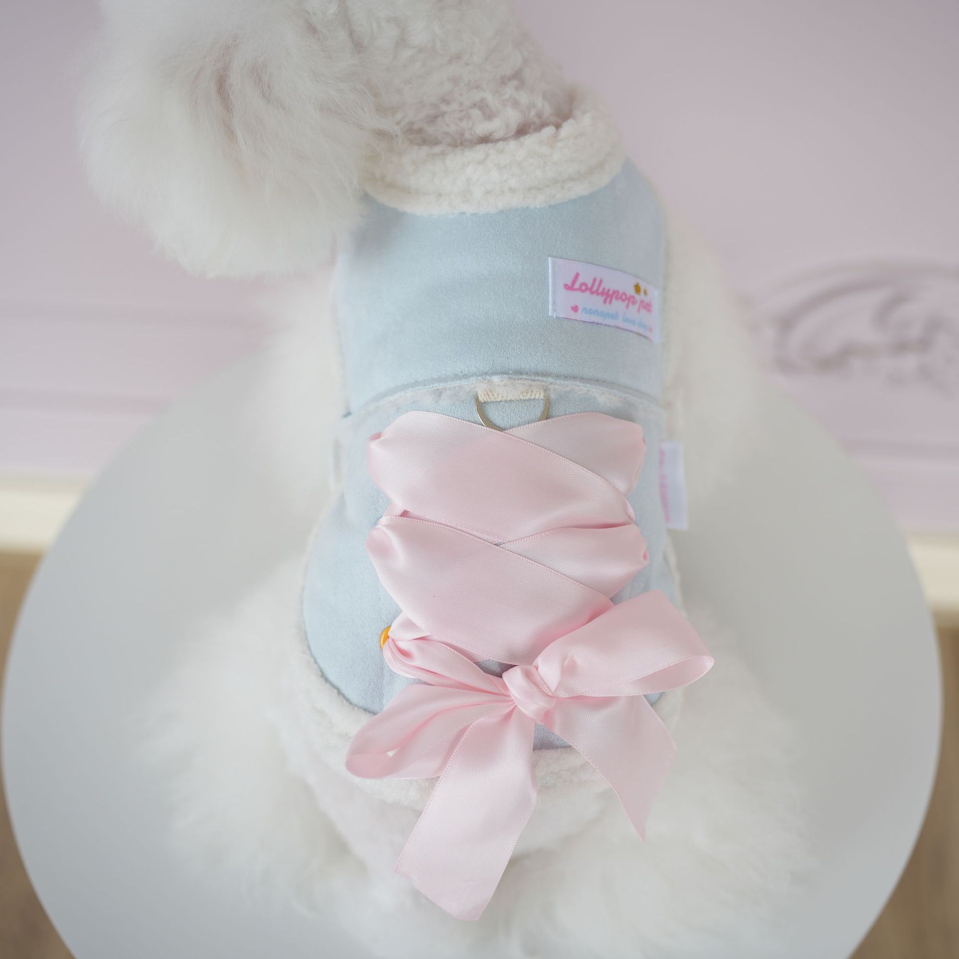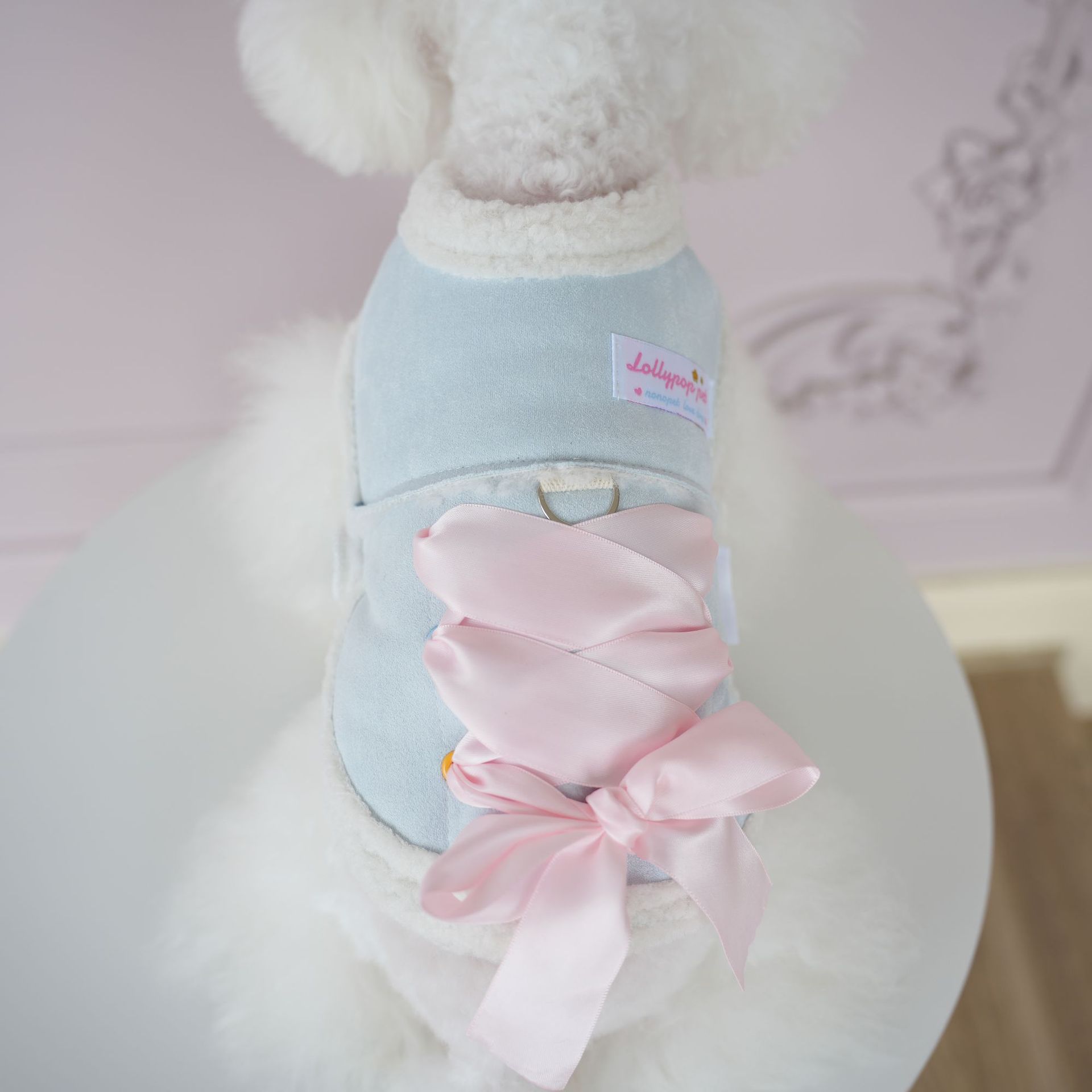 Lollipop 애완 동물 옷 가을과 겨울 새로운 Tether 1 면 옷 개 옷 고양이 핑크 파란색 두 다리 옷 견인