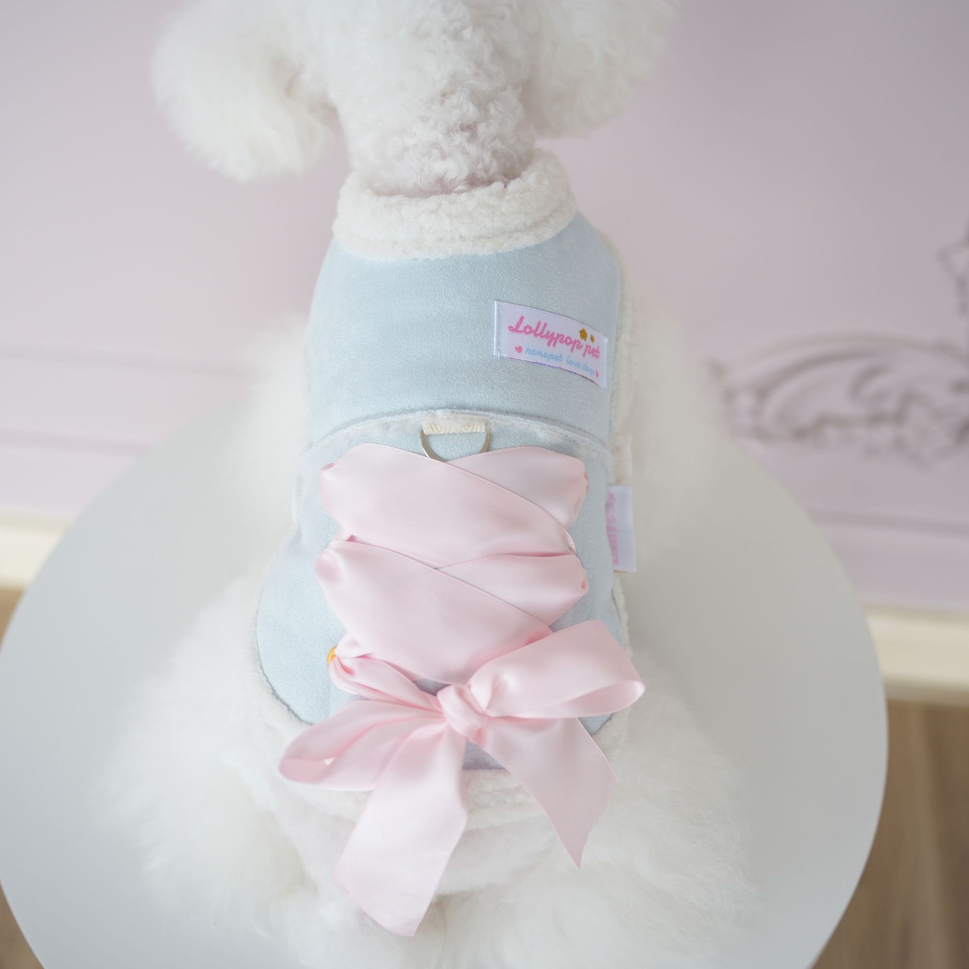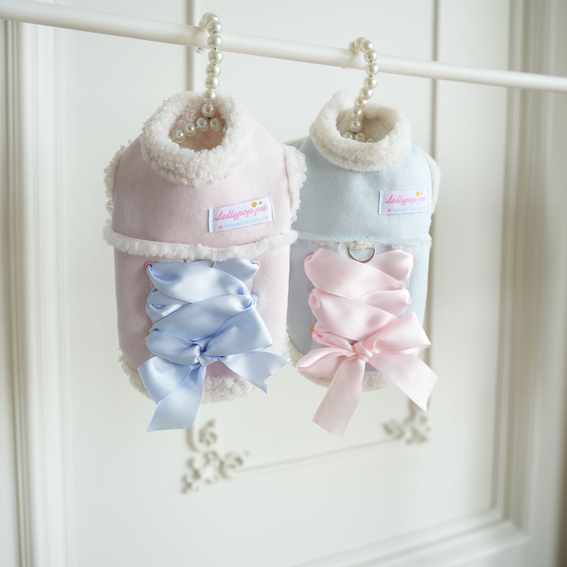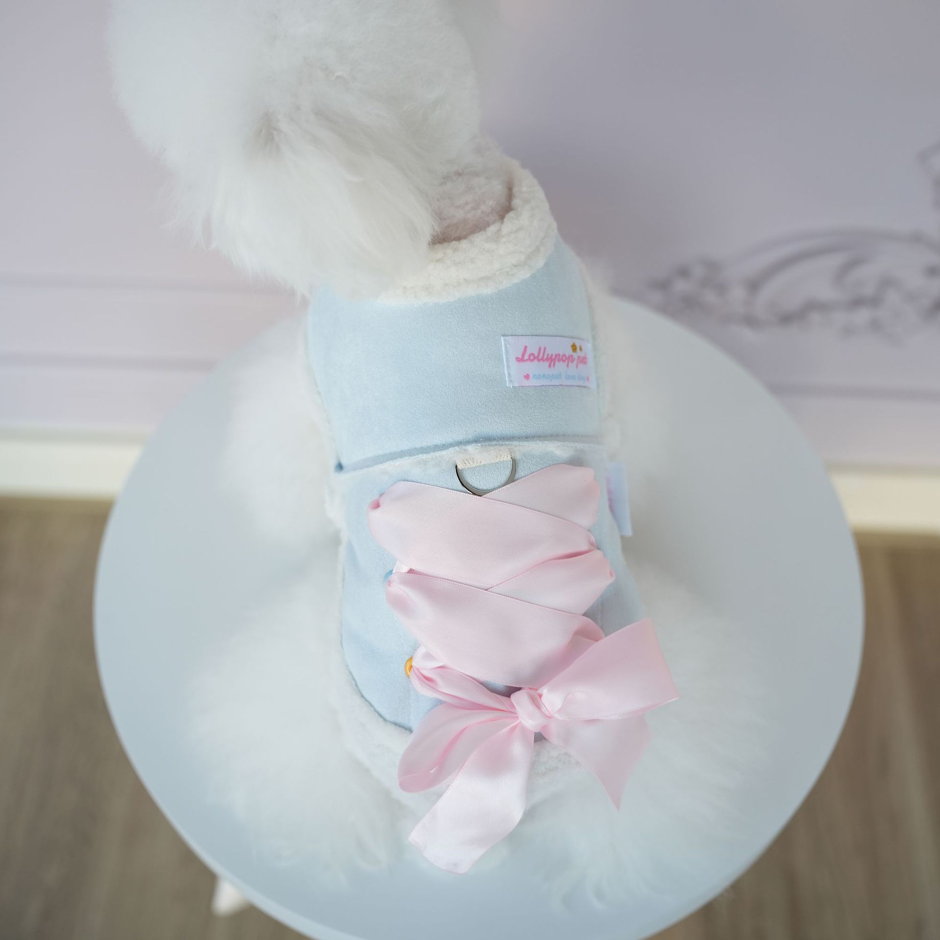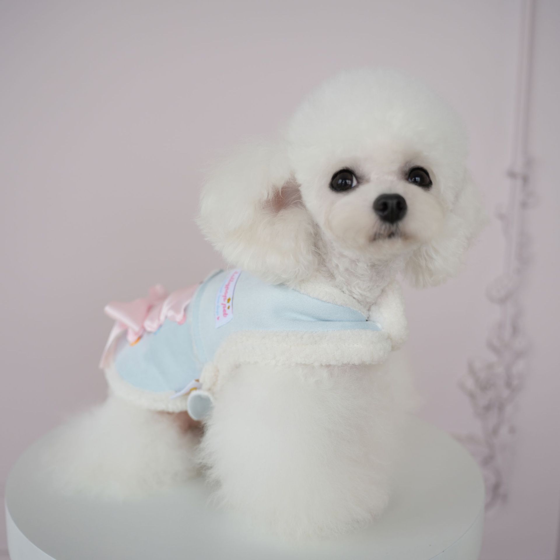Lollipop 애완 동물 옷 가을과 겨울 새로운 Tether 1 면 옷 개 옷 고양이 핑크 파란색 두 다리 옷 견인