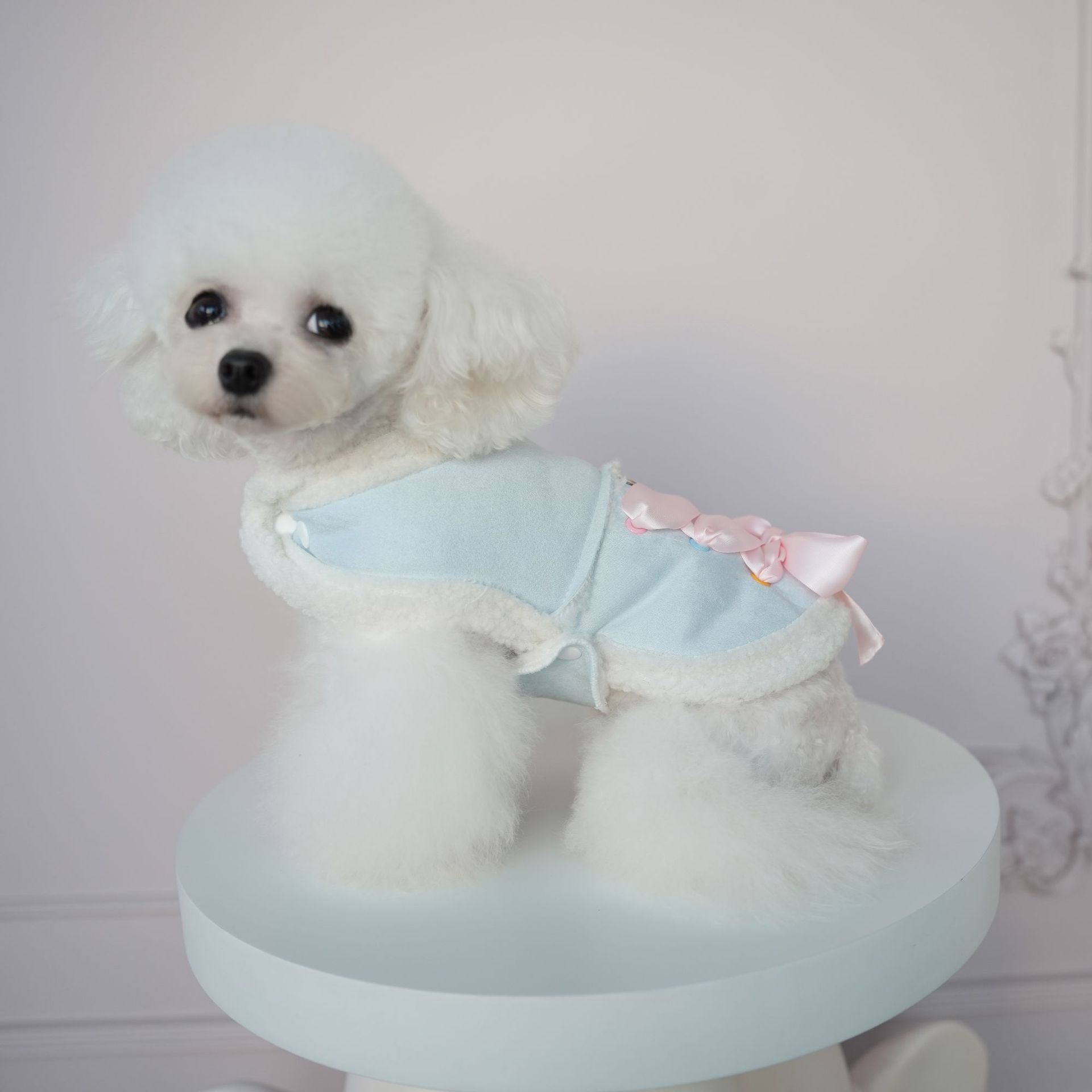 Lollipop 애완 동물 옷 가을과 겨울 새로운 Tether 1 면 옷 개 옷 고양이 핑크 파란색 두 다리 옷 견인스토어 가기