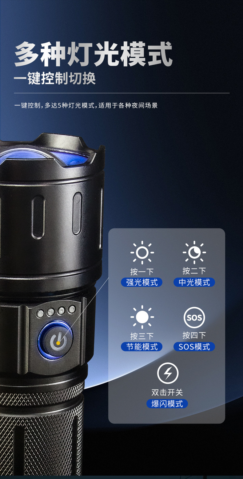 국경을 넘는 강한 가벼운 장거리 줌 손전등 흰색 레이저 야외 순찰 모험 다기능 휴대용 고출력 스포트라이트스토어 가기