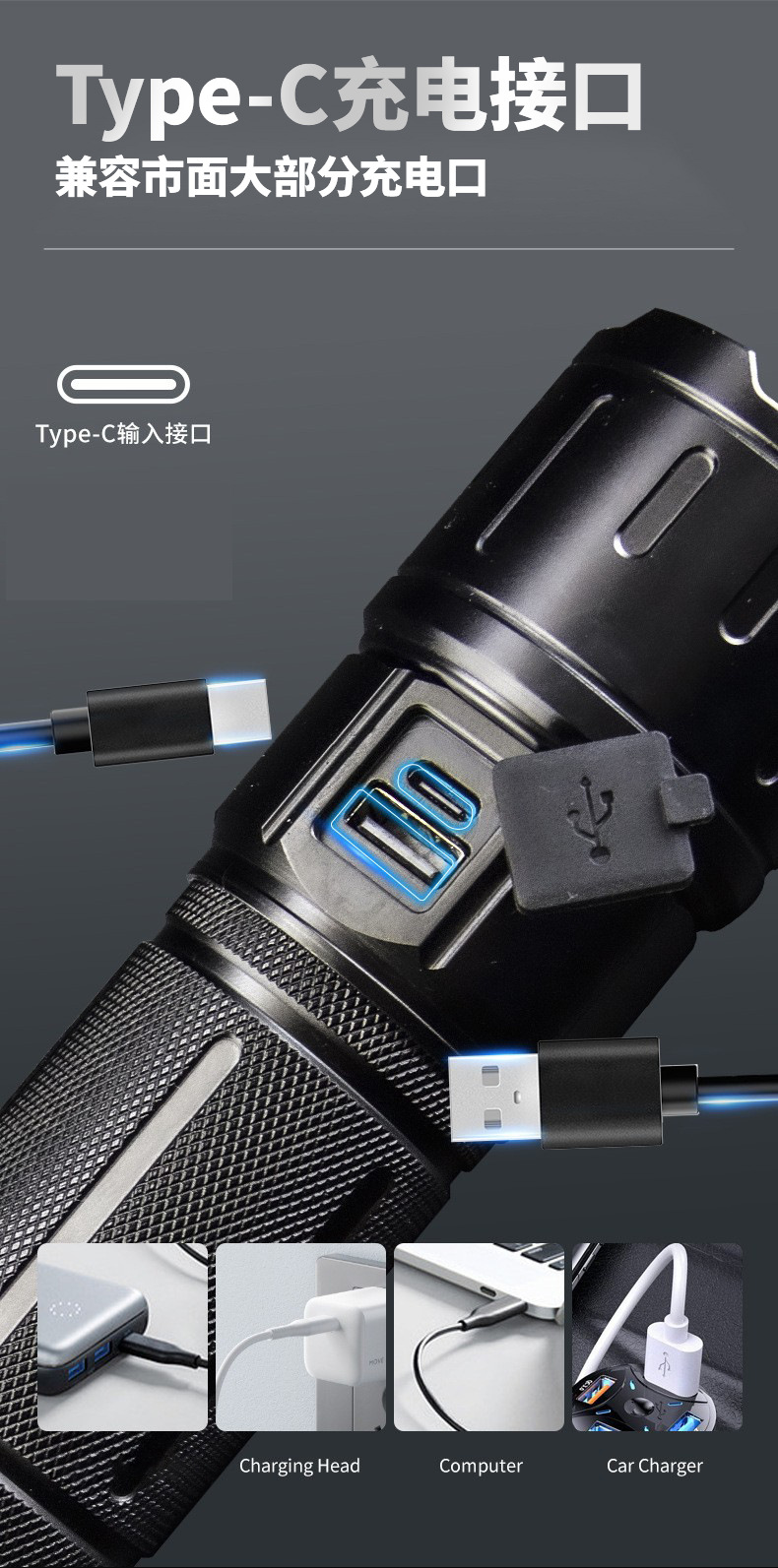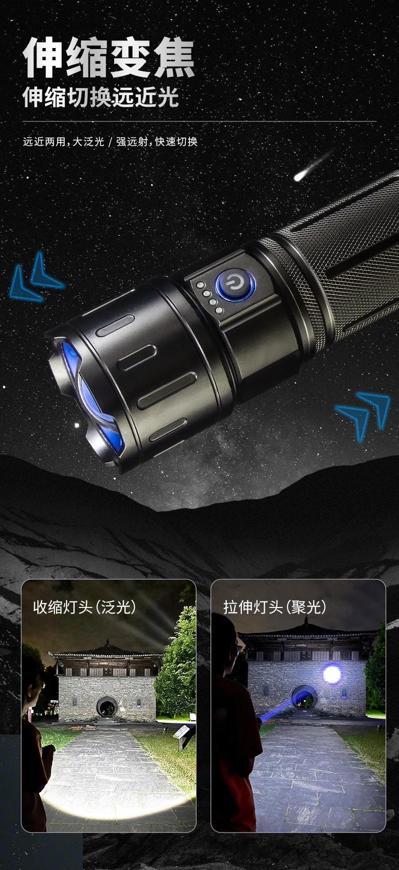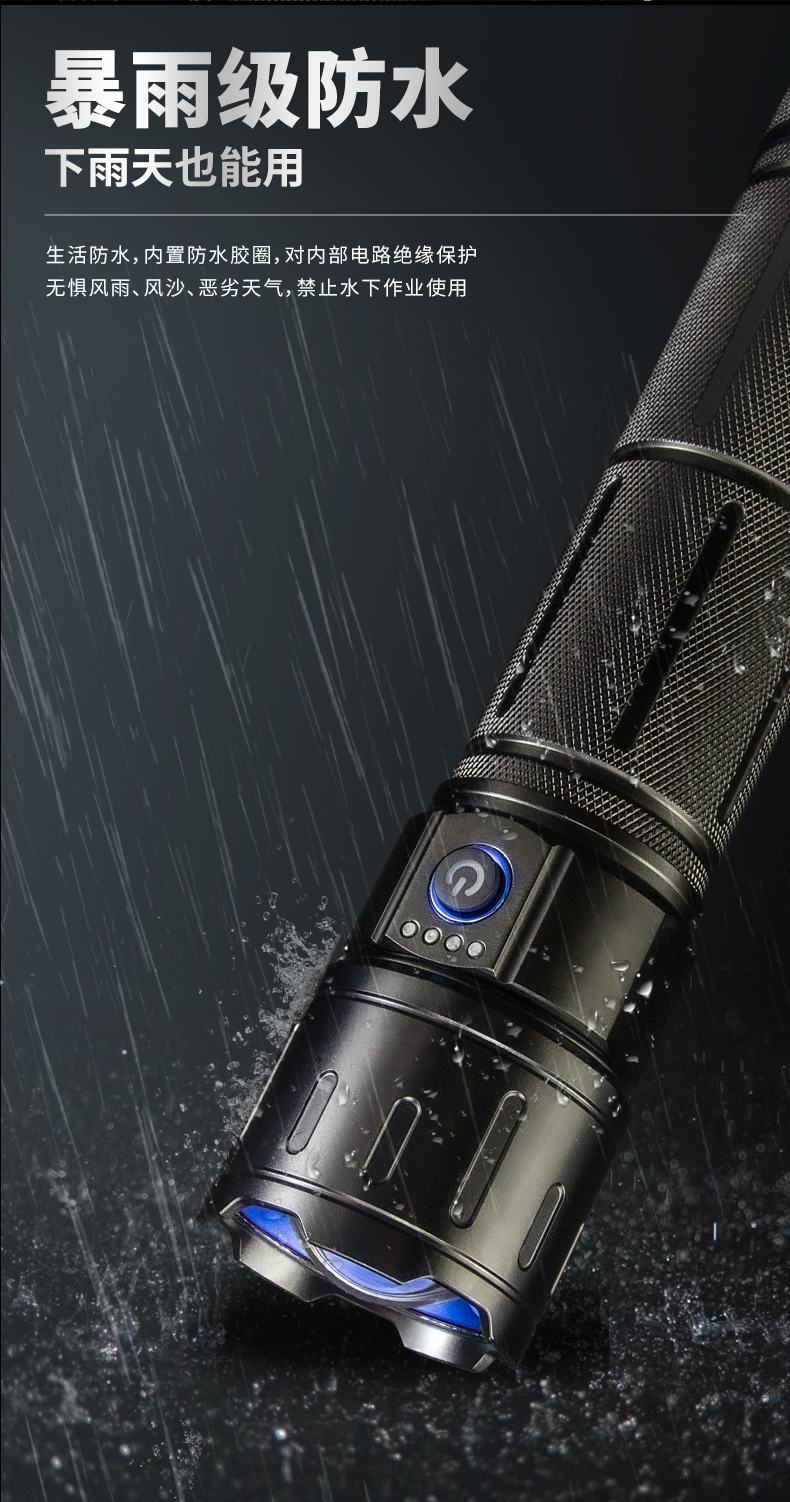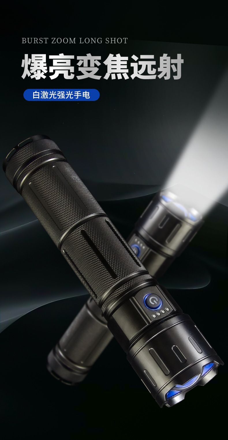 국경을 넘는 강한 가벼운 장거리 줌 손전등 흰색 레이저 야외 순찰 모험 다기능 휴대용 고출력 스포트라이트