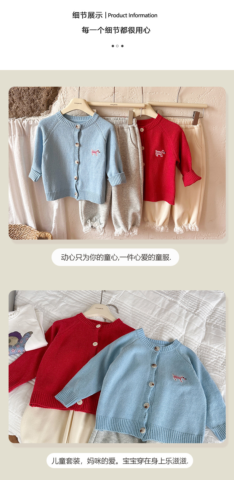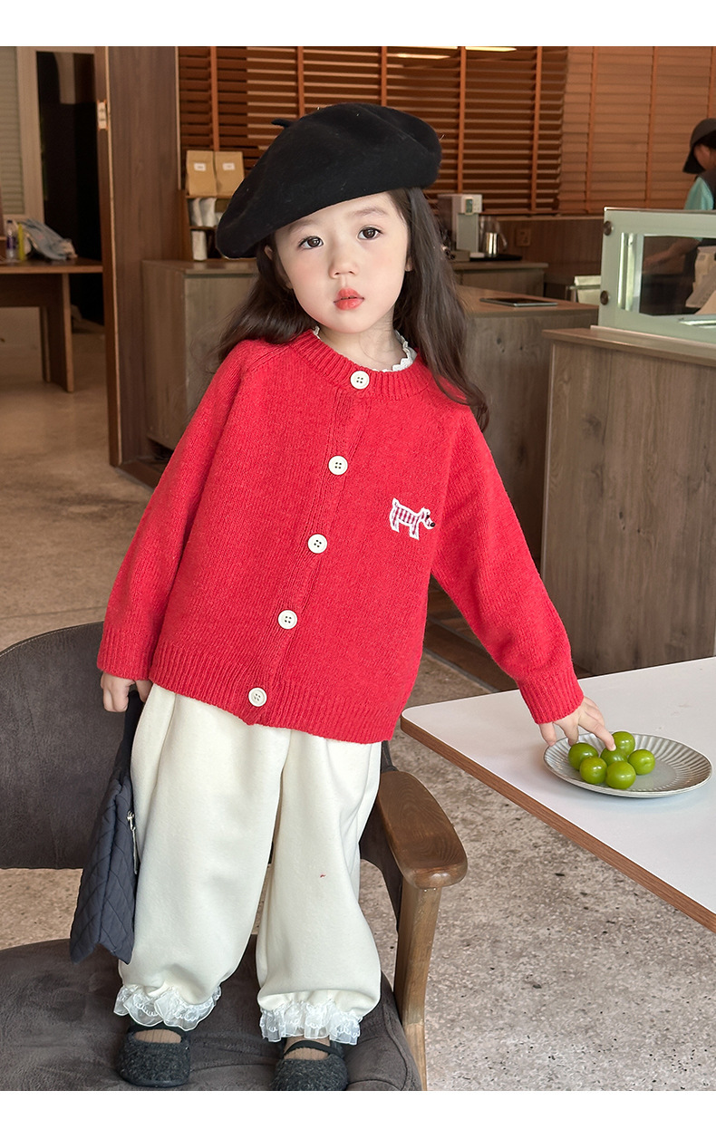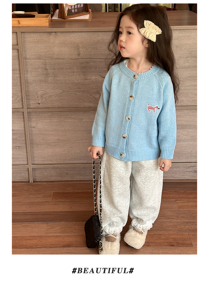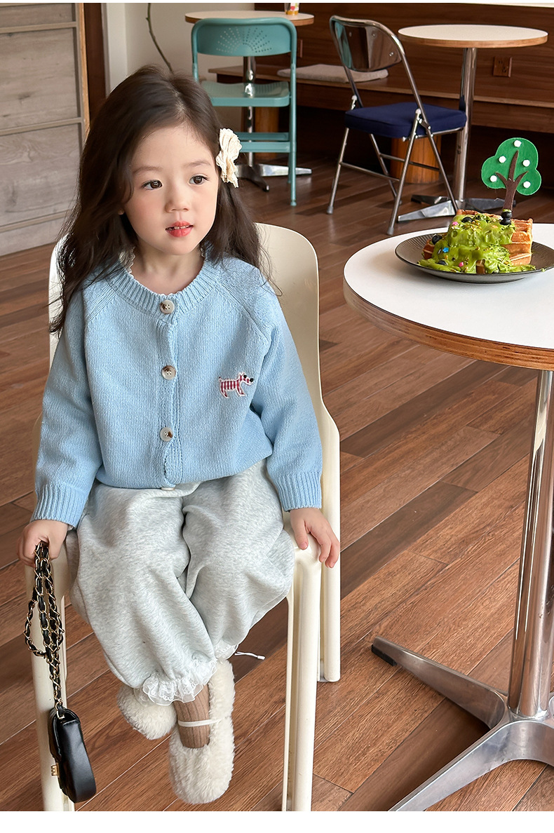 한국 아동복 ins 소녀 솔리드 컬러 카디건 스웨터 2025 가을 캐주얼 다목적 스포츠 스웨트 팬츠 세련되고 세련된스토어 가기