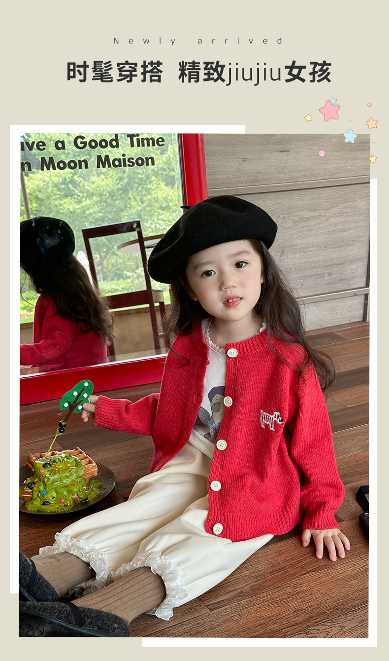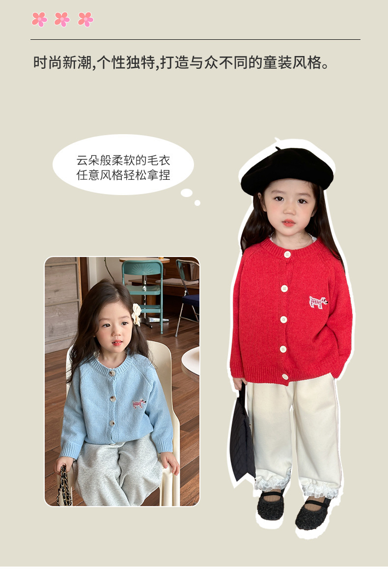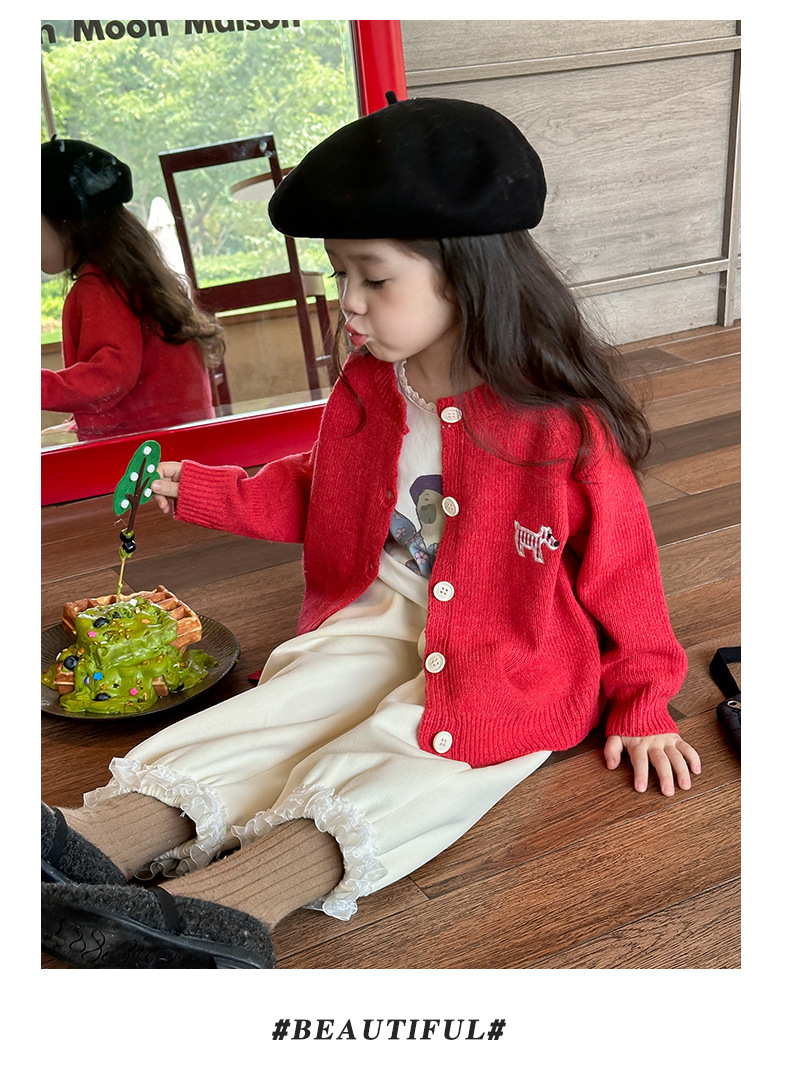 한국 아동복 ins 소녀 솔리드 컬러 카디건 스웨터 2025 가을 캐주얼 다목적 스포츠 스웨트 팬츠 세련되고 세련된스토어 가기