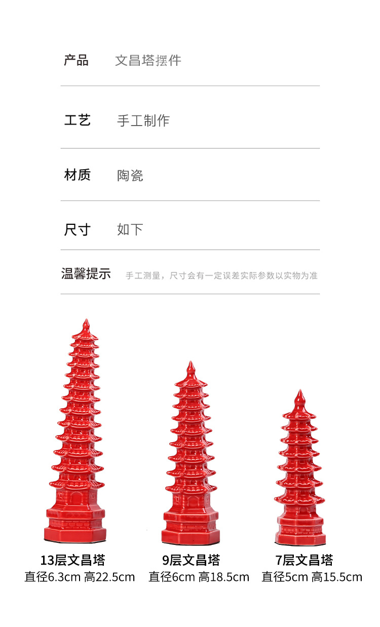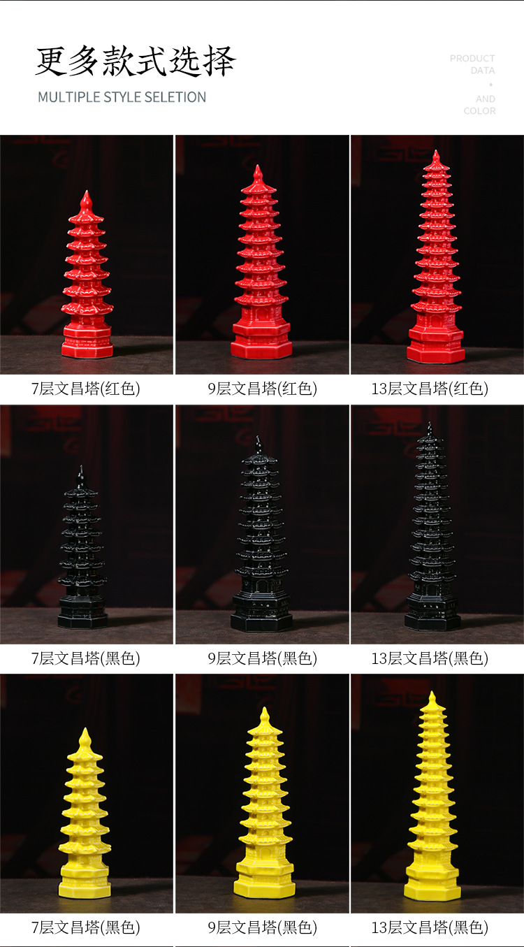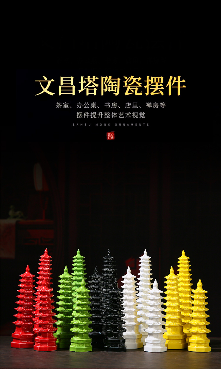 Wenchang 타워 세라믹 장식품 7 레이어 13 레이어 9 레이어 풍수 행운의 장식 책상 마이크로 풍경 타워 공예품