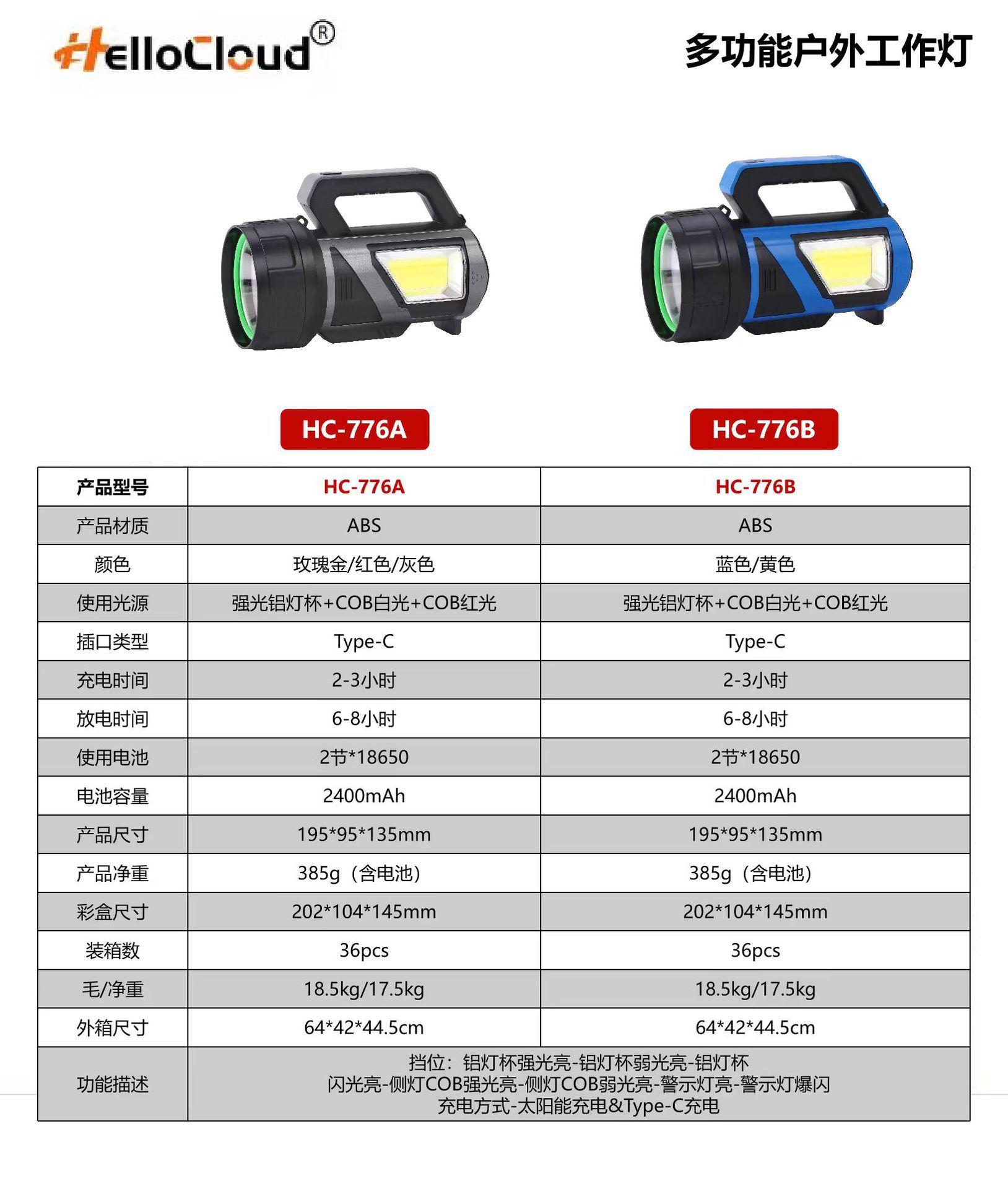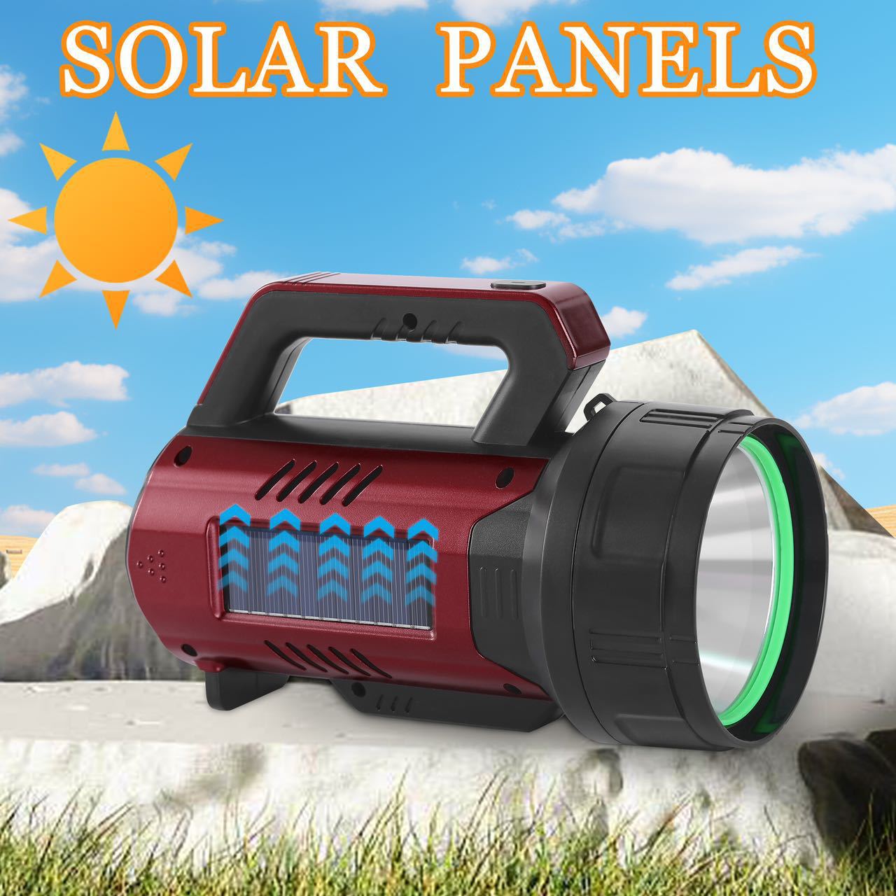 태양 손전등 강한 빛 슈퍼 밝은 충전 휴대용 긴 내구성 야외 Cob 작업 빛 다기능 서치 라이트