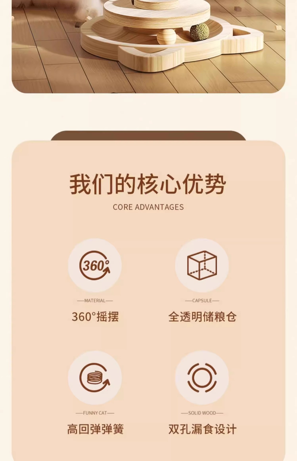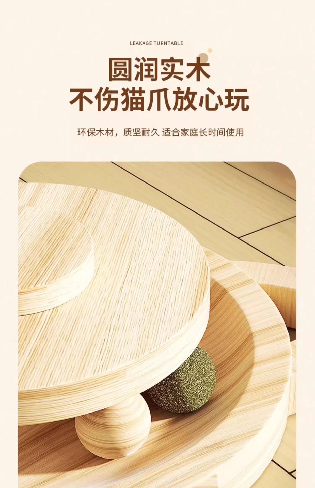 • 원목 턴테이블 고양이 사료 셰이커(중간 구멍) 조리개 12mm