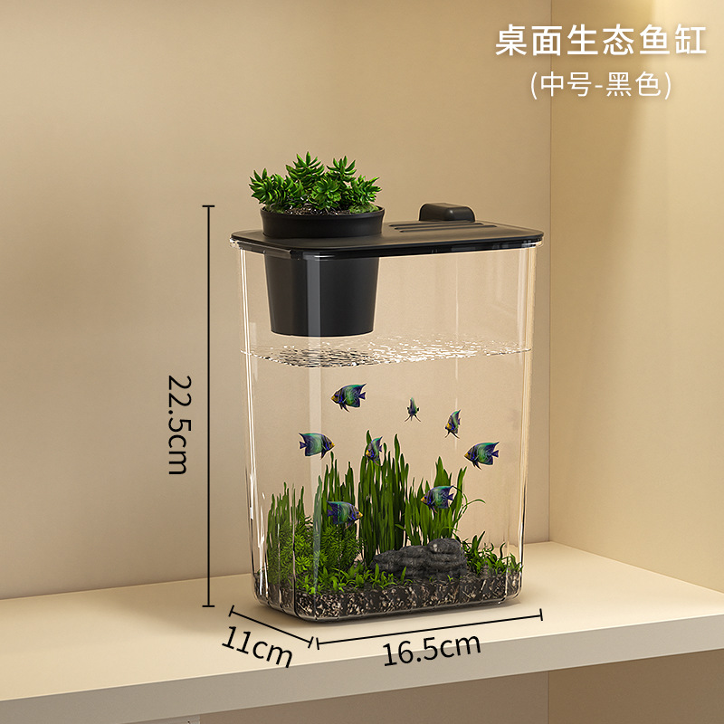 엄선된 어항, 작은 거실용, 새로운 스타일의 조경 생태 수조, 초투명, 낙하 방지, 필터링된 아크릴 탁상 거북이 수조