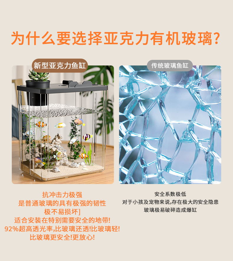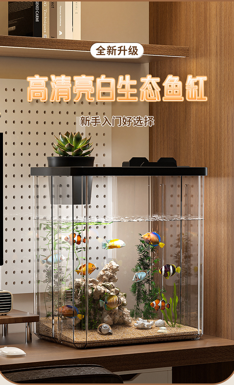 엄선된 어항, 작은 거실용, 새로운 스타일의 조경 생태 수조, 초투명, 낙하 방지, 필터링된 아크릴 탁상 거북이 수조스토어 가기