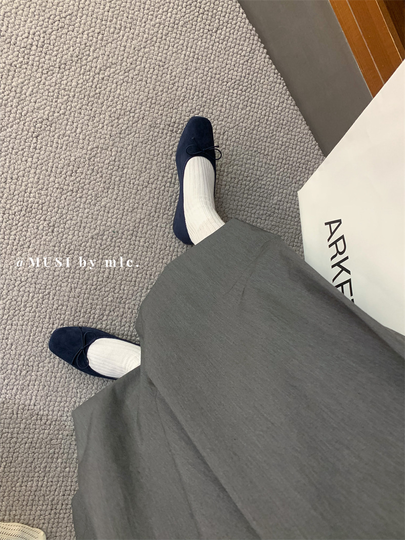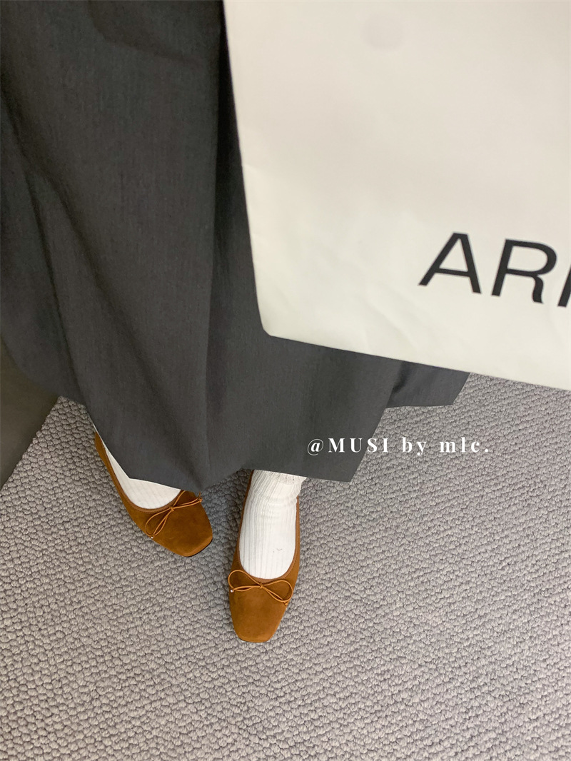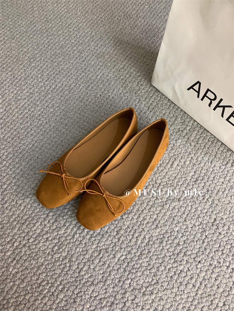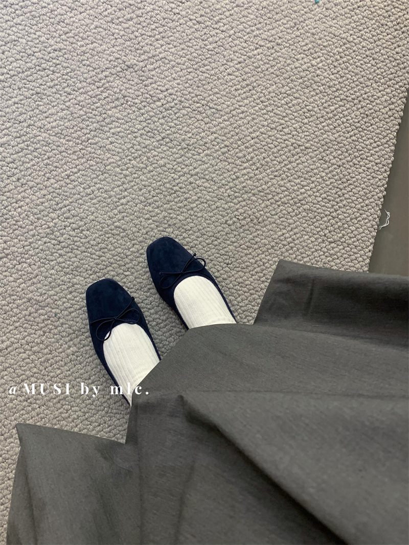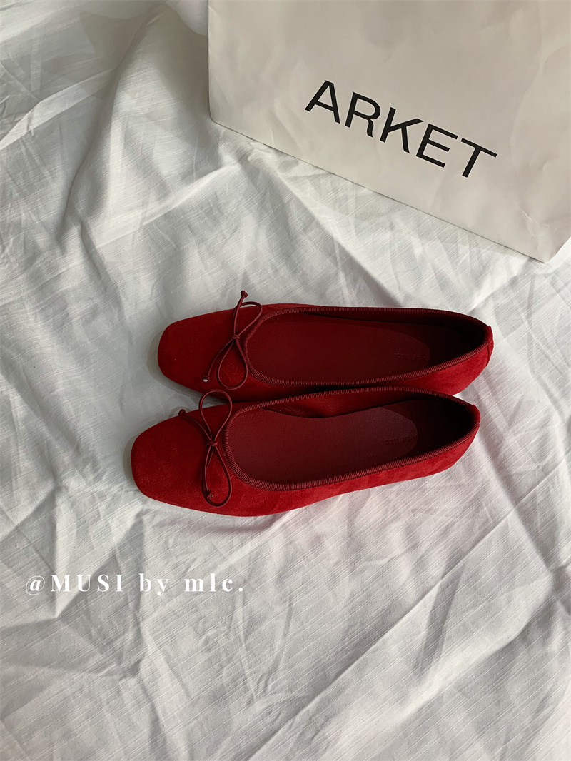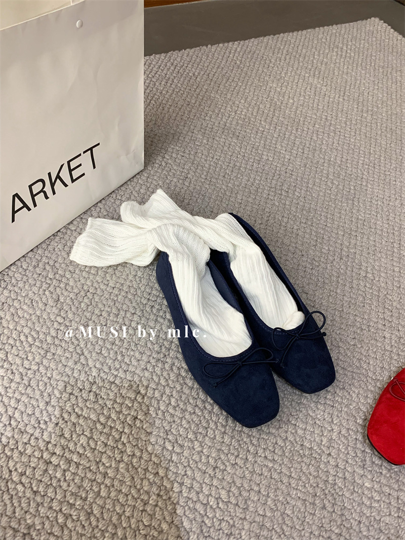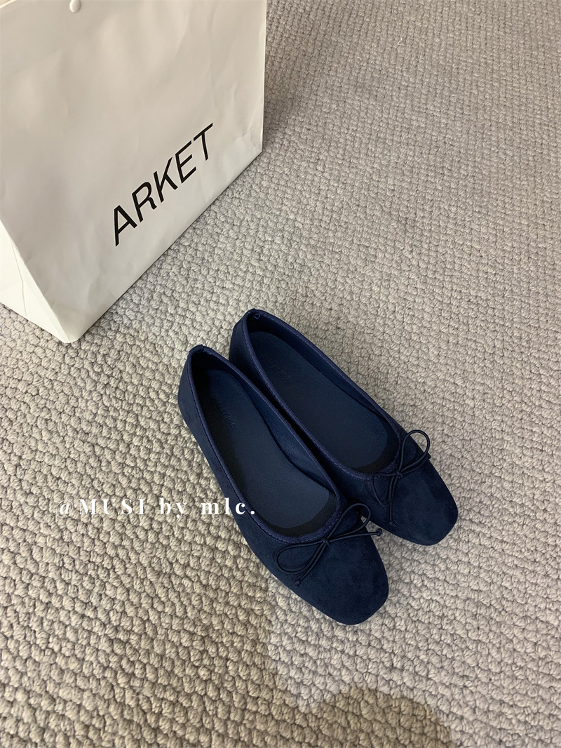 스웨이드 소재의 작은 사각 앞코 얕은 구두, 2025 가을 신상 리본 장식의 우아한 플랫 가죽 신발, 패셔너블한 스쿠프 슈즈, 부드러운 가죽스토어 가기