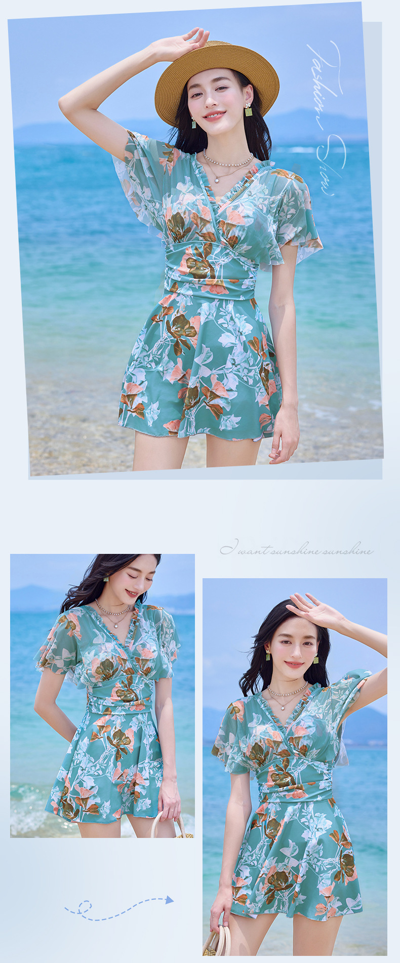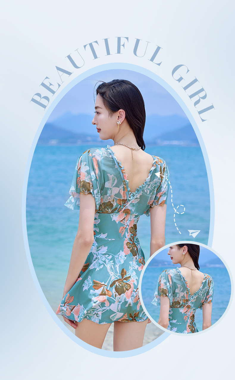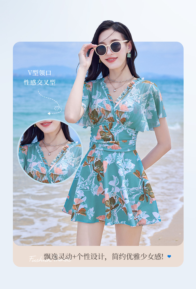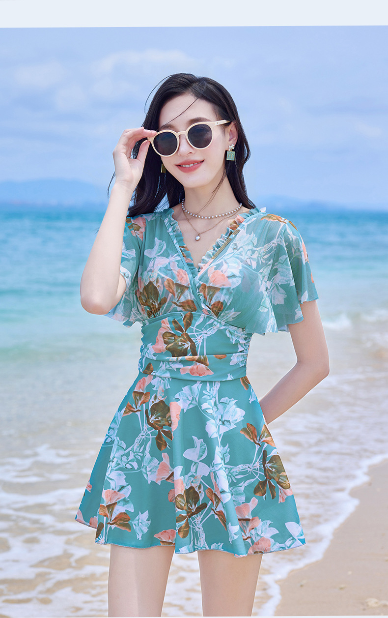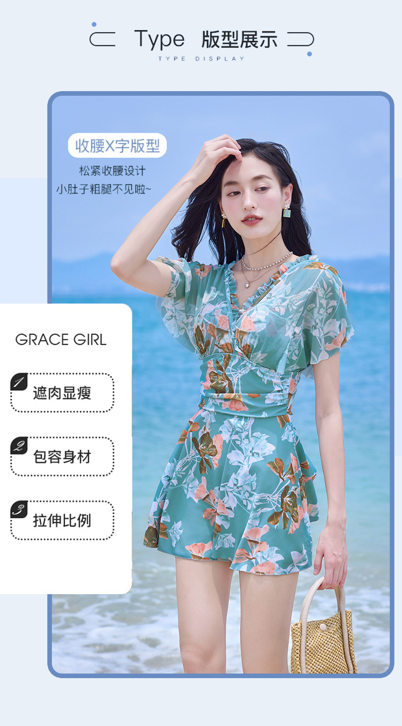 여름 새 수영복 여성 플러스 사이즈 보수적 인 원피스 플랫 앵글 대형 스커트 수영복 어깨 커버 한국 스타일 온천 휴가 수영복스토어 가기