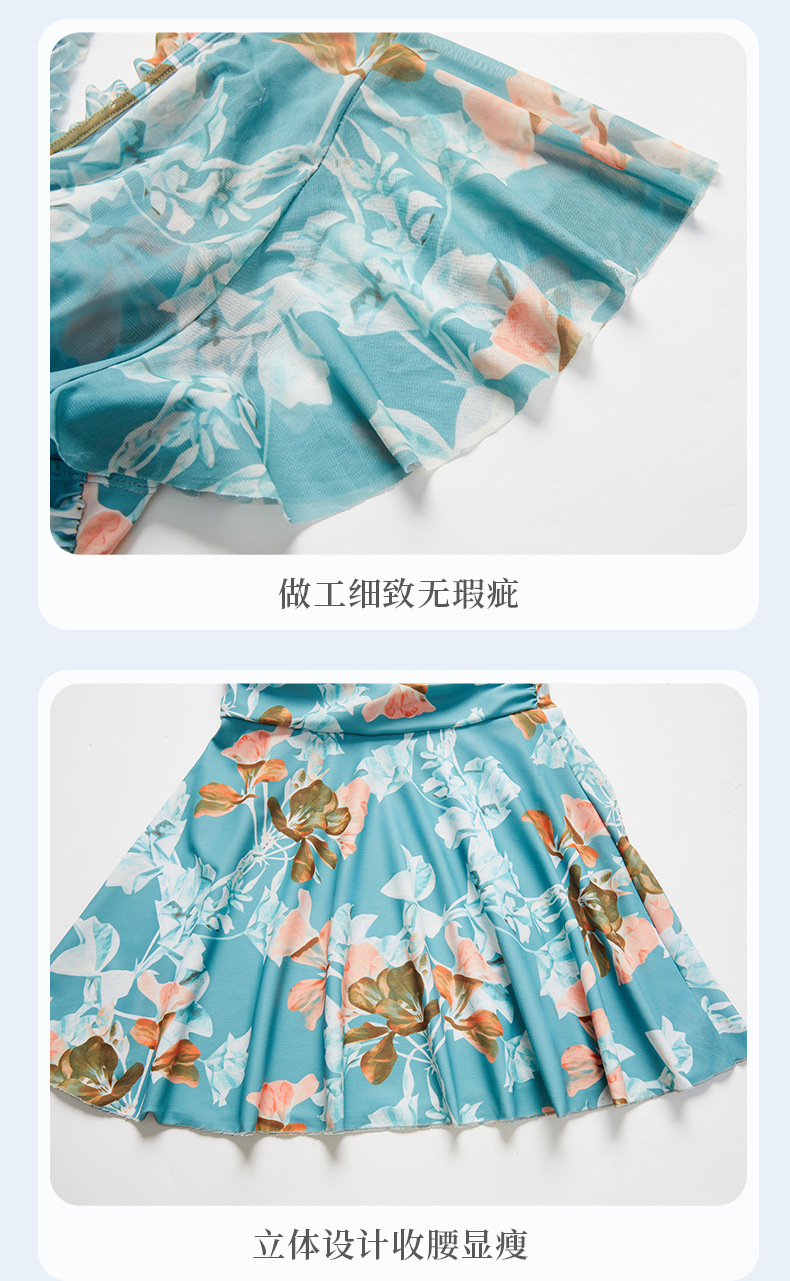 여름 새 수영복 여성 플러스 사이즈 보수적 인 원피스 플랫 앵글 대형 스커트 수영복 어깨 커버 한국 스타일 온천 휴가 수영복