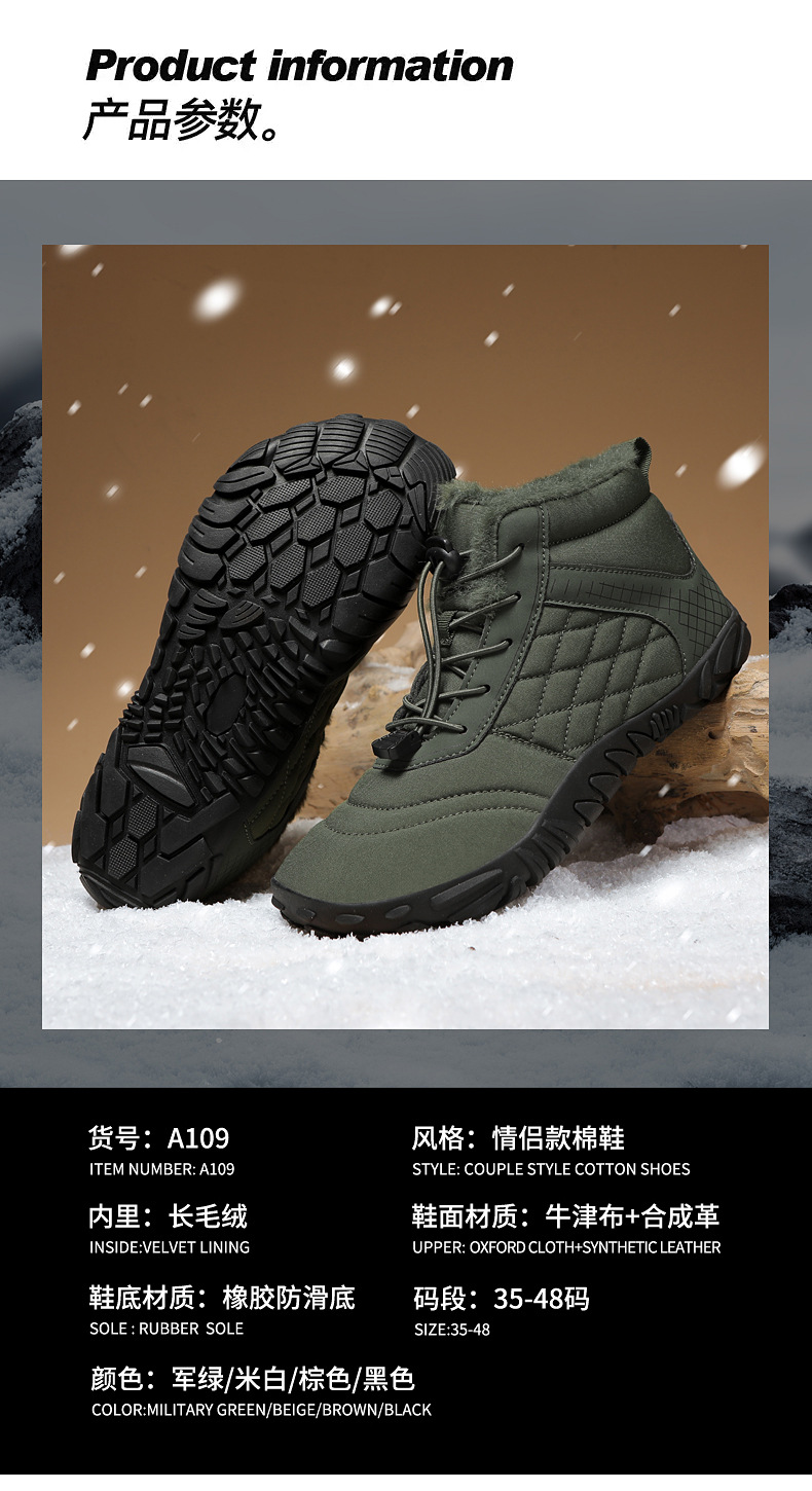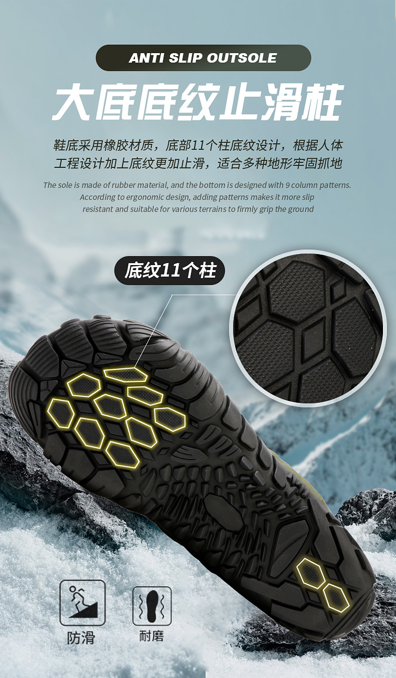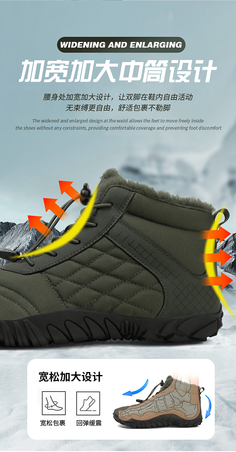 야외 하이킹 신발 기모 새로운 남성과 여성의 하이킹 암벽 등반 스노우 슈즈 미끄럼 방지 따뜻한 5 손가락 코튼 슈즈스토어 가기