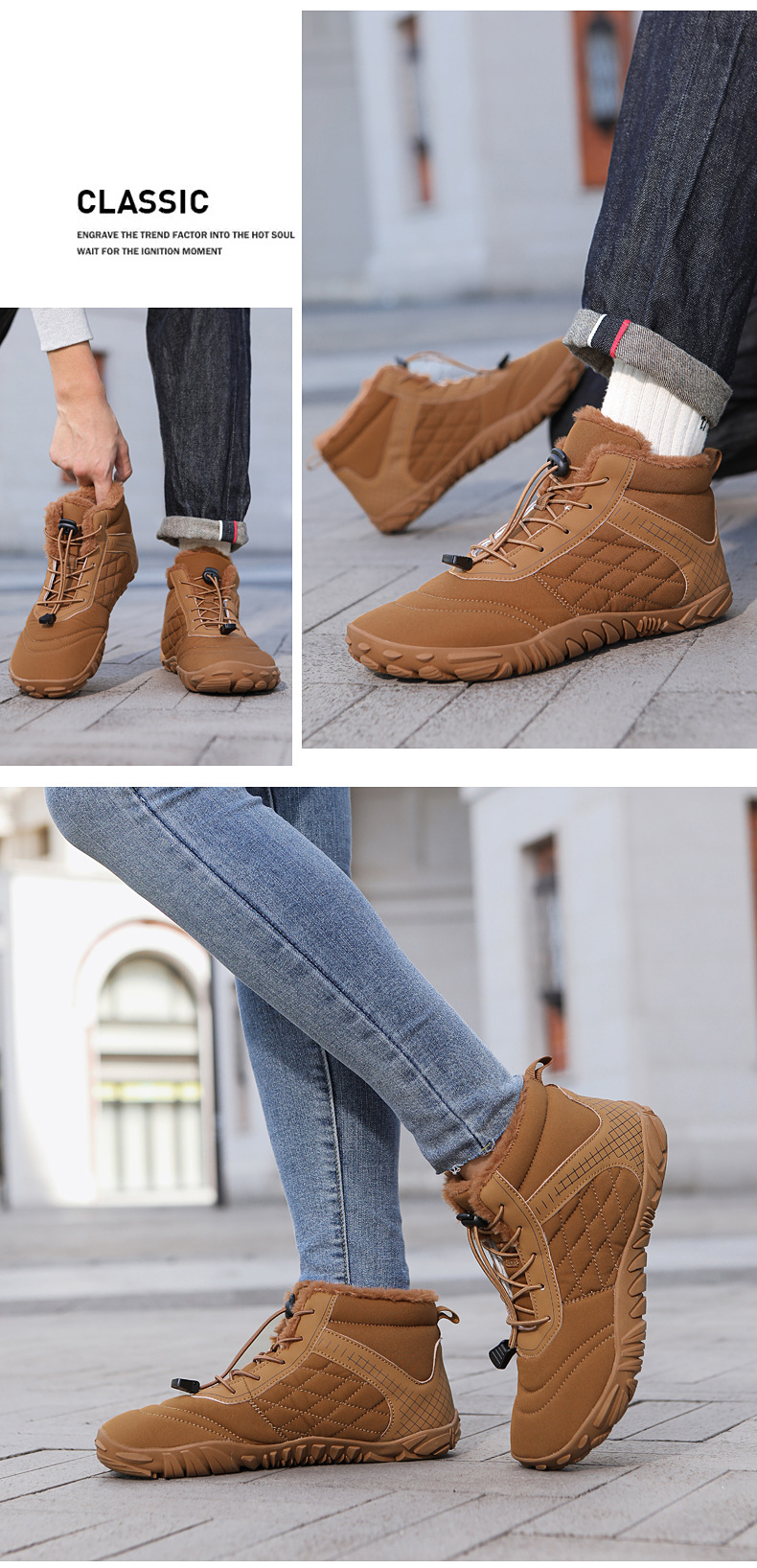 야외 하이킹 신발 기모 새로운 남성과 여성의 하이킹 암벽 등반 스노우 슈즈 미끄럼 방지 따뜻한 5 손가락 코튼 슈즈