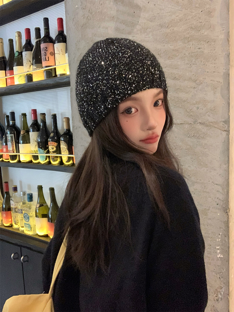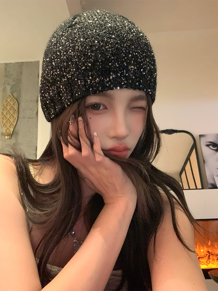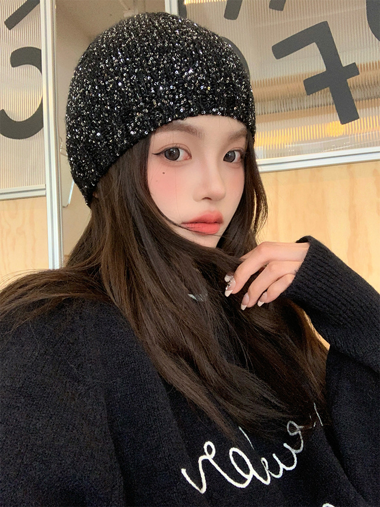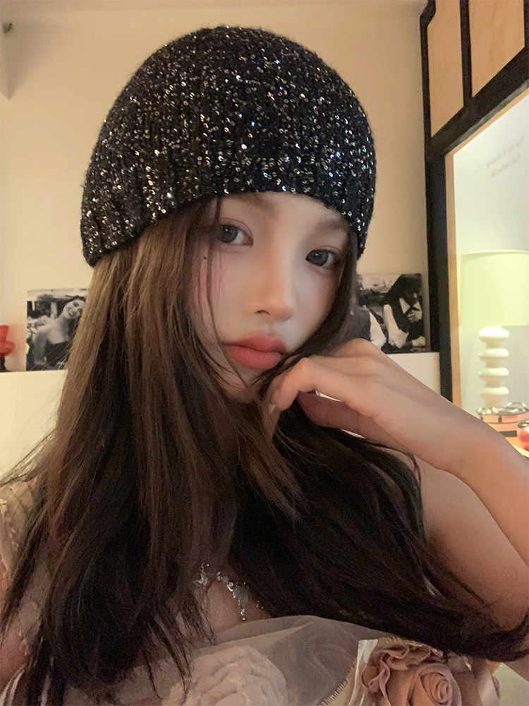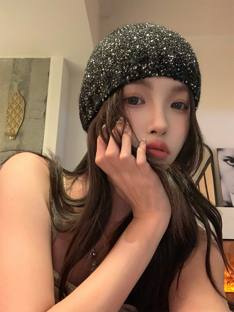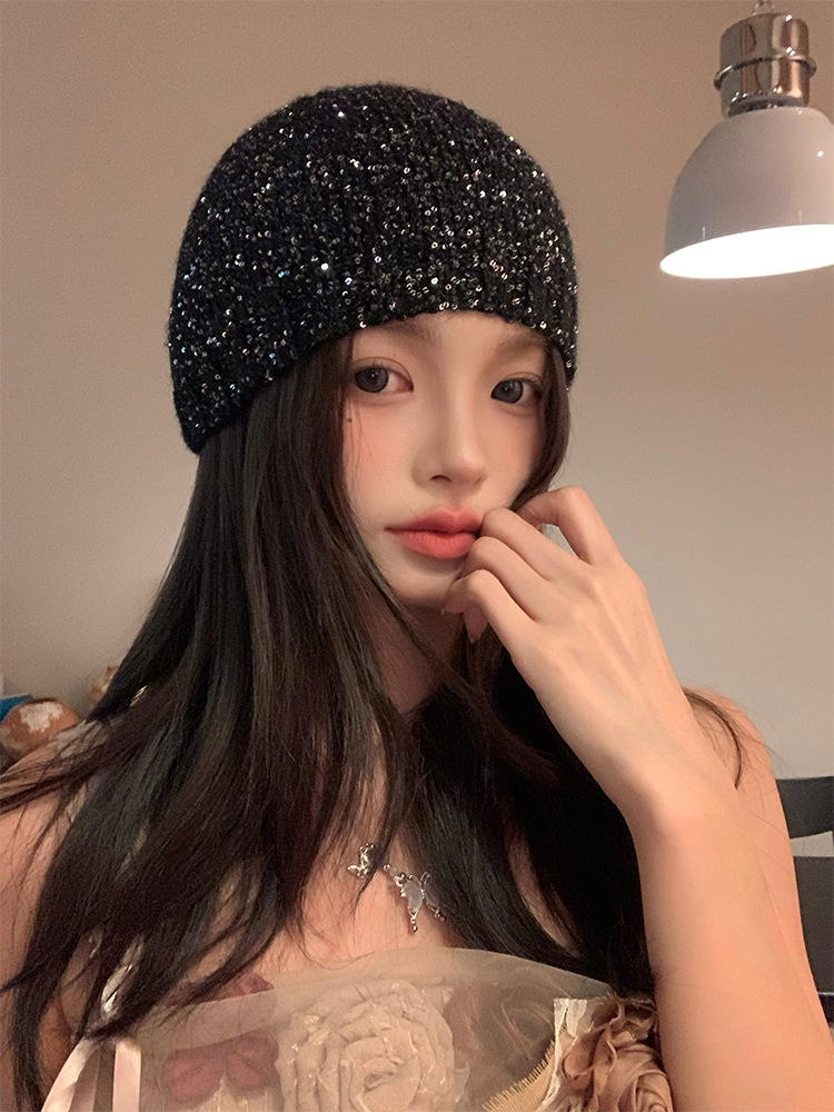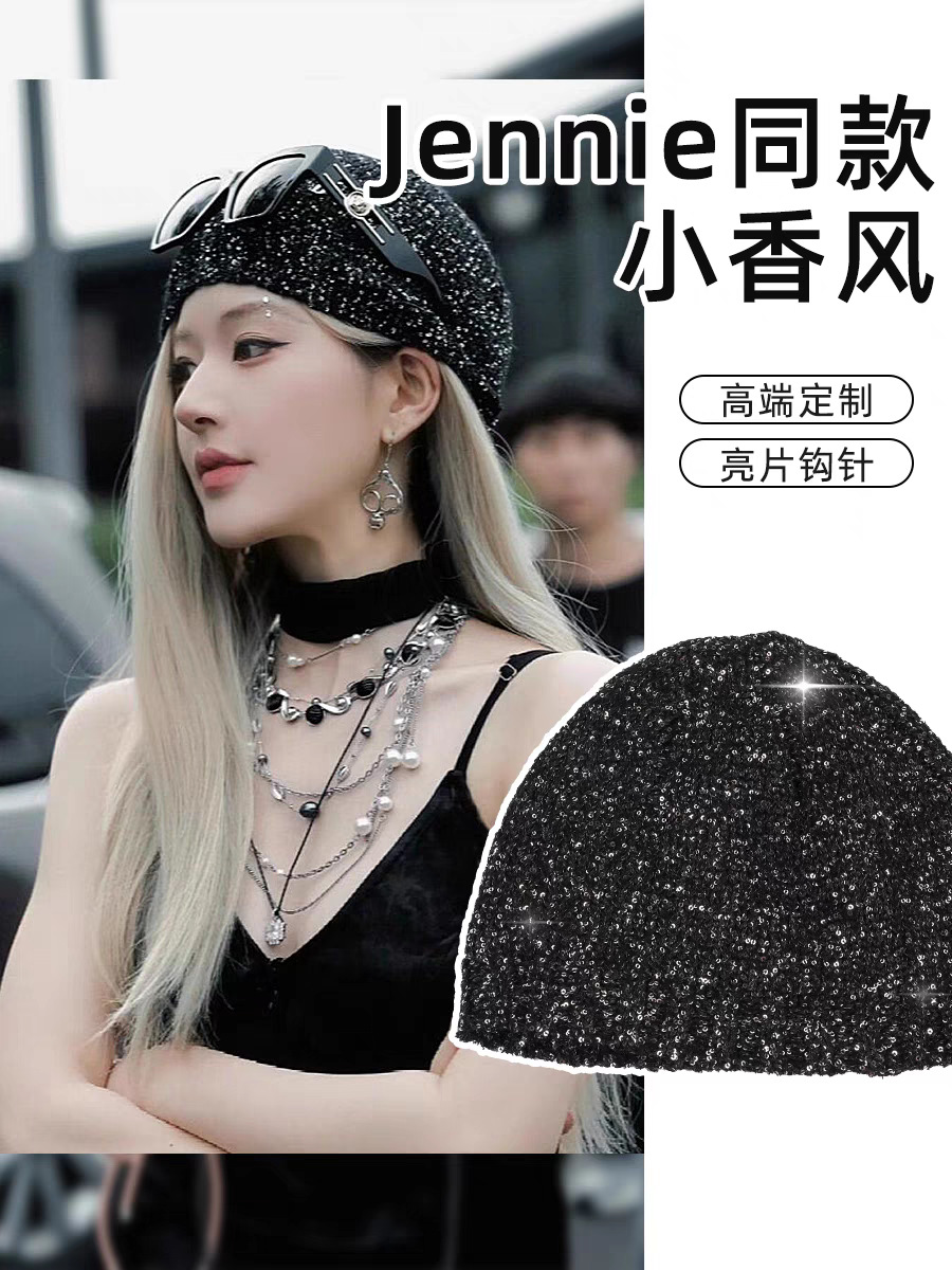 고급 복고풍 Jennie Zhao Ruth, 스팽글 니트 모자 차가운 모자 봄과 여름 2024 새로운 바오 터우 모자스토어 가기