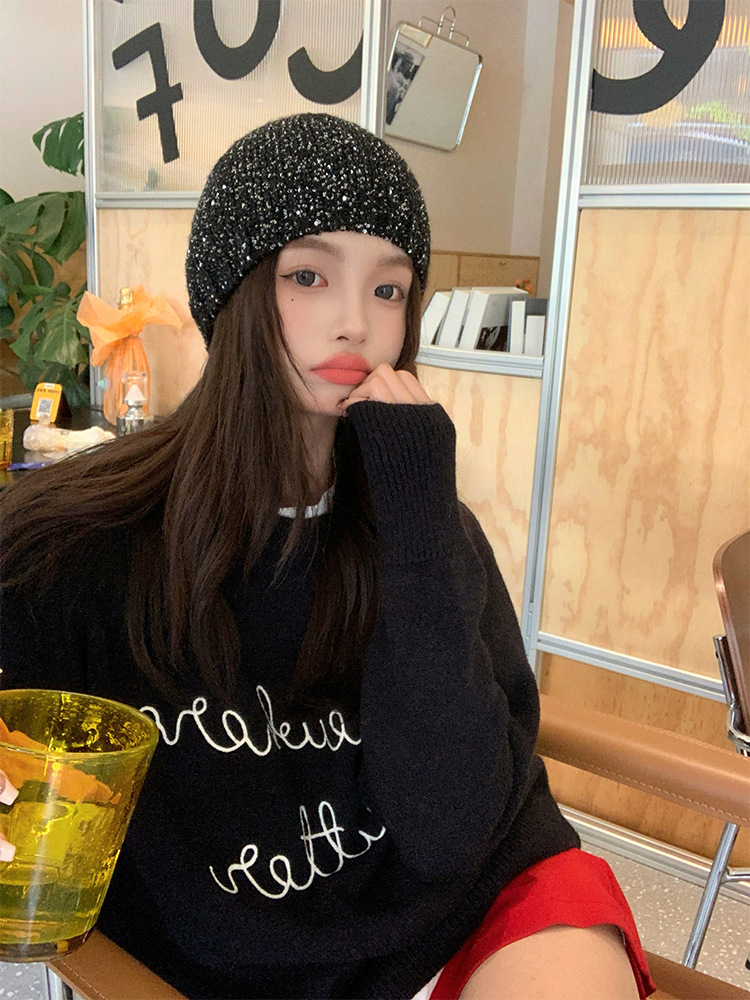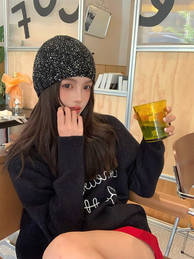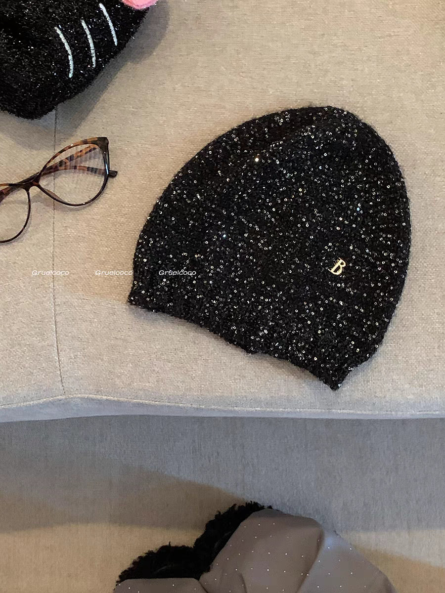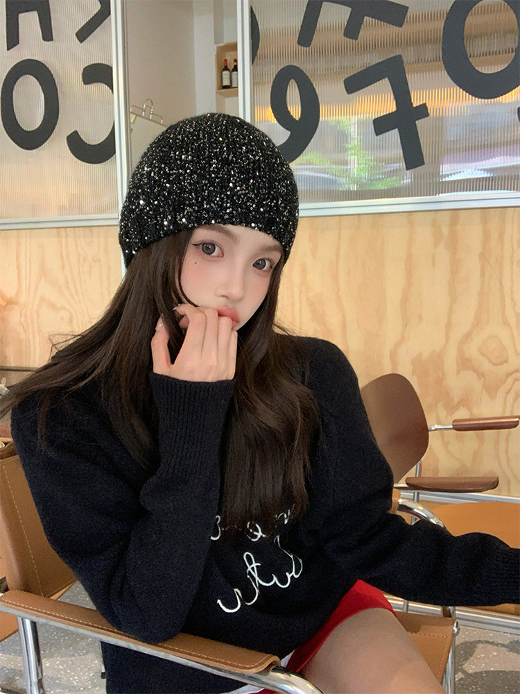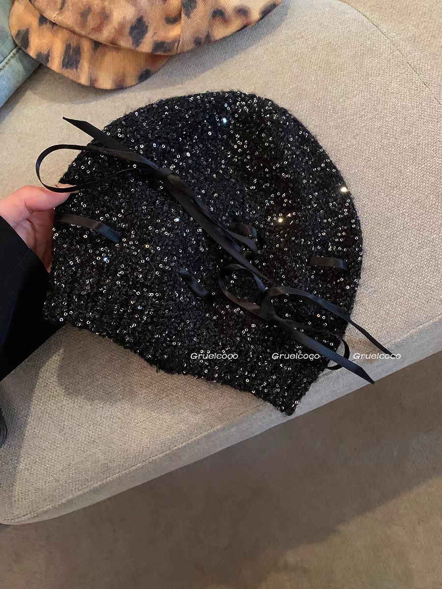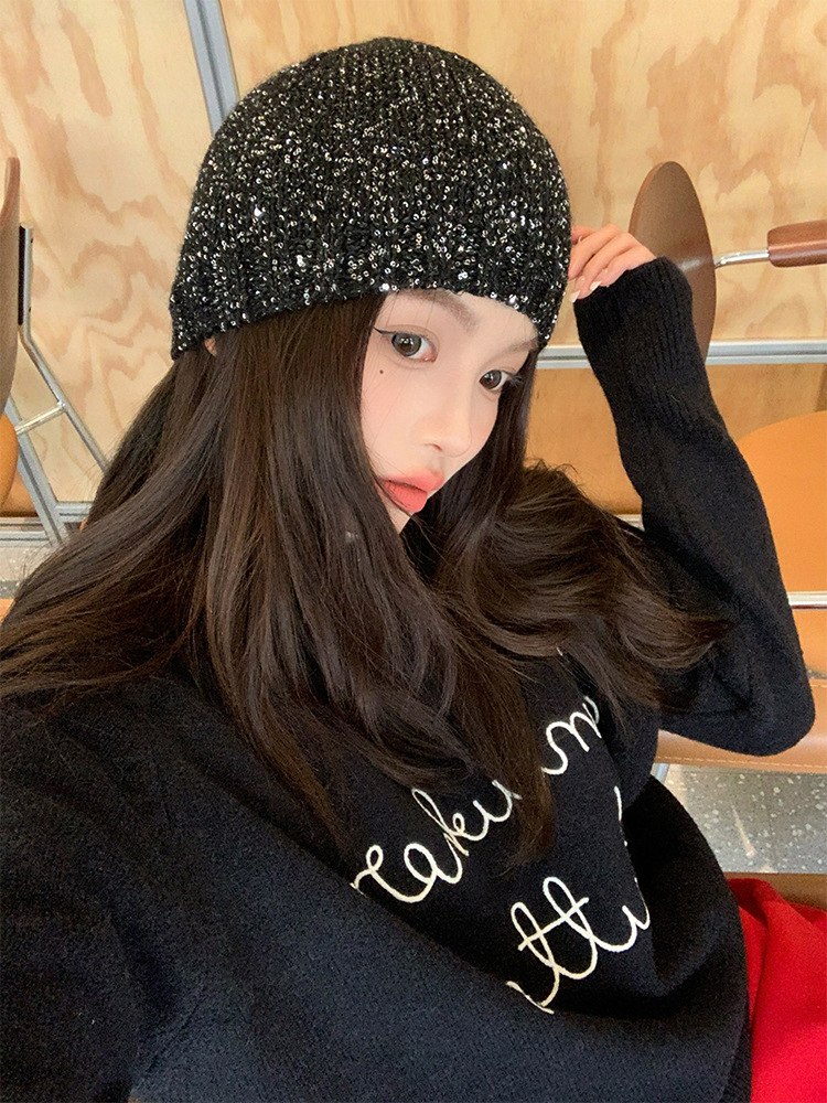 고급 복고풍 Jennie Zhao Ruth, 스팽글 니트 모자 차가운 모자 봄과 여름 2024 새로운 바오 터우 모자스토어 가기