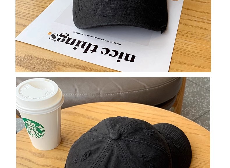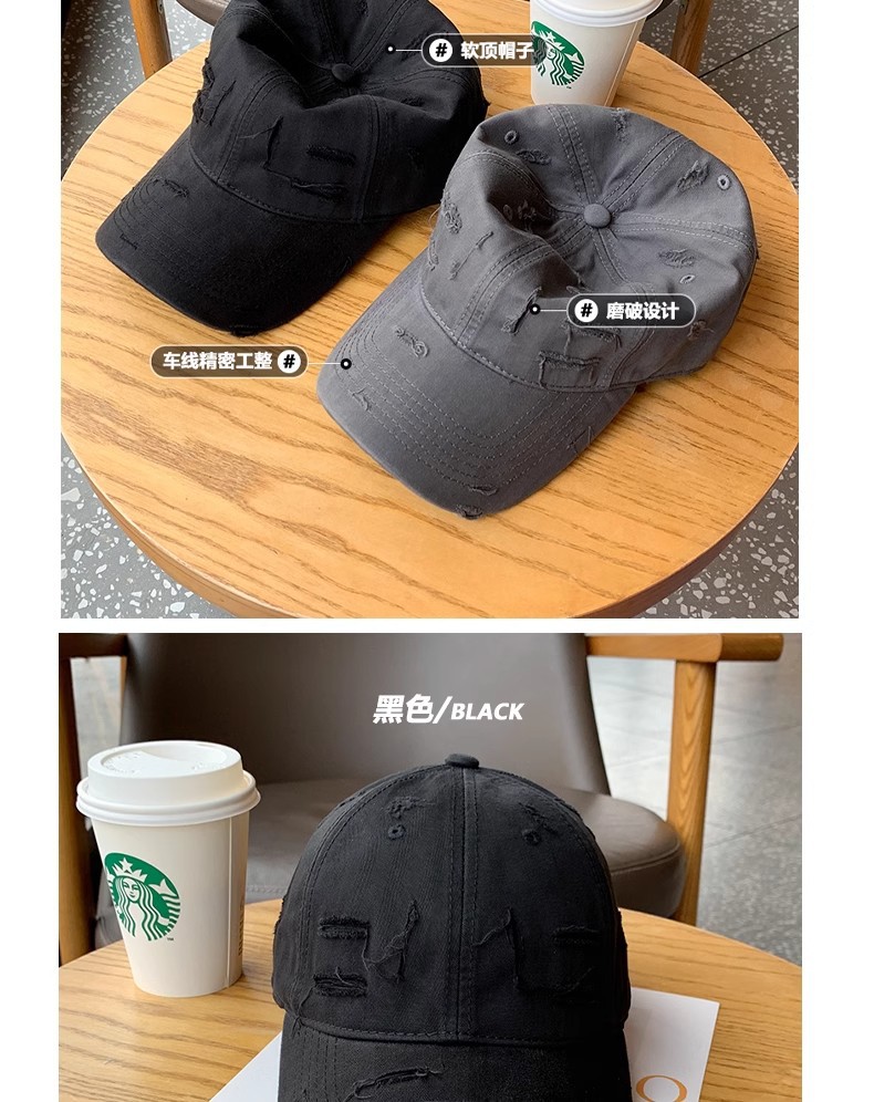 • 검은색 찢어진 야구 모자