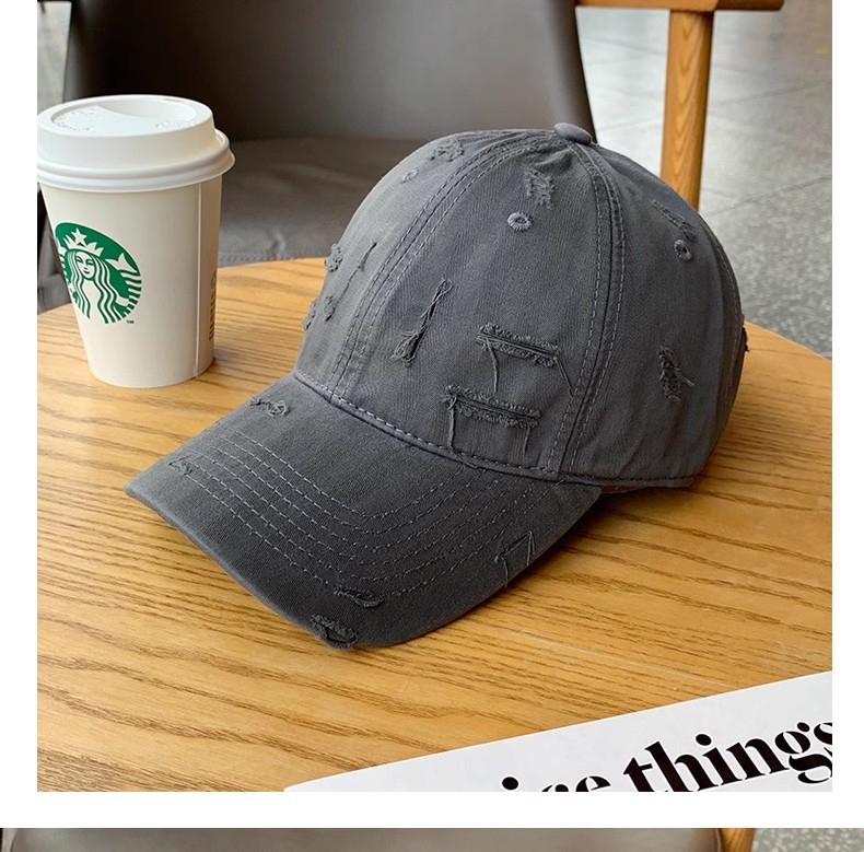 • 다크 그레이 찢어진 야구 모자
