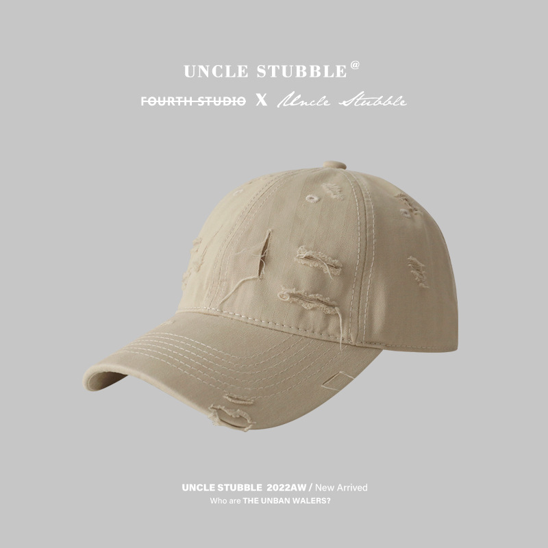 • 베이지색 찢어진 야구 모자