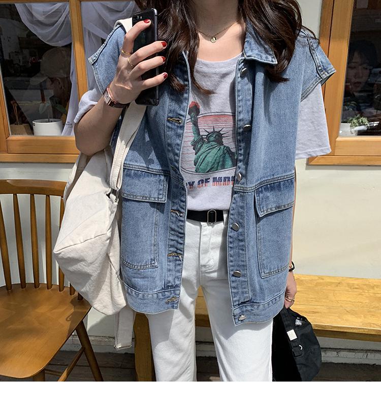 여성용 데님 조끼 2025 가을, 겨울 루즈한 여름 얇은 아우터 조끼 조끼 재킷 트렌디스토어 가기