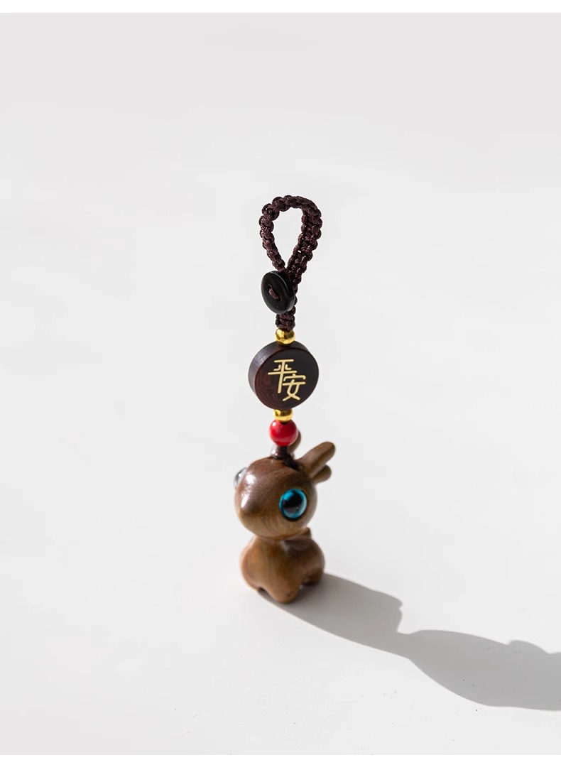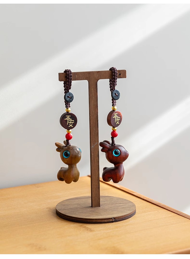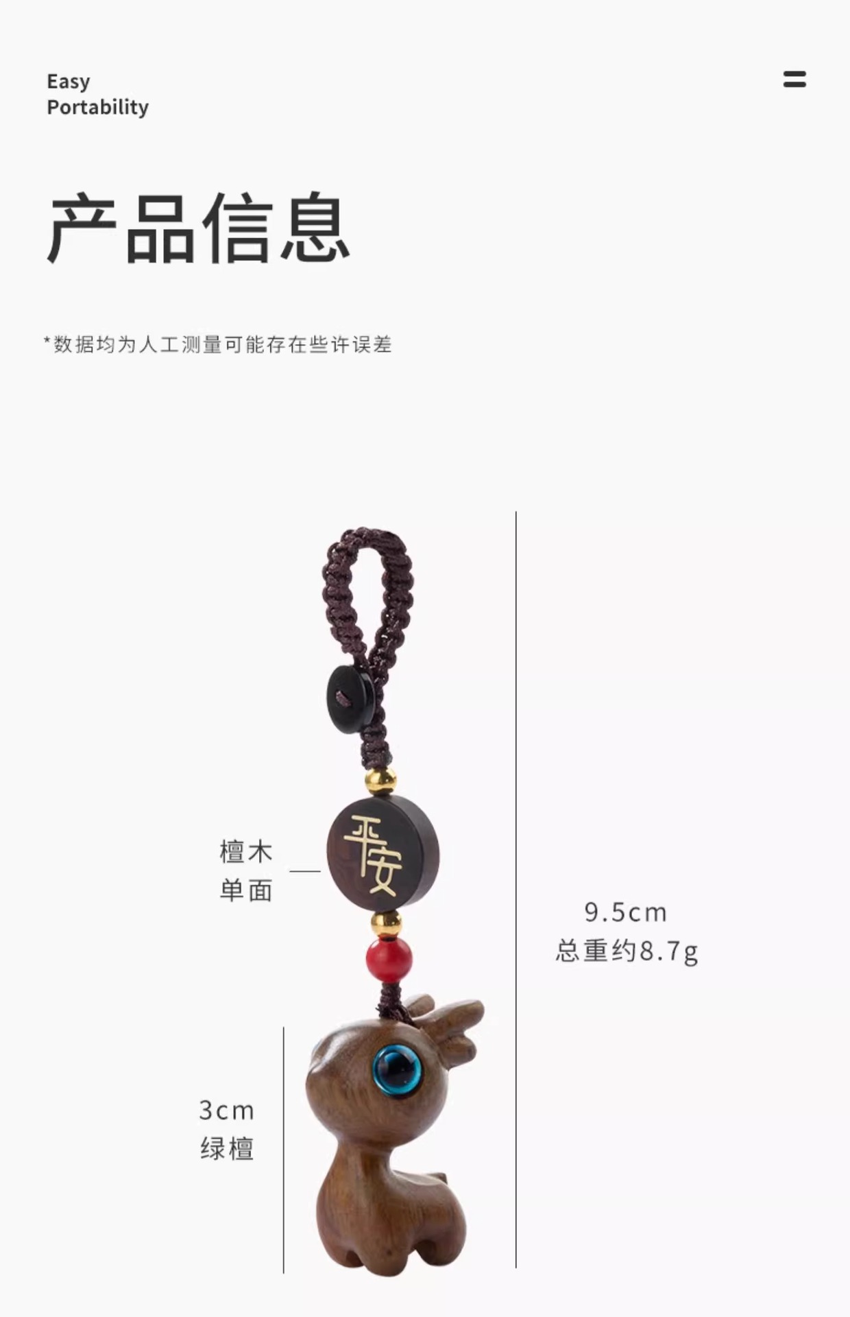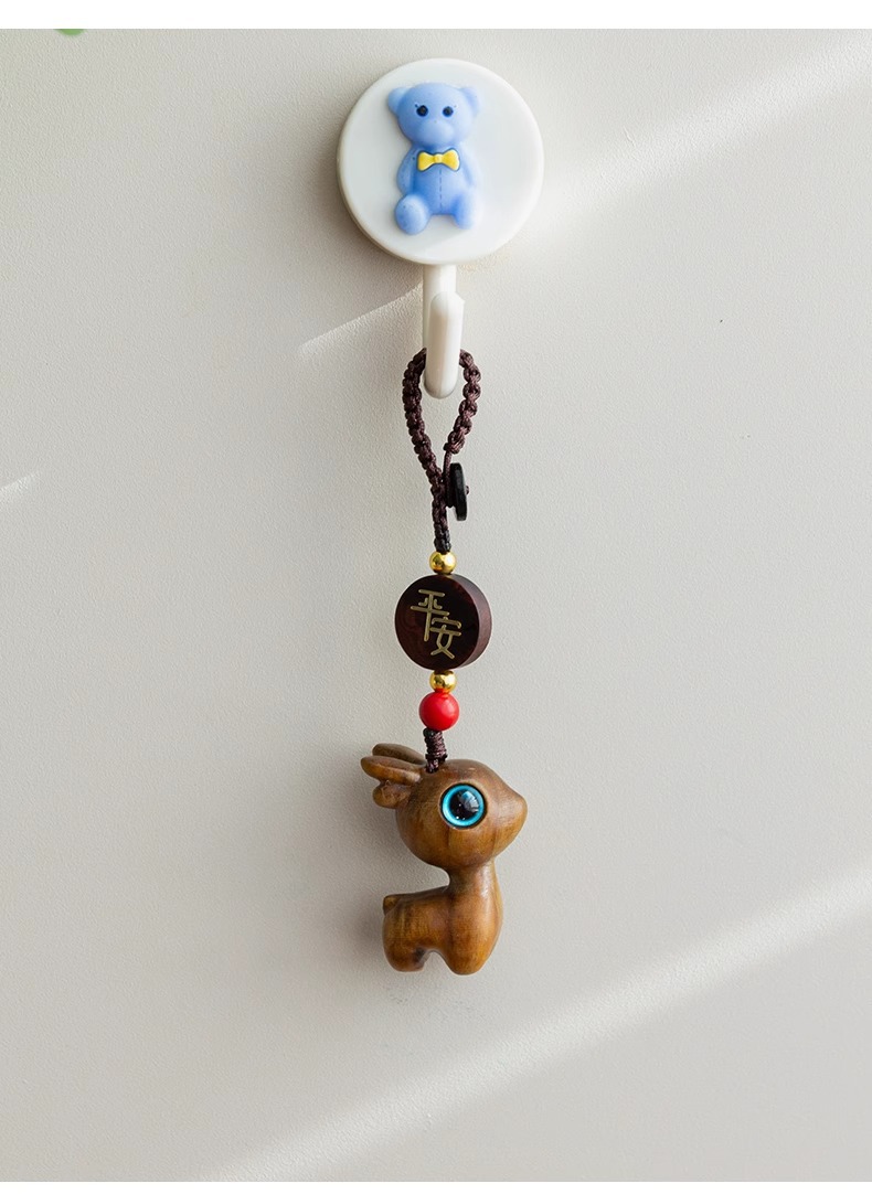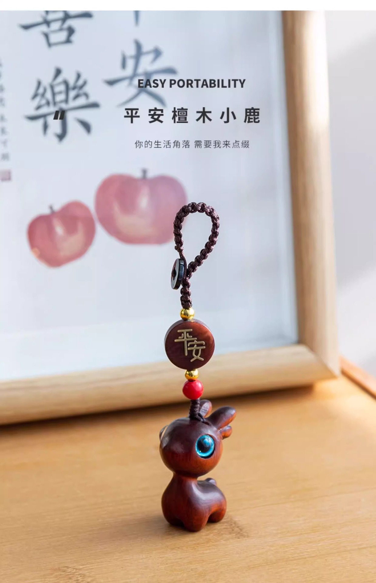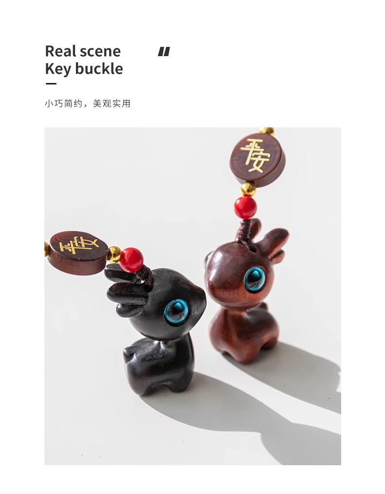 안전한 여행 샌달 우드 사슴 키 체인 자동차 펜던트 절묘한 귀여운 남성과 여성 커플 휴대 전화 체인 펜던트스토어 가기