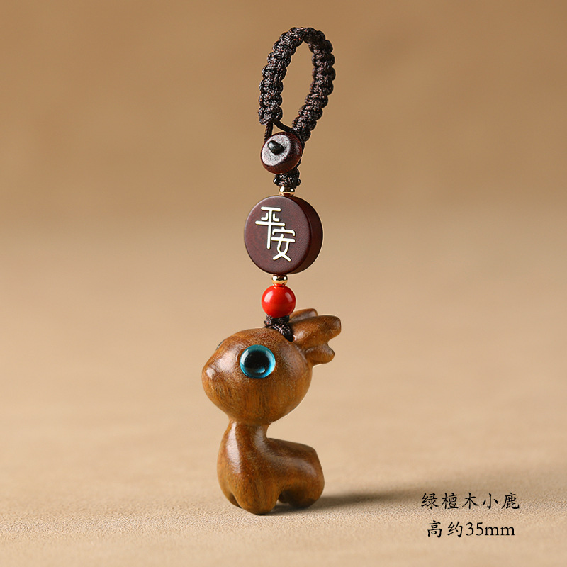 • 평화로운 사슴 열쇠고리-녹색 백단