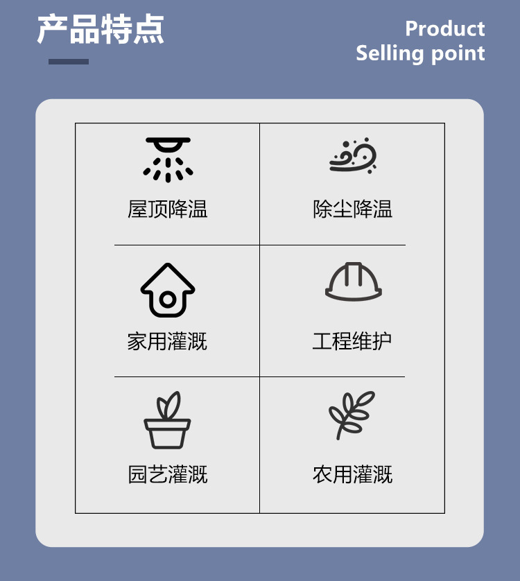 • * 1inch 플라스틱4 스프레이 헤드 + 1.2m 브래킷 + 3방향 연결 2.5inch 워터 벨트