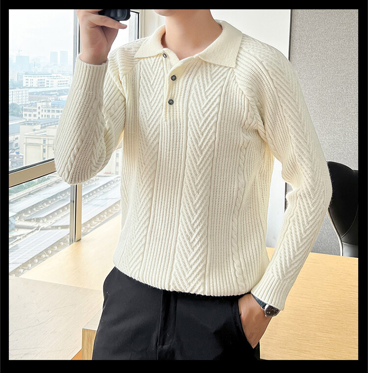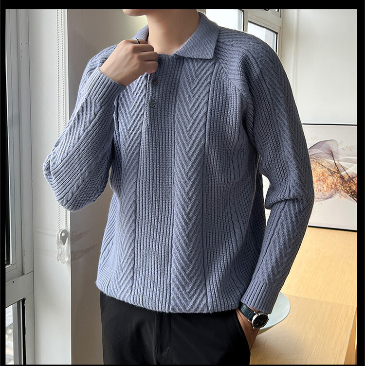 패션 기질 남자의 가을과 겨울 새로운 니트웨어 남자의 복고풍 옷깃 줄무늬 POLO 셔츠 칼라 풀오버 스웨터 트렌드스토어 가기