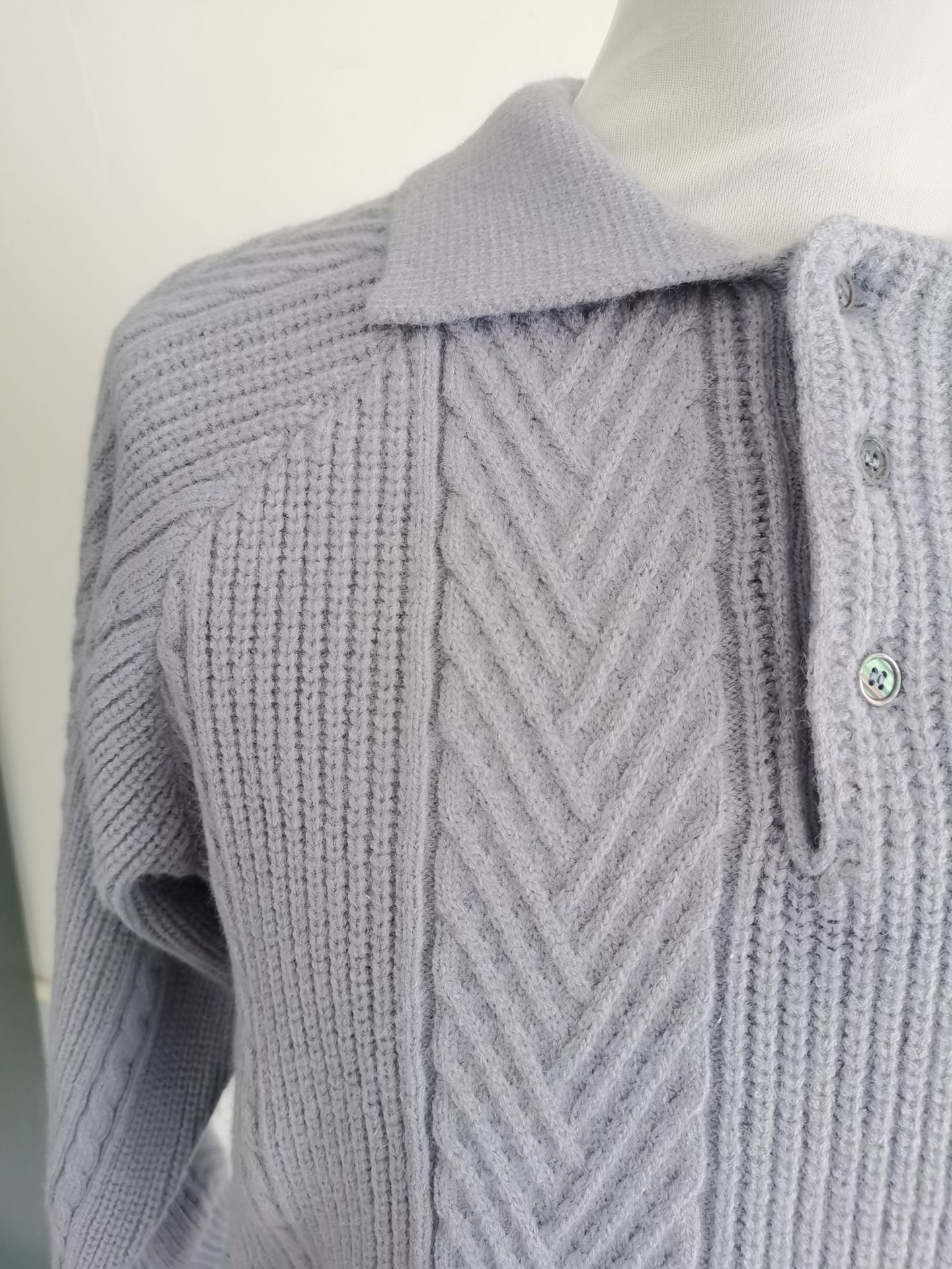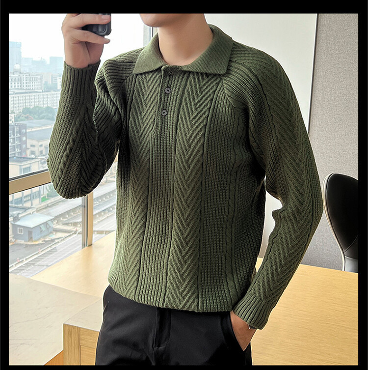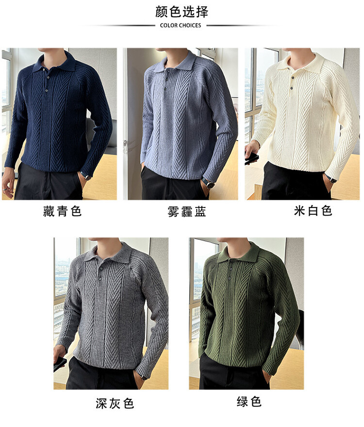 패션 기질 남자의 가을과 겨울 새로운 니트웨어 남자의 복고풍 옷깃 줄무늬 POLO 셔츠 칼라 풀오버 스웨터 트렌드