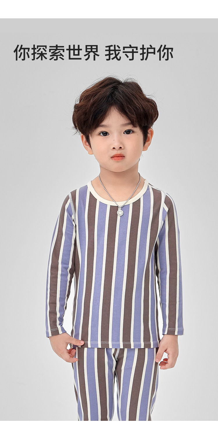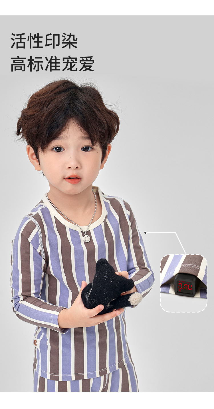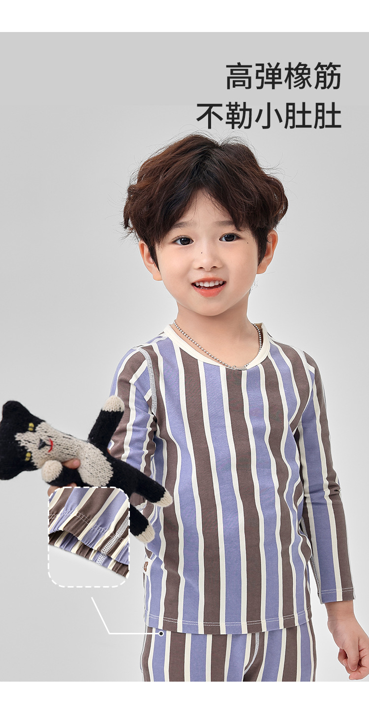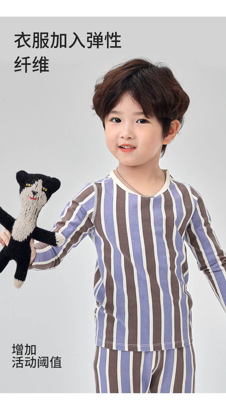 라이크라 어린이 가을 옷과 바지 ZYZ 가을과 겨울 색상 일치하는 줄무늬 아기 잠옷 둥근 목 어린이 열 속옷 세트