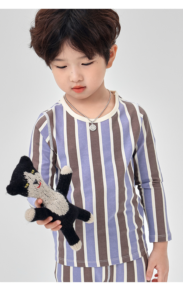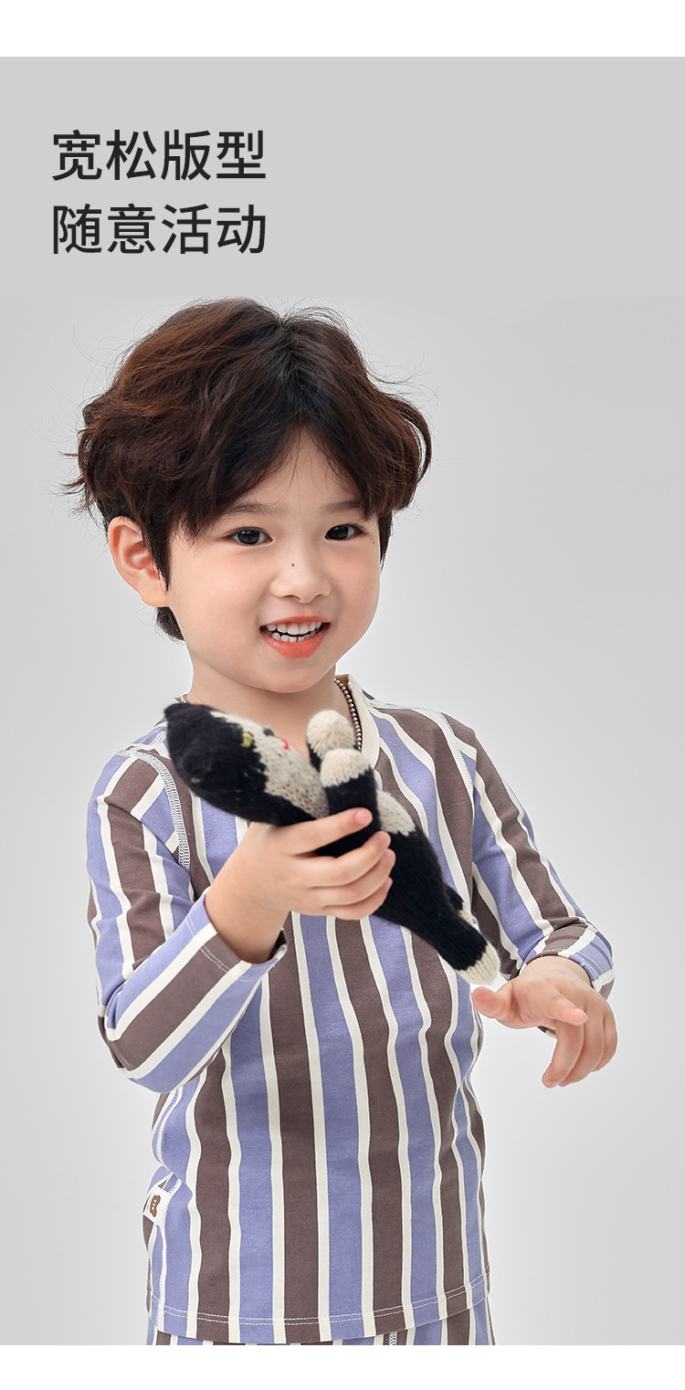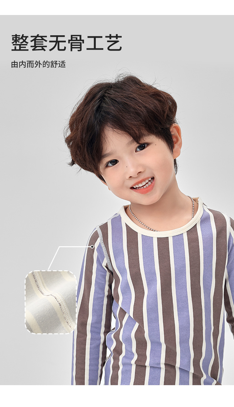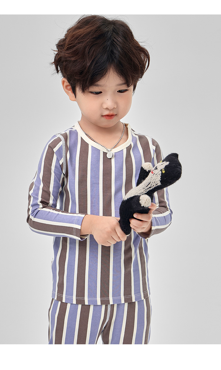 라이크라 어린이 가을 옷과 바지 ZYZ 가을과 겨울 색상 일치하는 줄무늬 아기 잠옷 둥근 목 어린이 열 속옷 세트