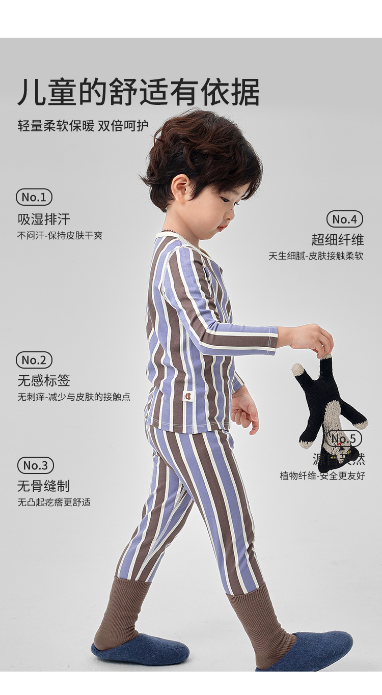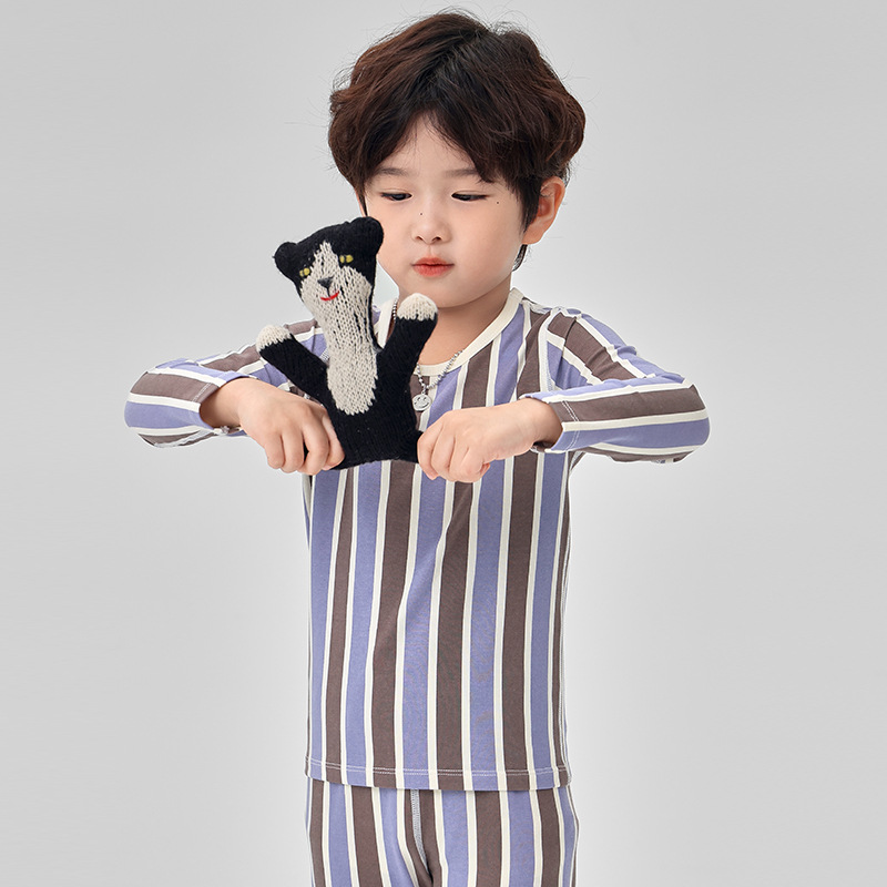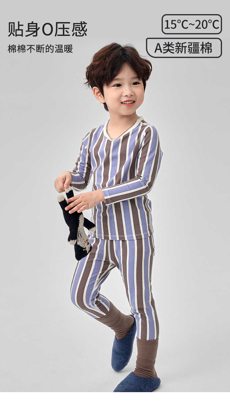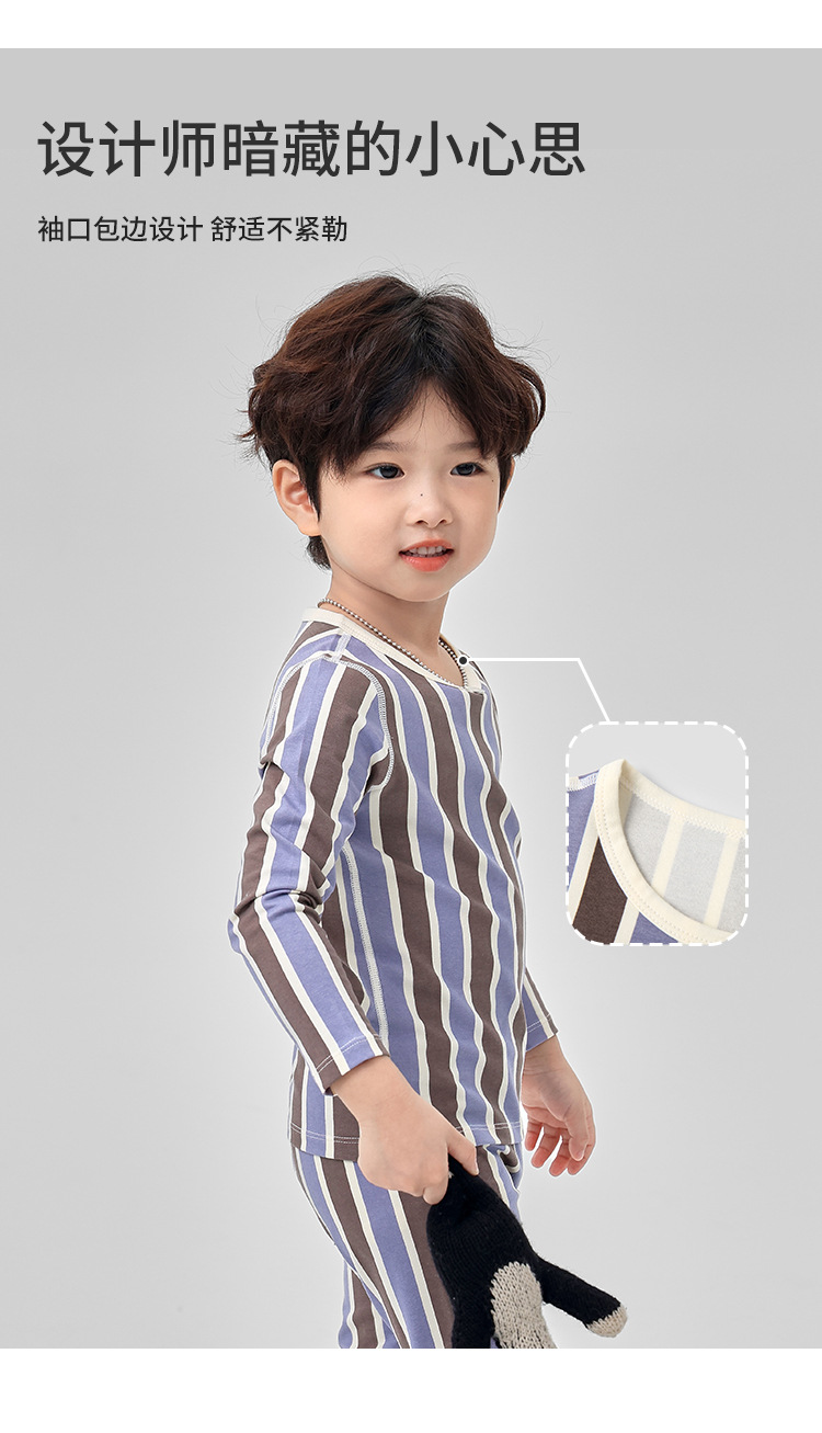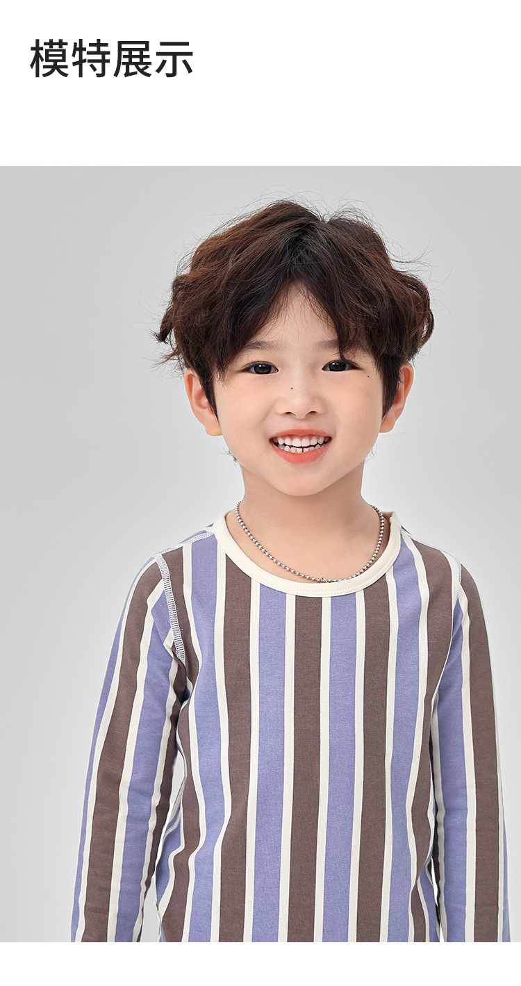 라이크라 어린이 가을 옷과 바지 ZYZ 가을과 겨울 색상 일치하는 줄무늬 아기 잠옷 둥근 목 어린이 열 속옷 세트