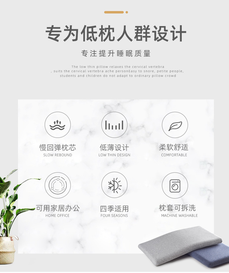슈퍼 짧은 낮은 베개 부드러운 베개 남성과 여성의 얇은 베개 목 베개 성인 단일 수면 보조 홈 어린이 메모리 폼 신제품스토어 가기
