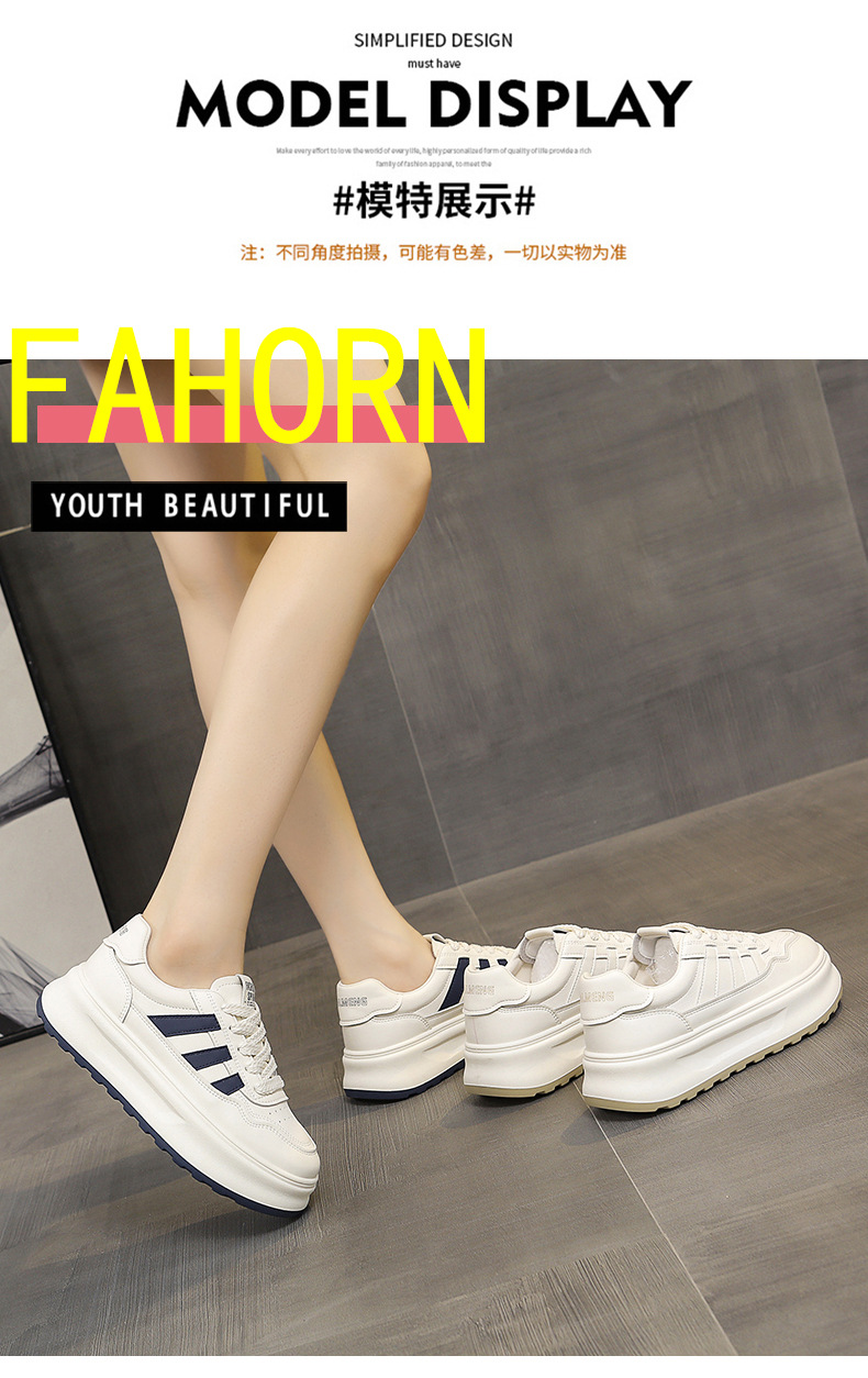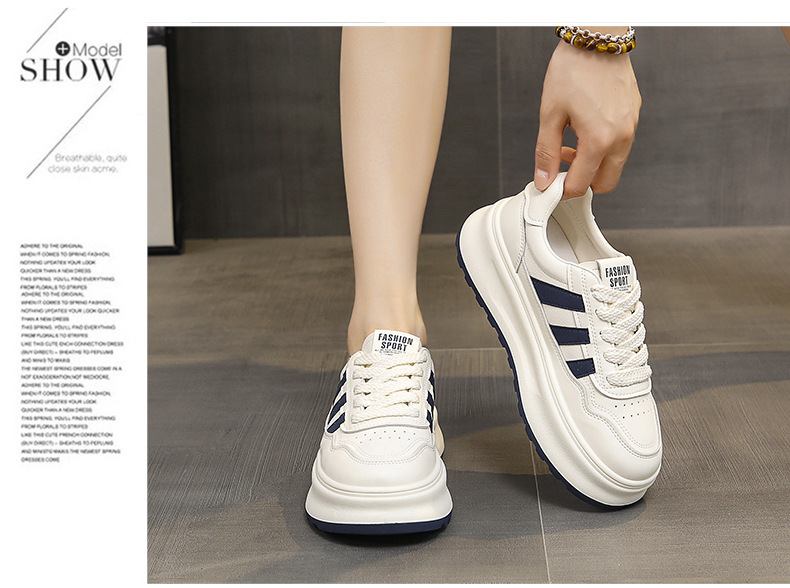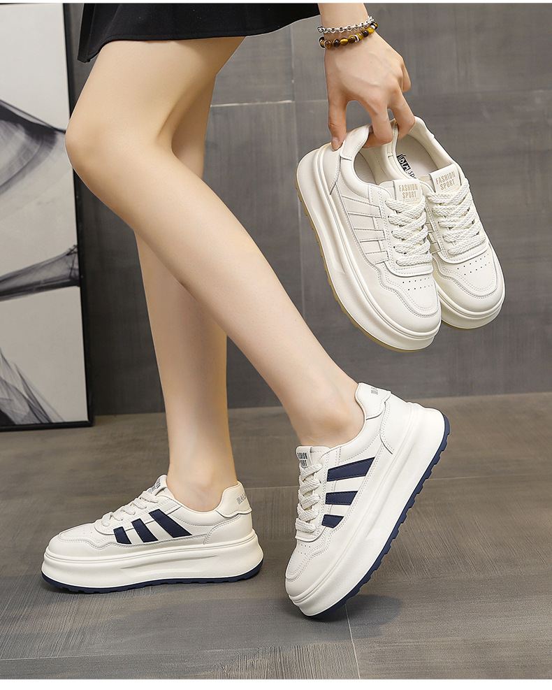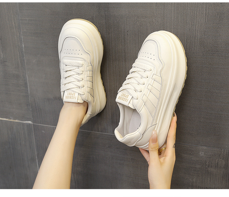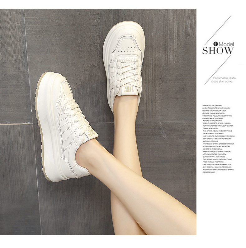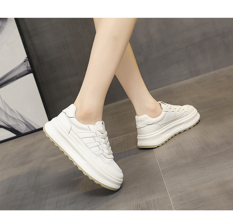 정품 가죽 두꺼운 단독 증가 흰색 신발 봄과 가을 새로운 통기성 여성 신발 2024 패션 캐주얼 스포츠 보드 신발스토어 가기