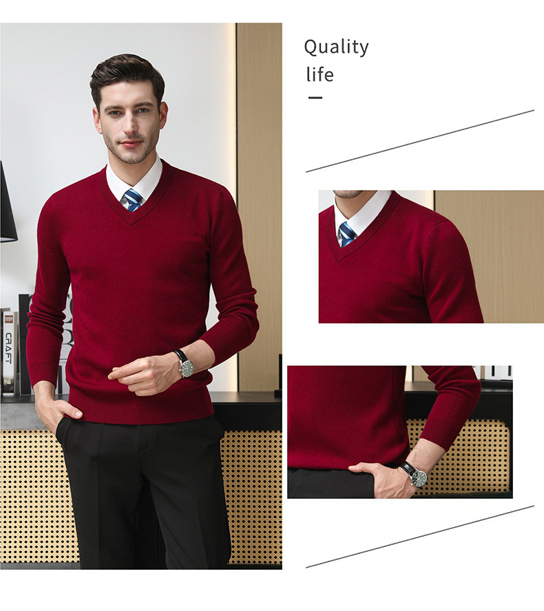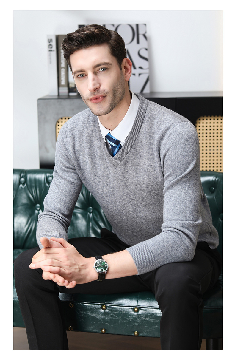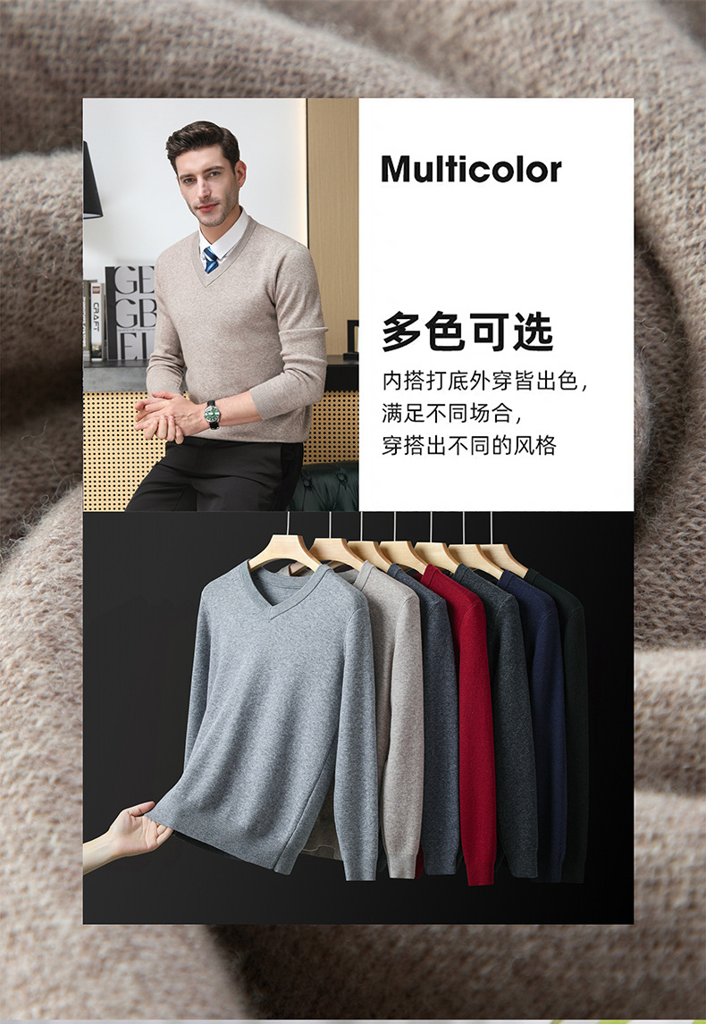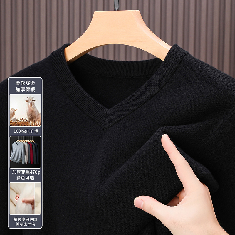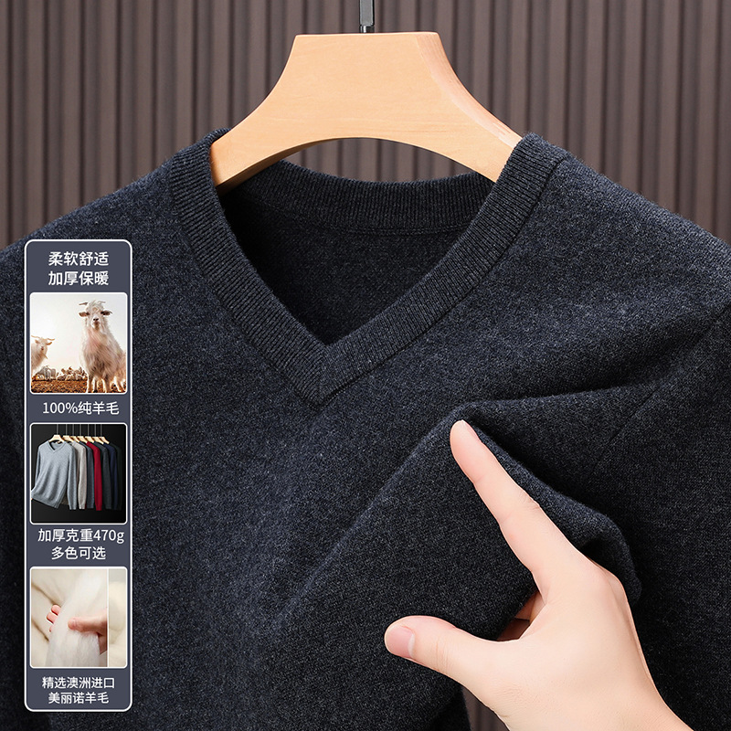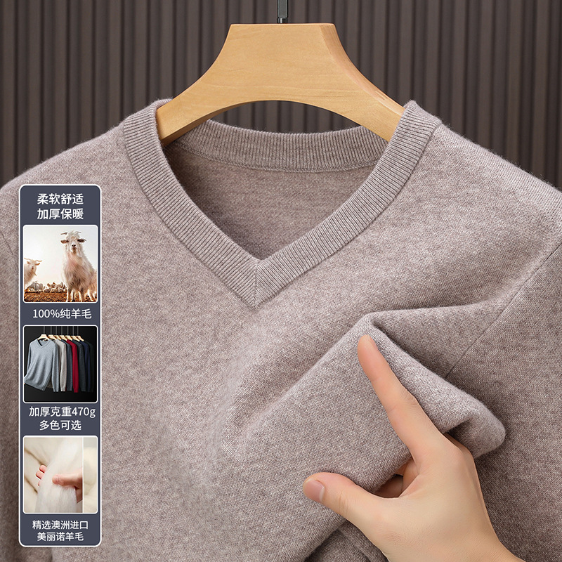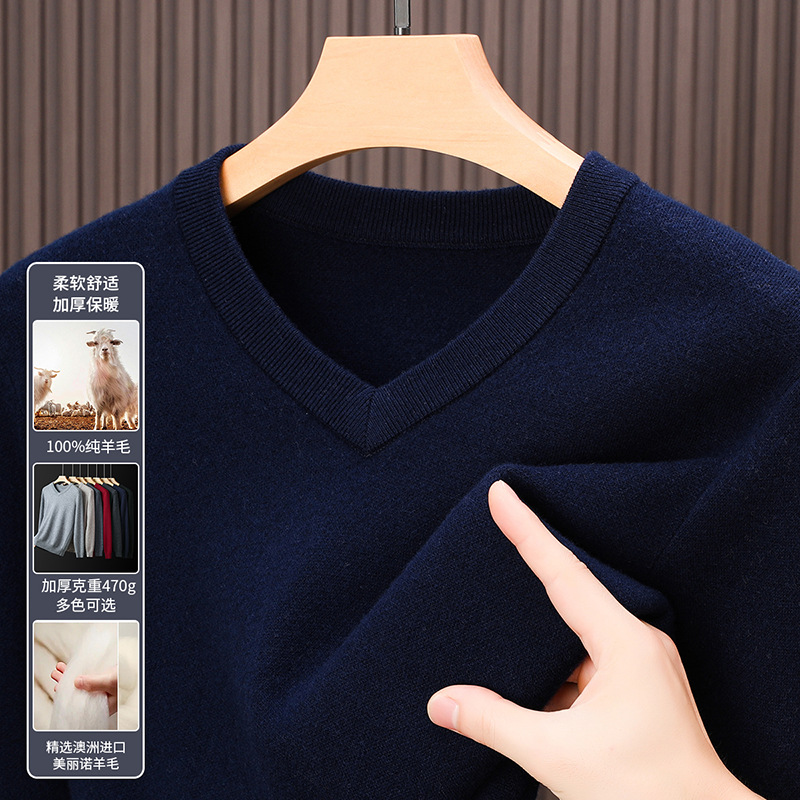 가을과 겨울 100 메리노 울 스웨터 남자 두꺼운 따뜻한 스웨터 솔리드 컬러 V-넥 내베이스 니트 스웨터스토어 가기