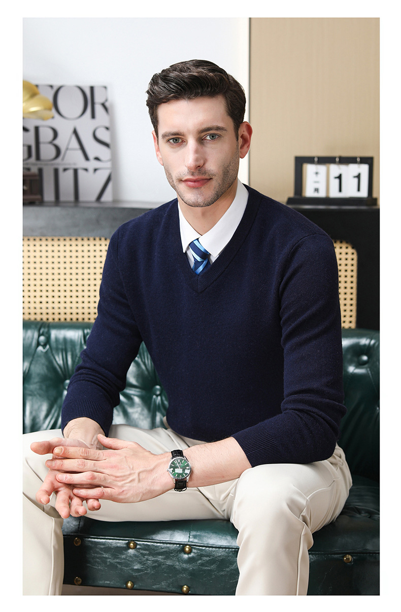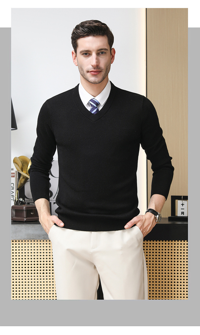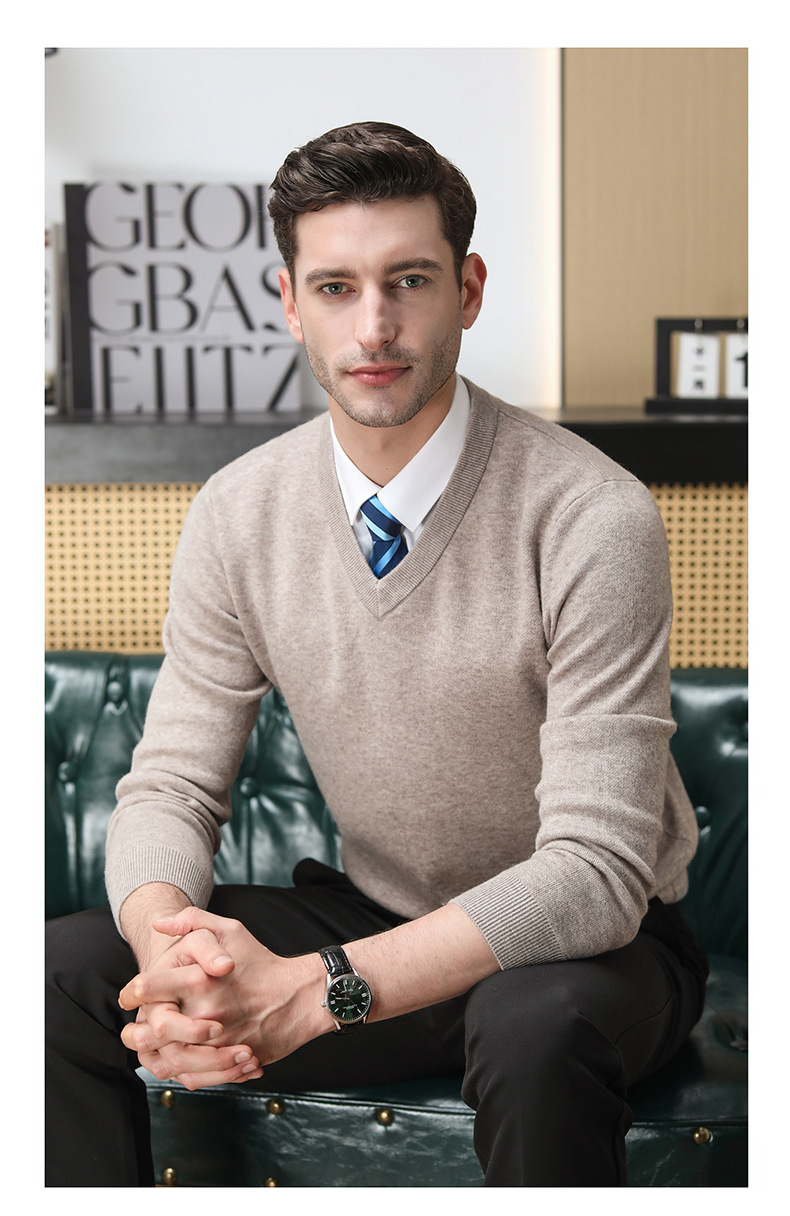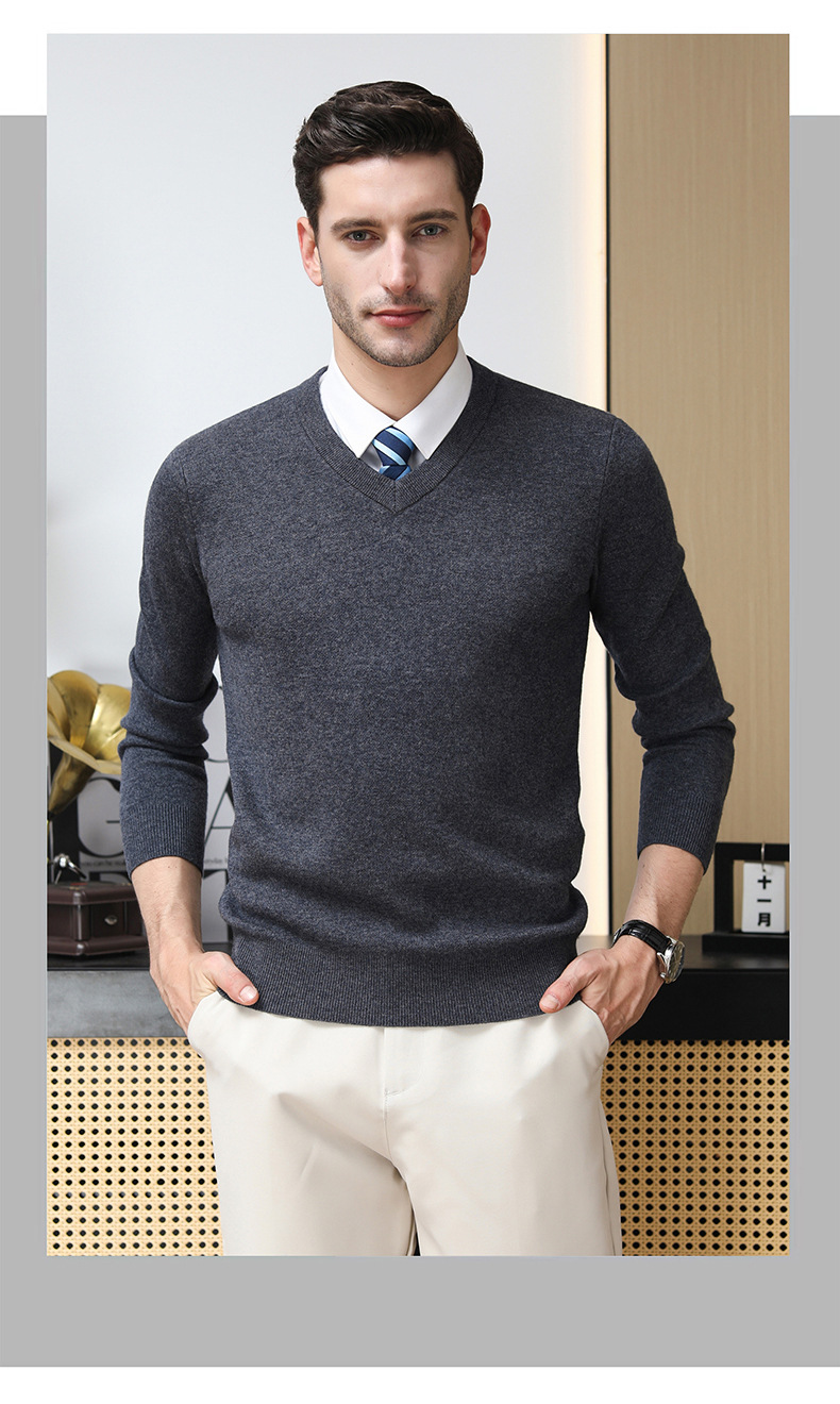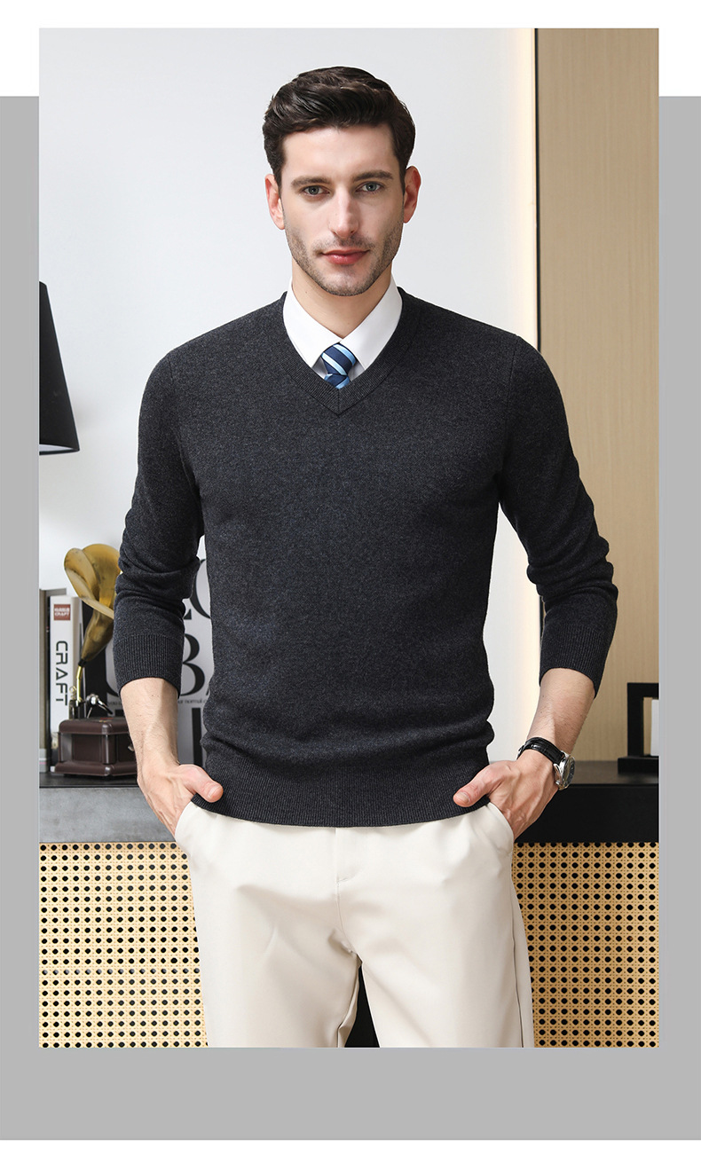 가을과 겨울 100 메리노 울 스웨터 남자 두꺼운 따뜻한 스웨터 솔리드 컬러 V-넥 내베이스 니트 스웨터스토어 가기