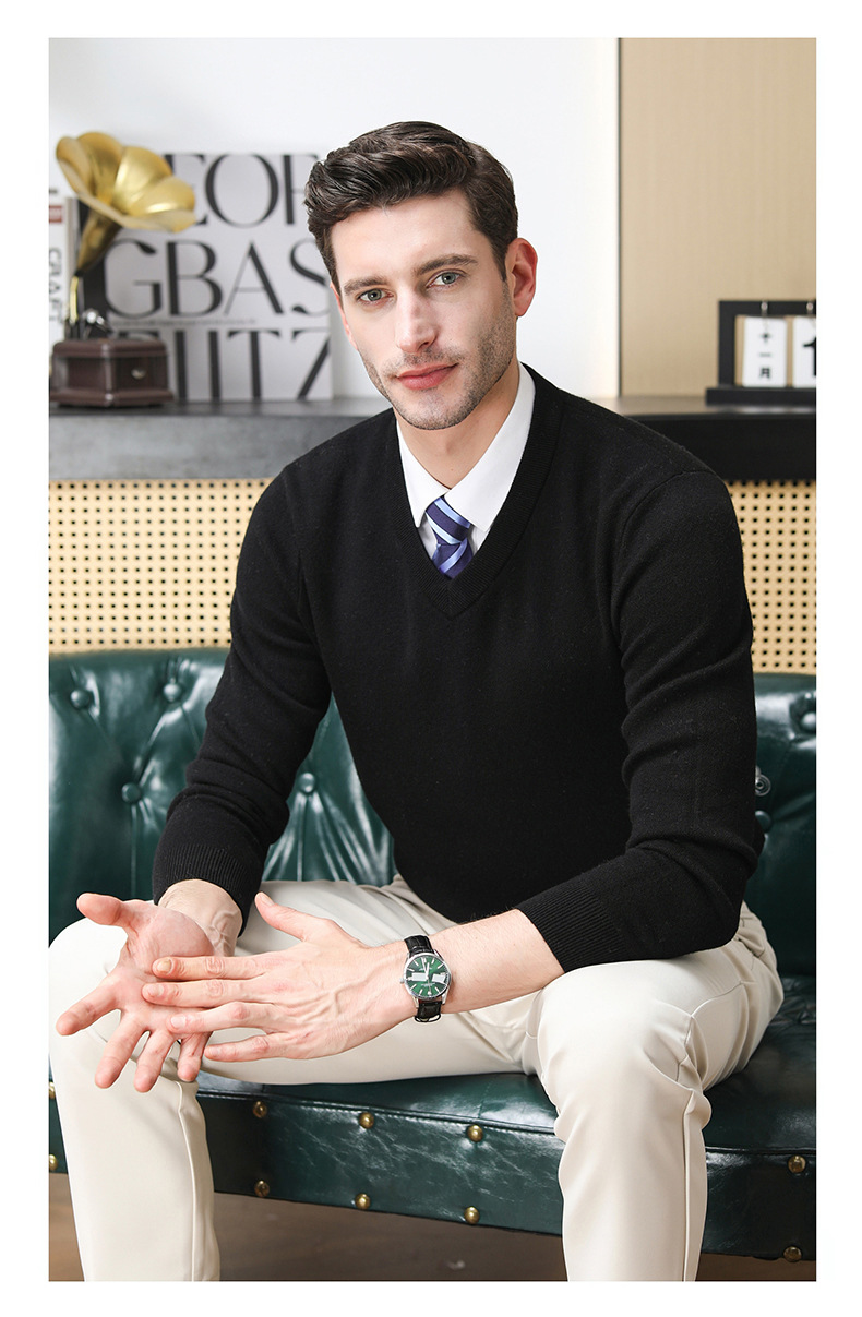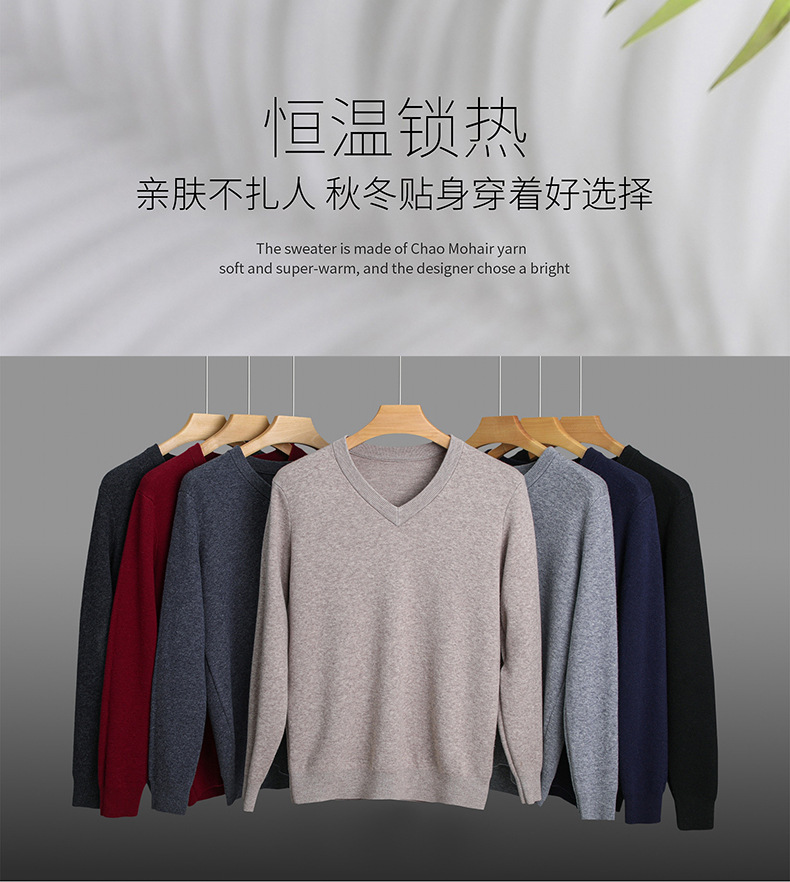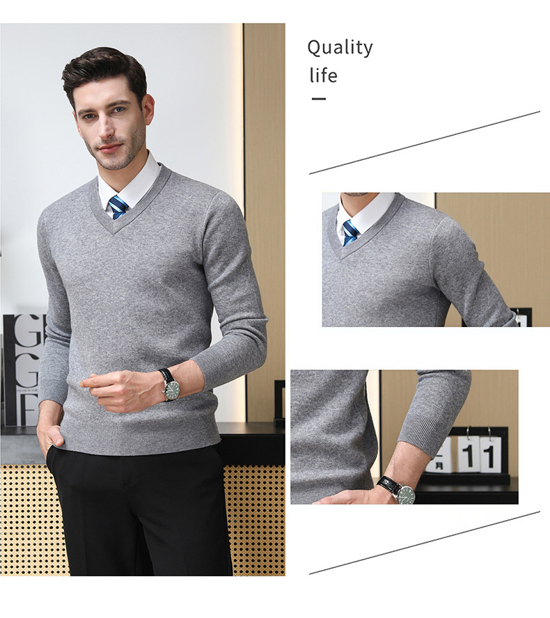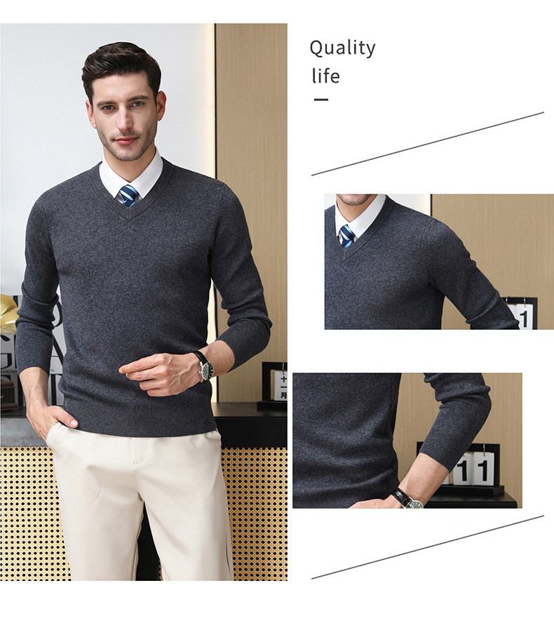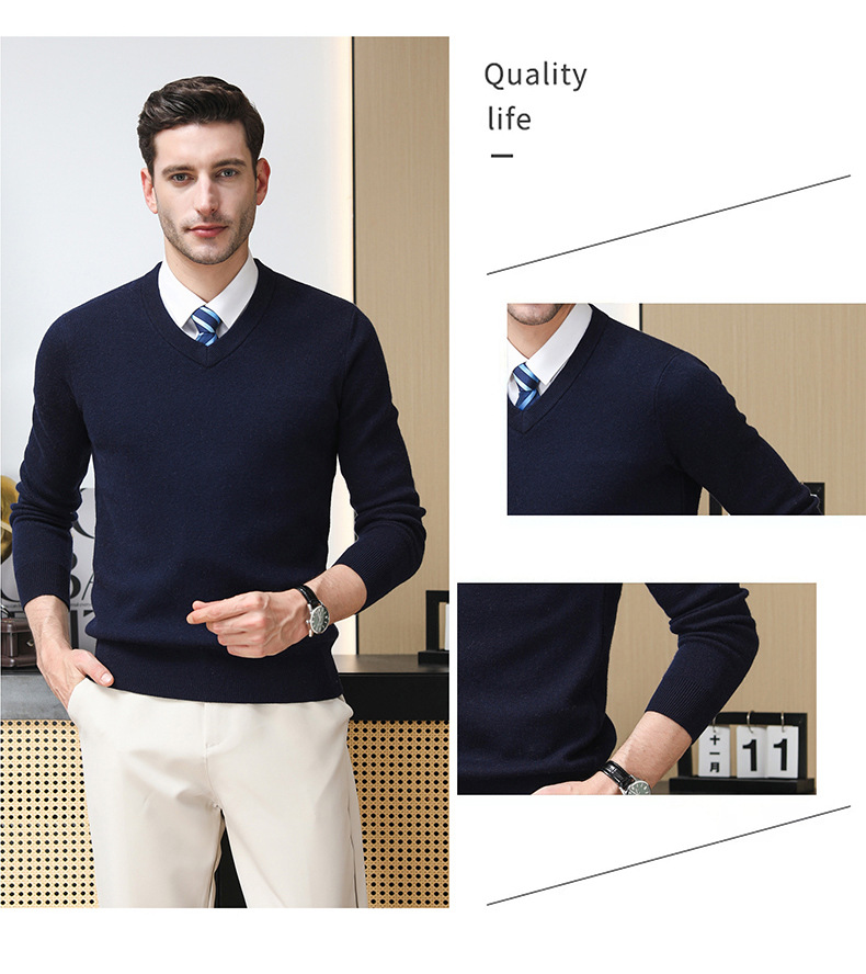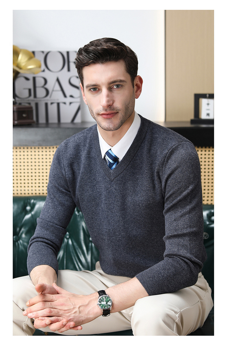 가을과 겨울 100 메리노 울 스웨터 남자 두꺼운 따뜻한 스웨터 솔리드 컬러 V-넥 내베이스 니트 스웨터스토어 가기
