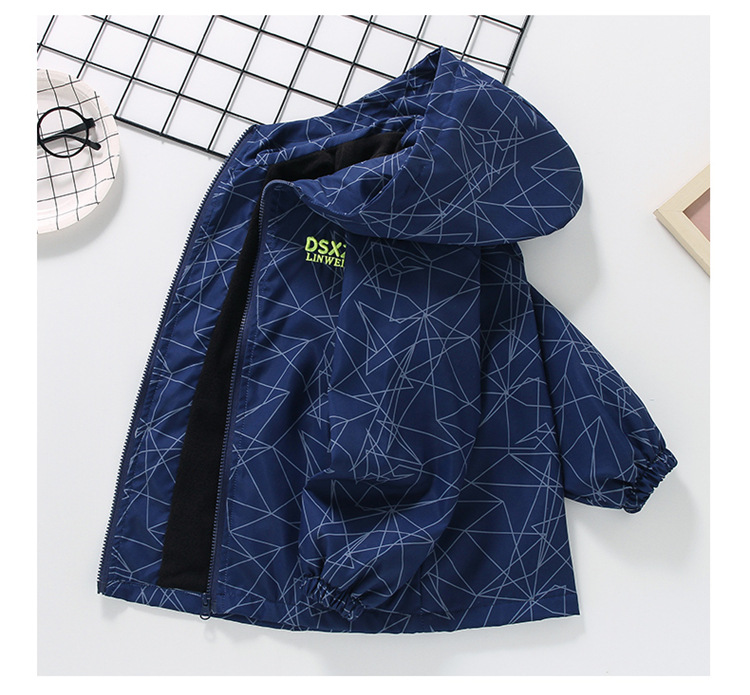 소년의 두꺼운 코트 2024 년 가을과 겨울 새로운 중대형 어린이 원피스 벨벳 러시 옷 가을 소년 후드 재킷스토어 가기