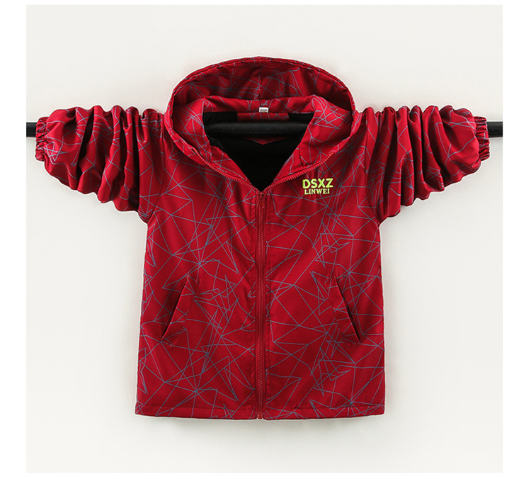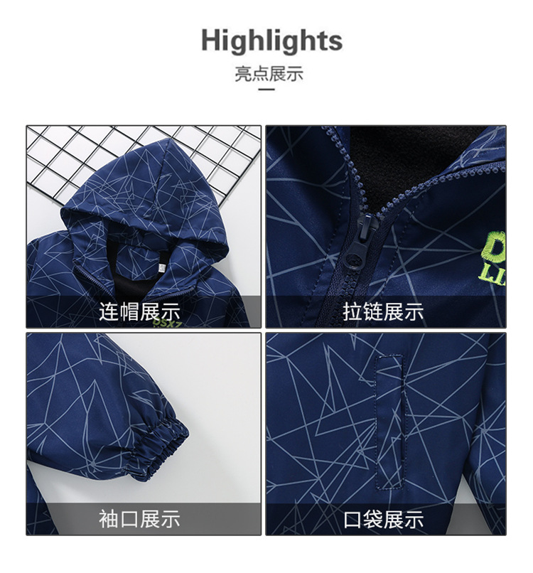 소년의 두꺼운 코트 2024 년 가을과 겨울 새로운 중대형 어린이 원피스 벨벳 러시 옷 가을 소년 후드 재킷