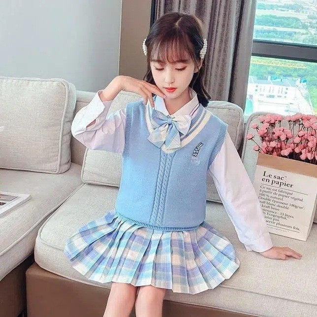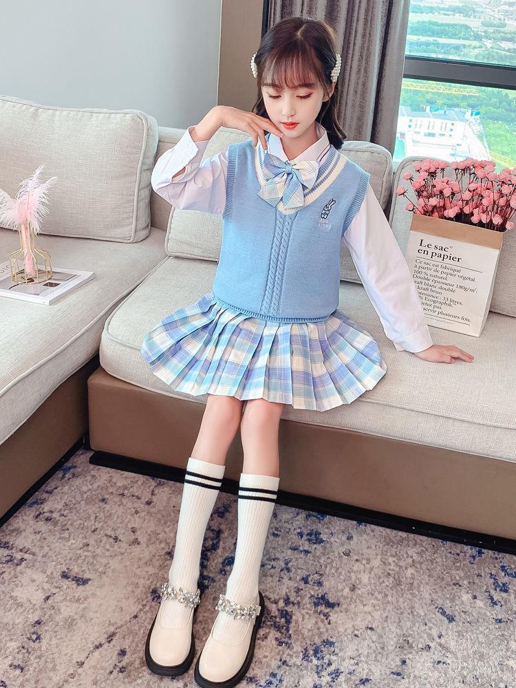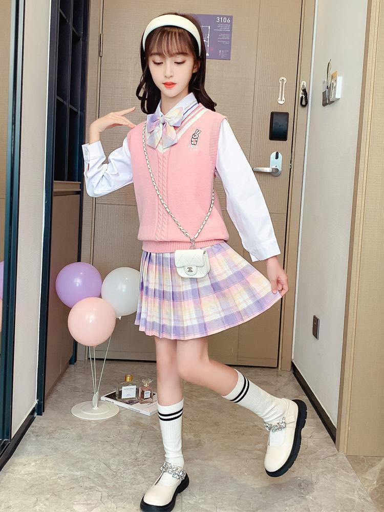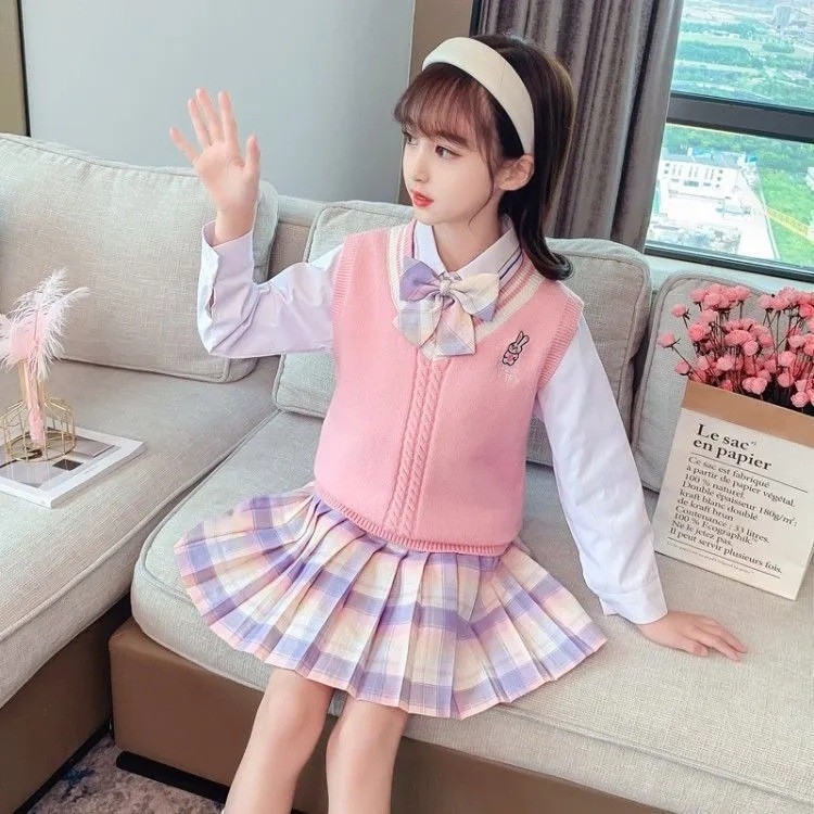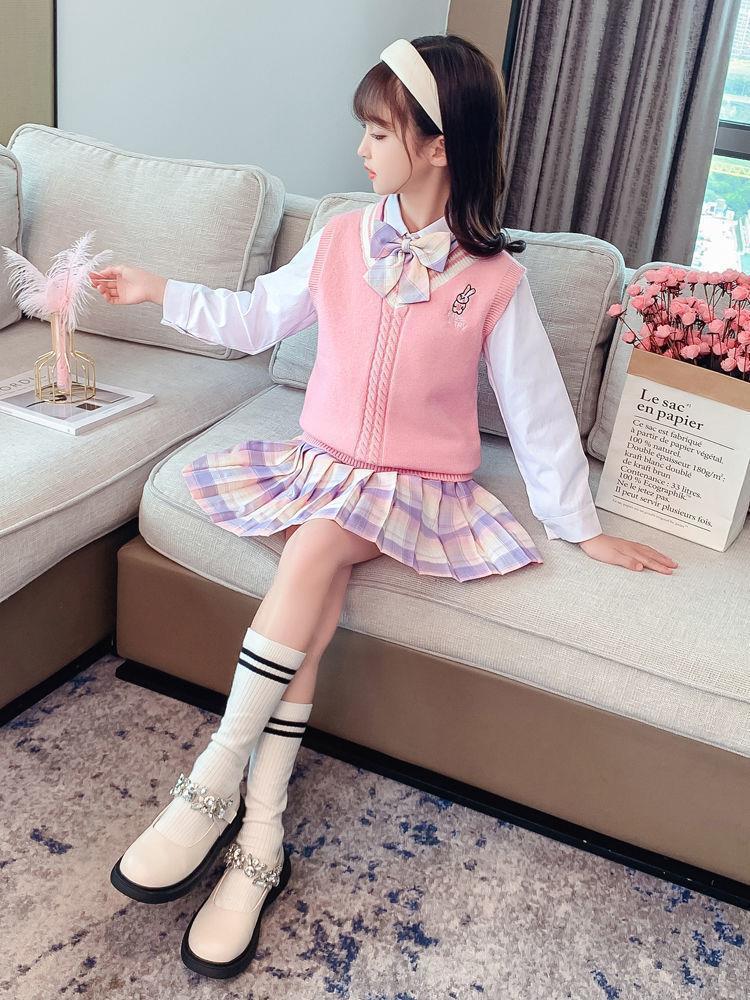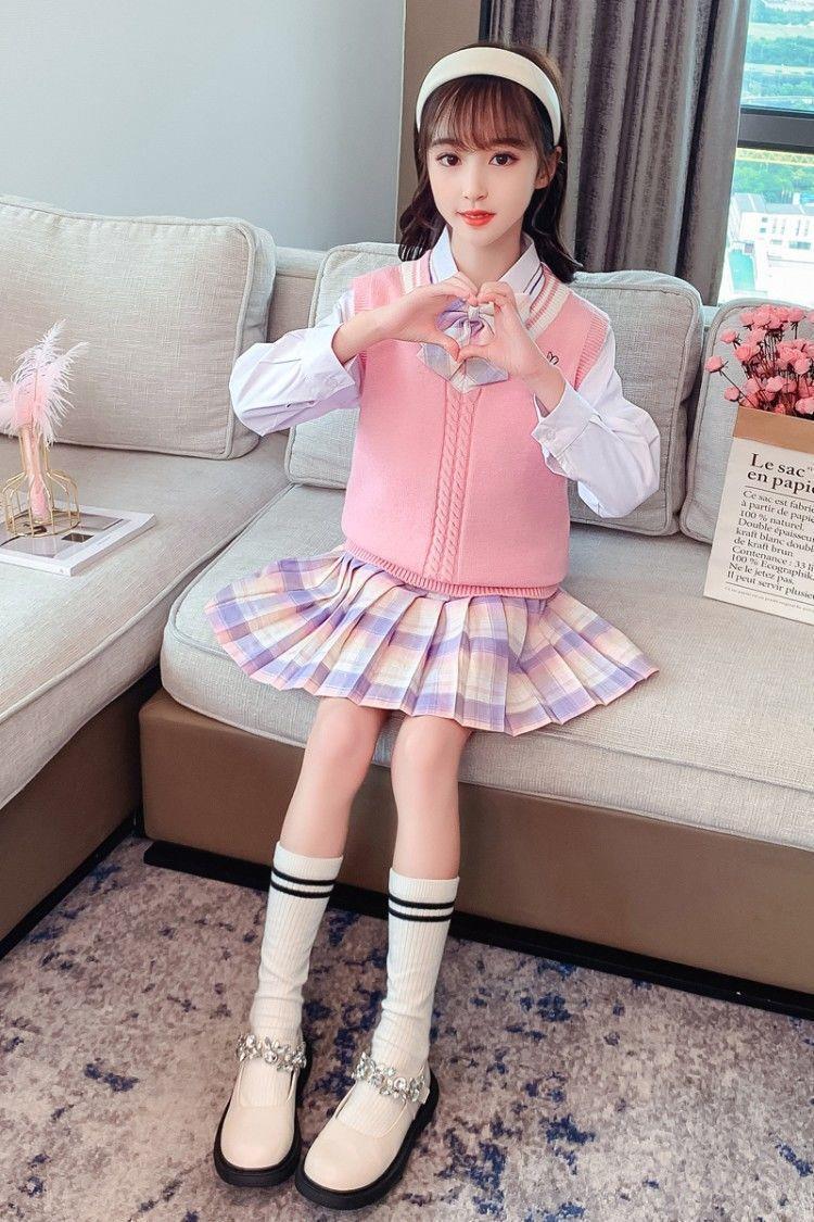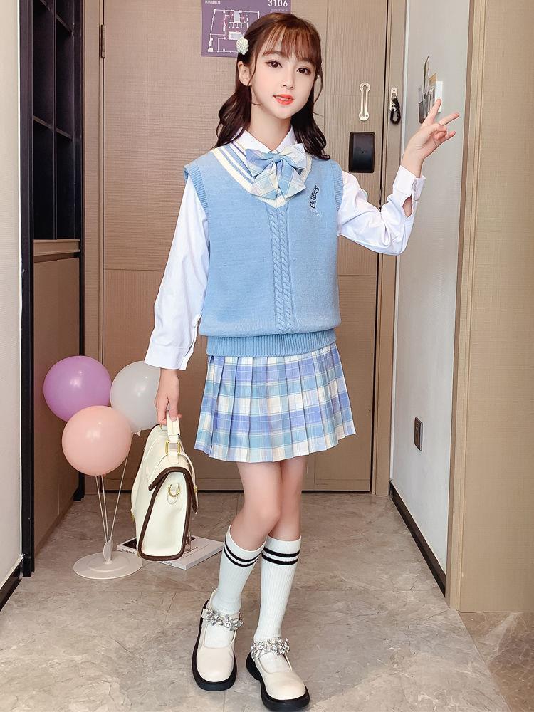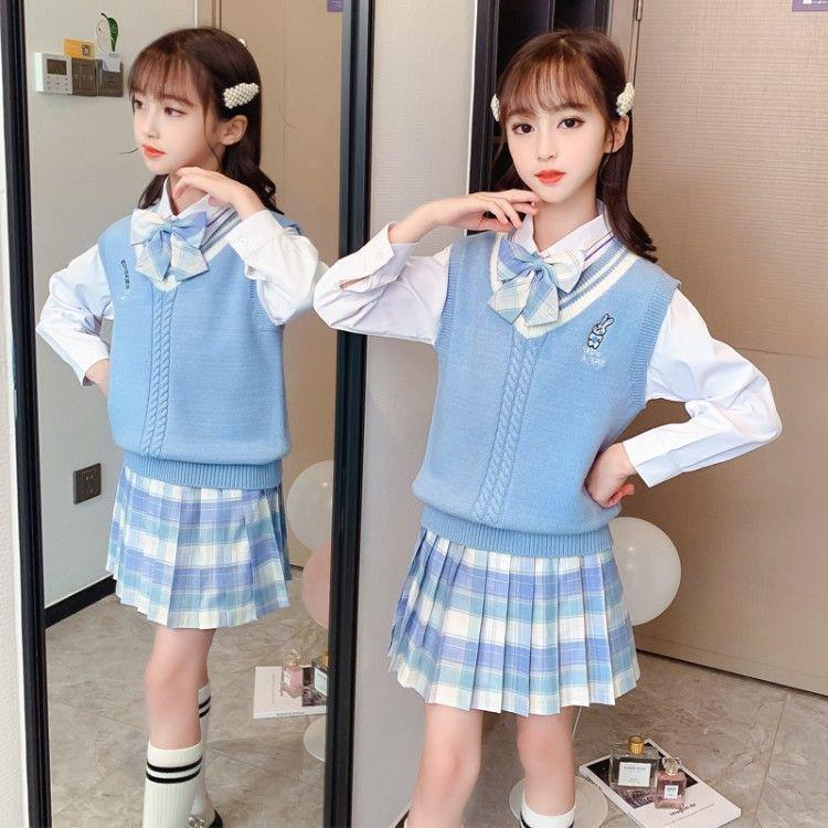 초중고 학생을위한 V 넥 조끼 소녀 니트 조끼 봄 및 가을 스웨터 아동복 올 매치 칼리지 웨이스트 코트 어린이 소녀스토어 가기