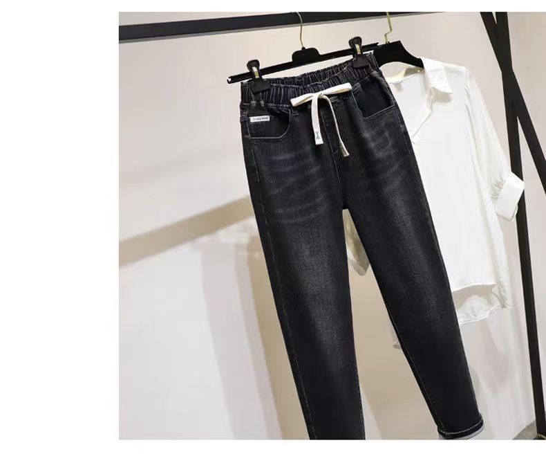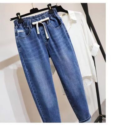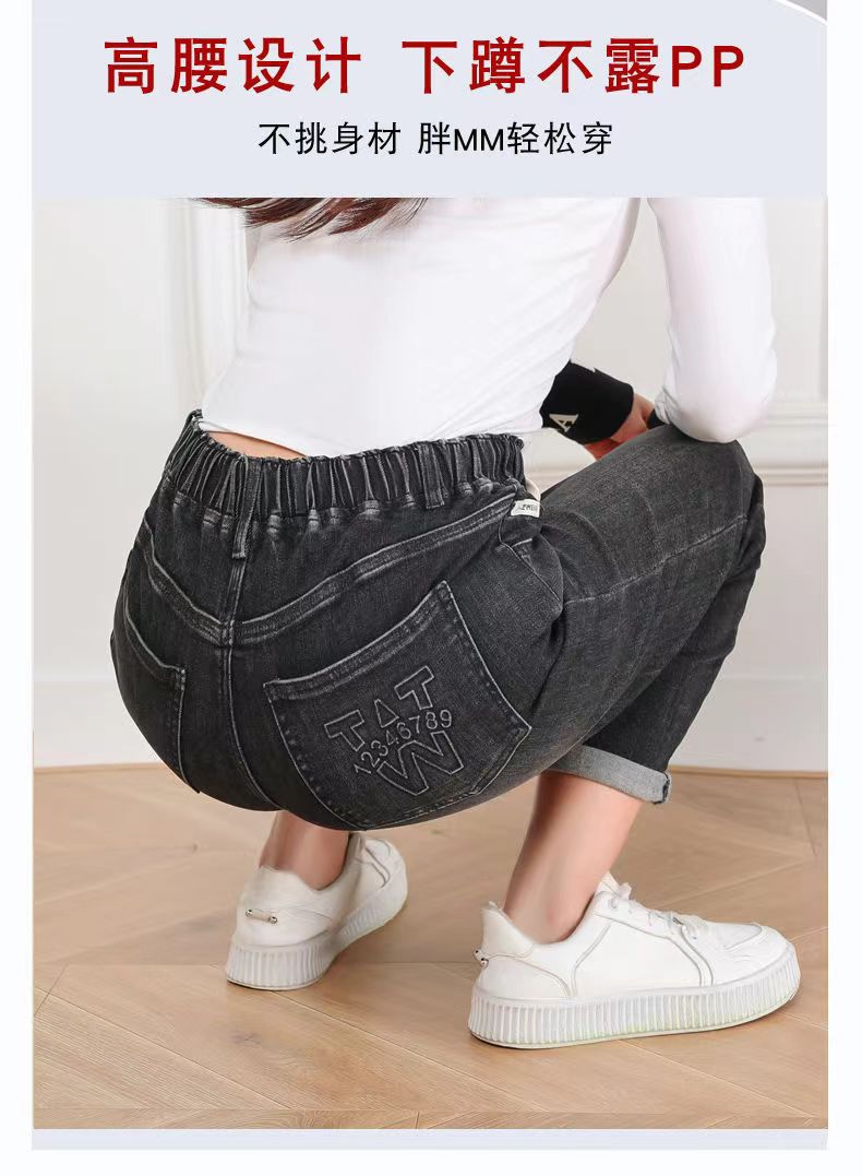 플러스 사이즈 숙녀 청바지 탄성 허리 통통녀 바지 슬림 탄성 200kg 느슨한 플러스 지방 증가 높은 허리 오래