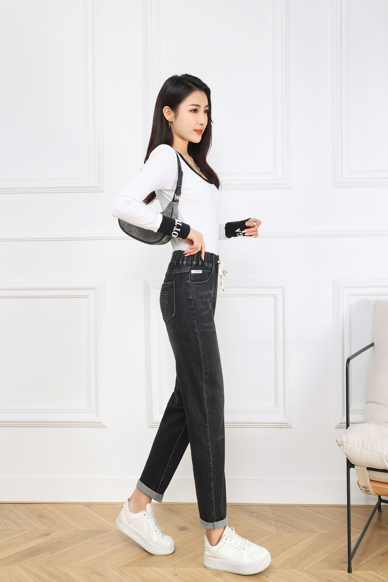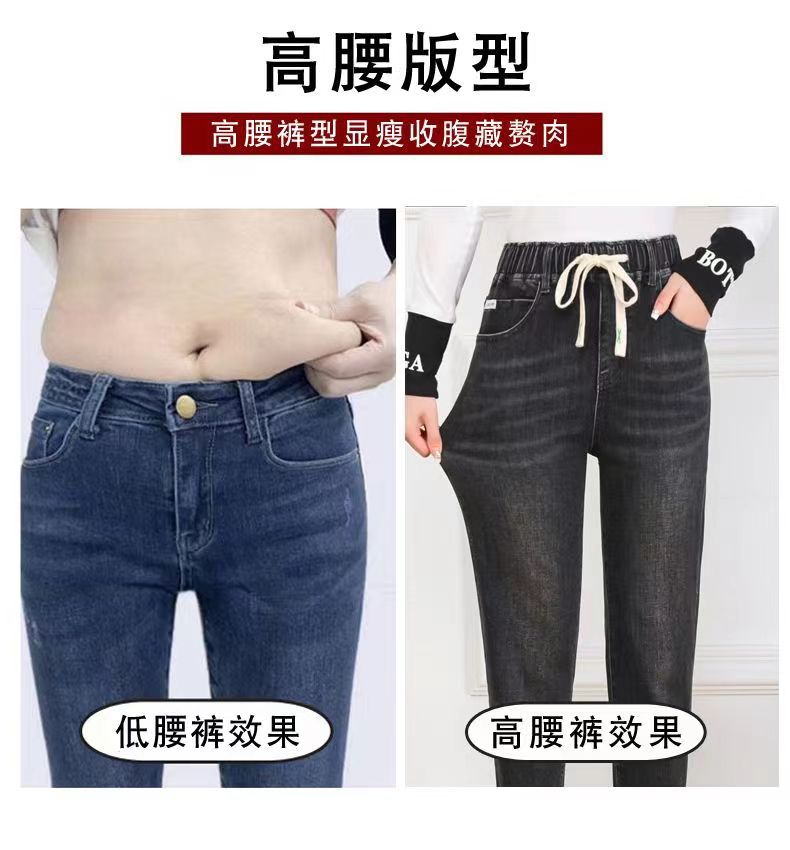 플러스 사이즈 숙녀 청바지 탄성 허리 통통녀 바지 슬림 탄성 200kg 느슨한 플러스 지방 증가 높은 허리 오래스토어 가기