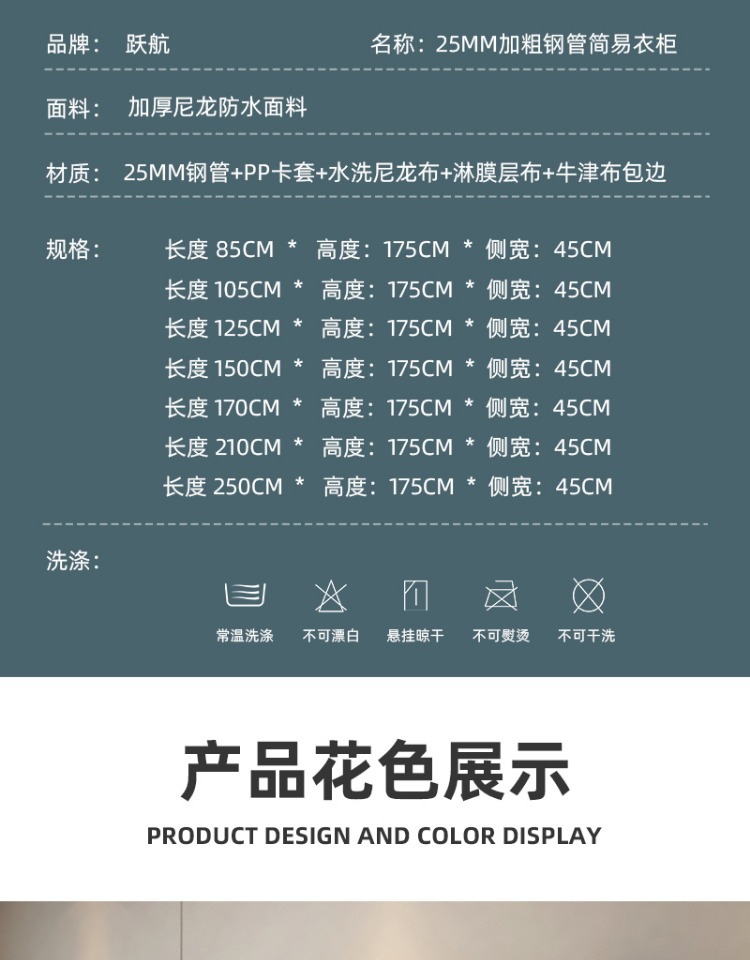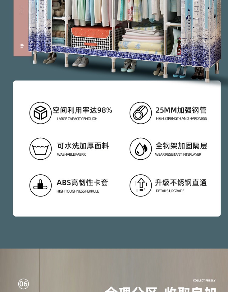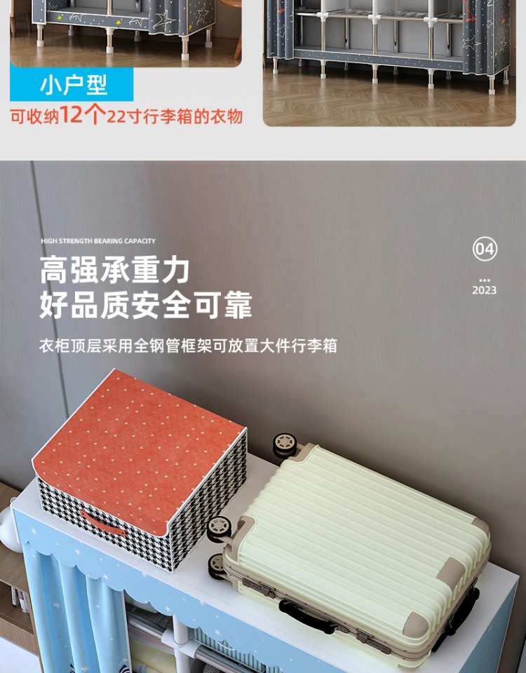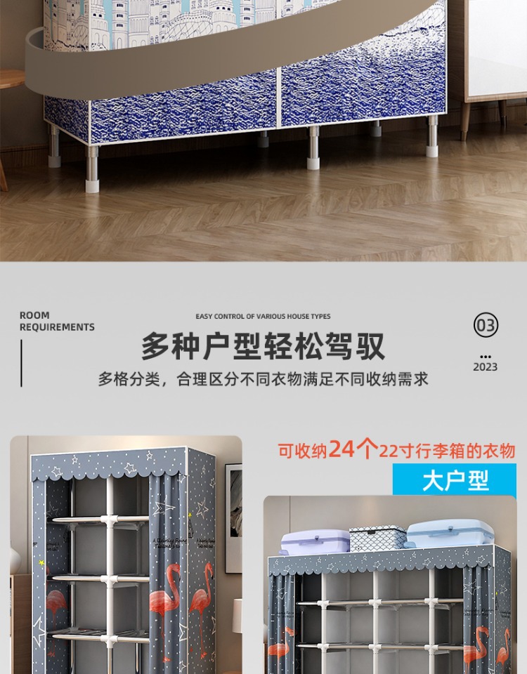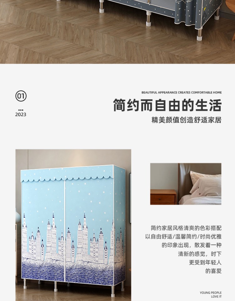 간단한 옷장 강철 파이프 굵게 강화 기숙사 보관 캐비닛 옷장 직물 옷장 대여 현대 신제품