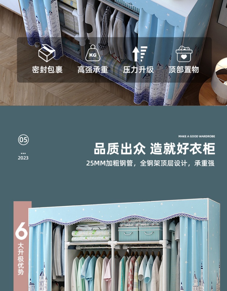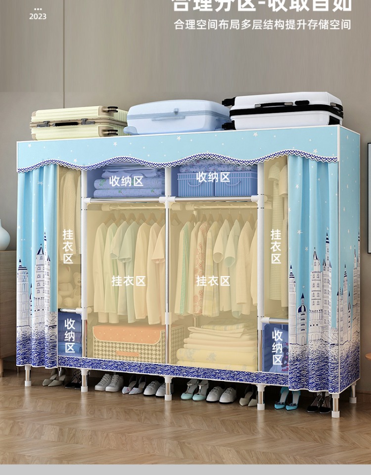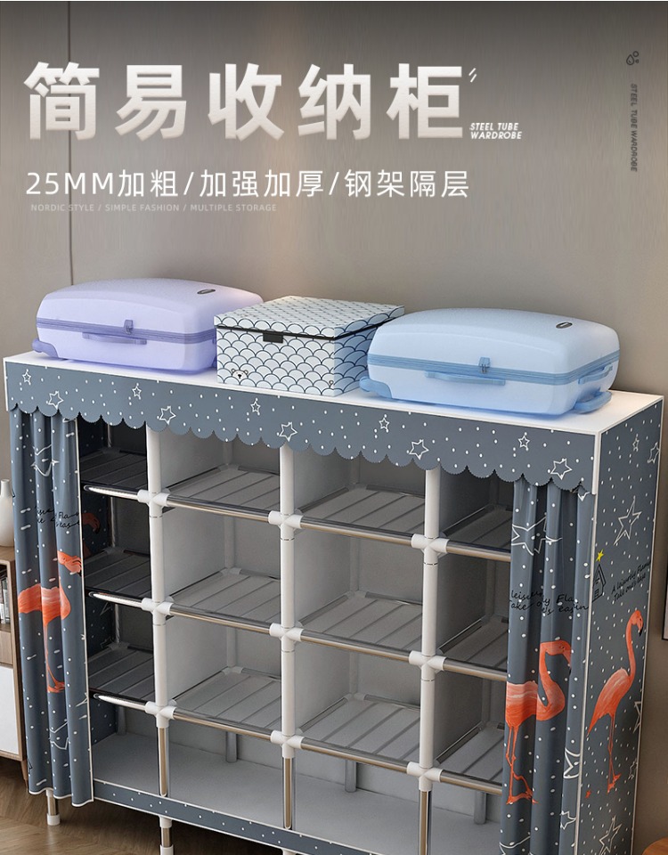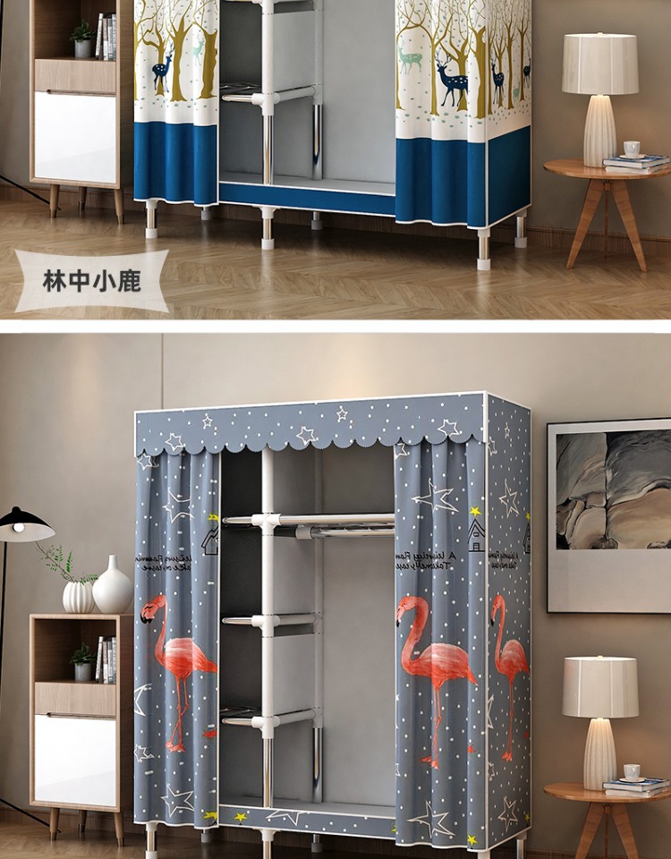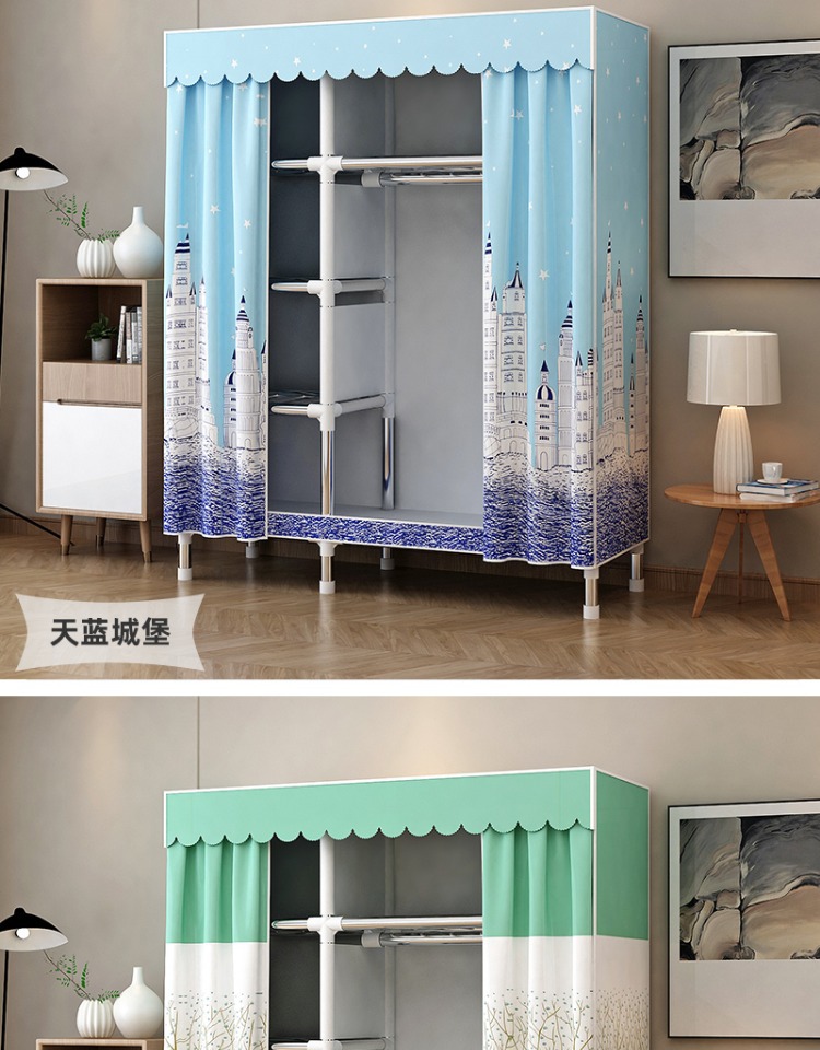 간단한 옷장 강철 파이프 굵게 강화 기숙사 보관 캐비닛 옷장 직물 옷장 대여 현대 신제품스토어 가기