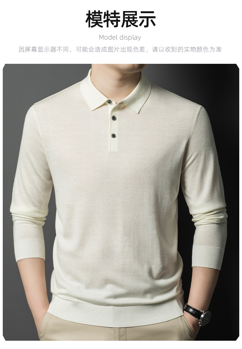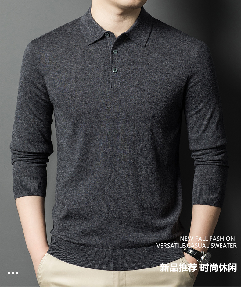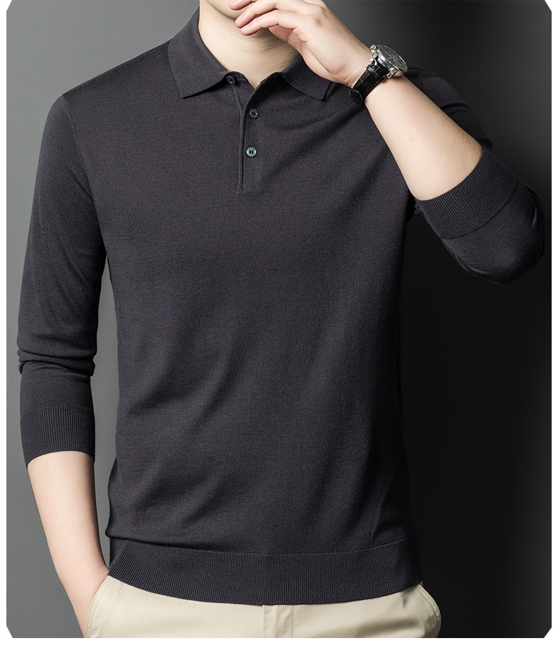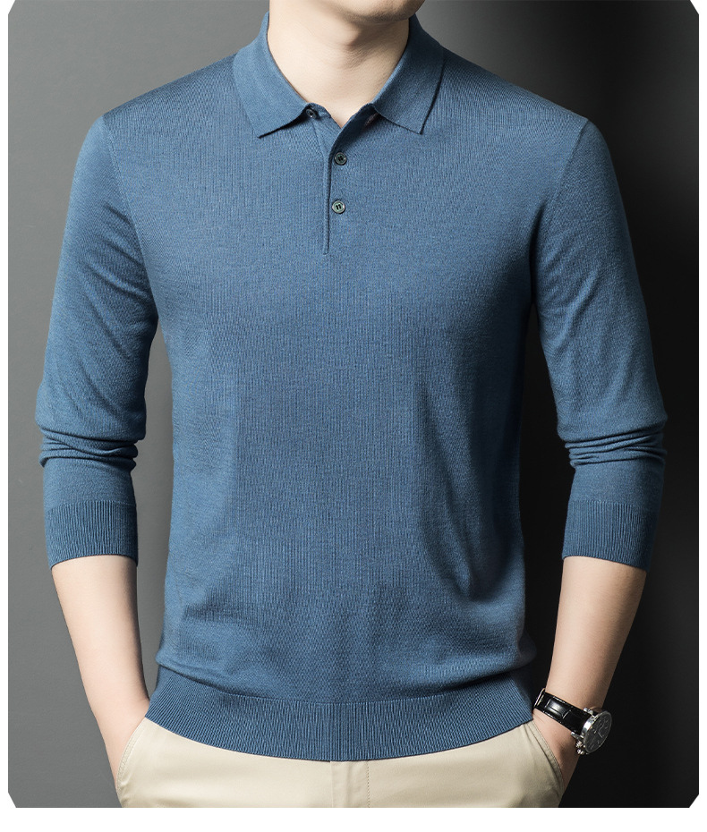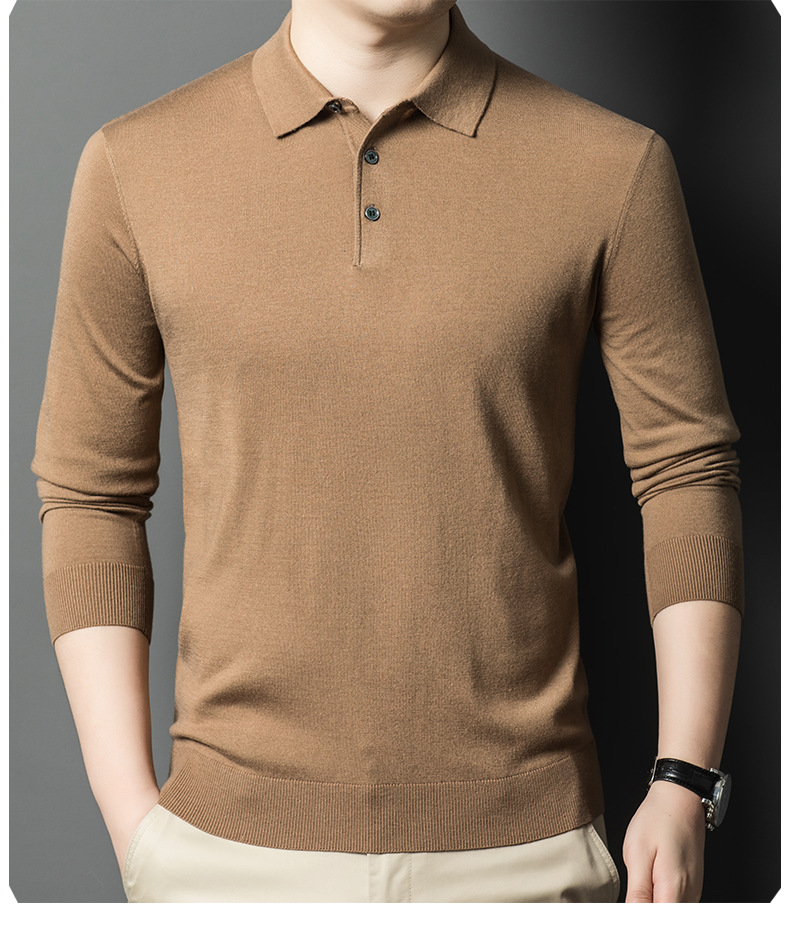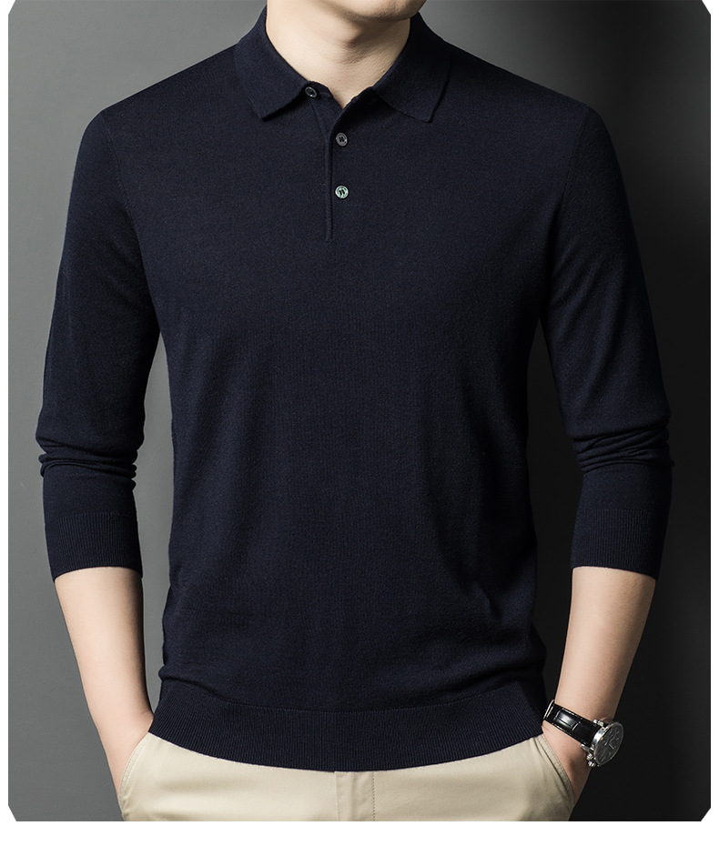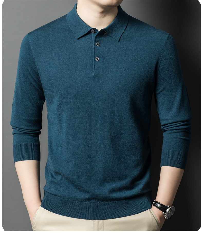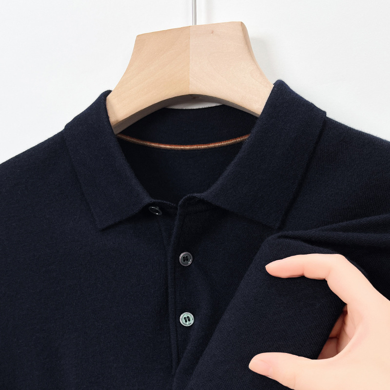 새로운 고급 단색 뽕나무 실크 울 스웨터 남성 중년 가을과 겨울 옷깃 조커 남성 폴로 셔츠 도매스토어 가기