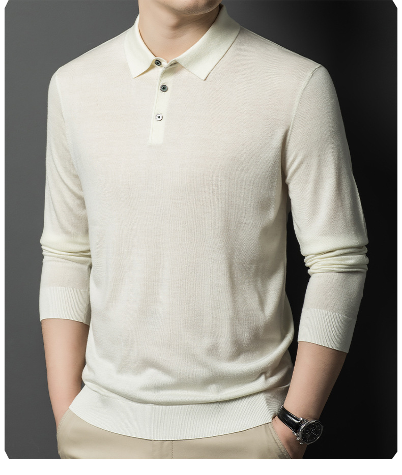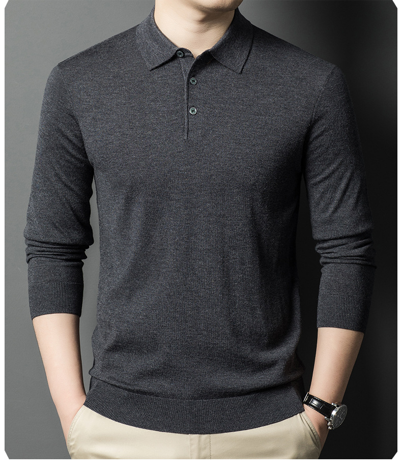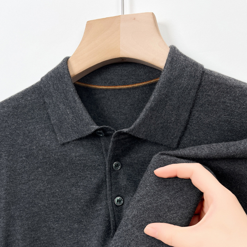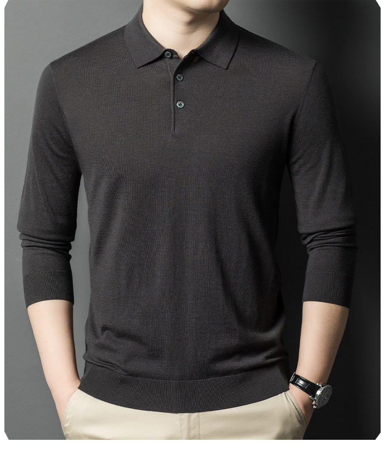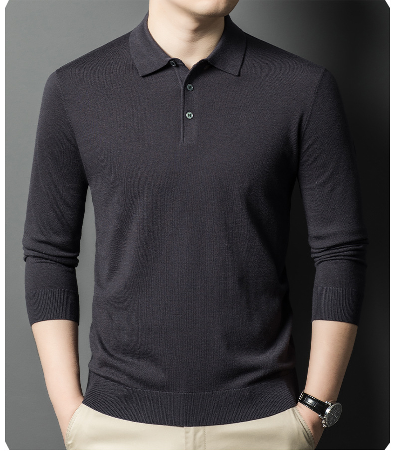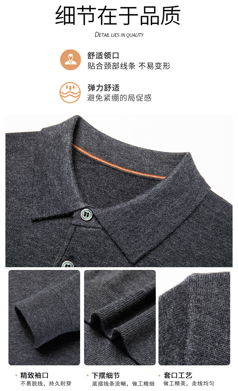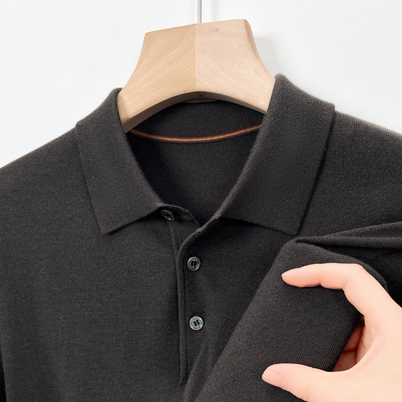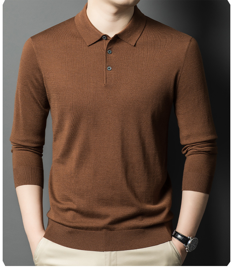 새로운 고급 단색 뽕나무 실크 울 스웨터 남성 중년 가을과 겨울 옷깃 조커 남성 폴로 셔츠 도매스토어 가기