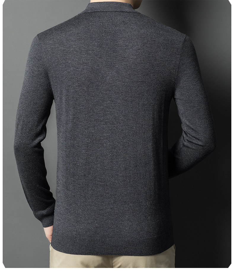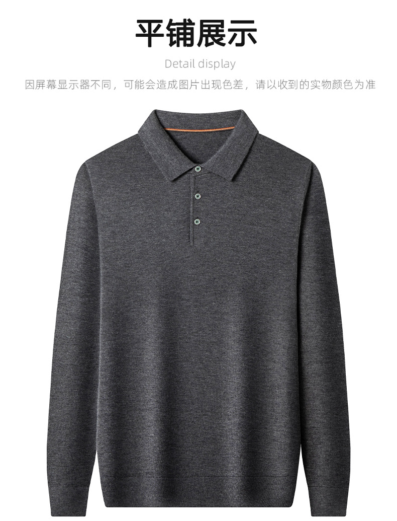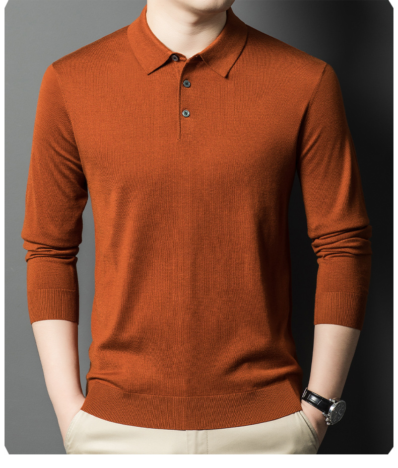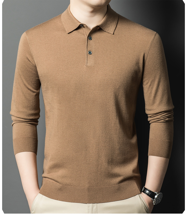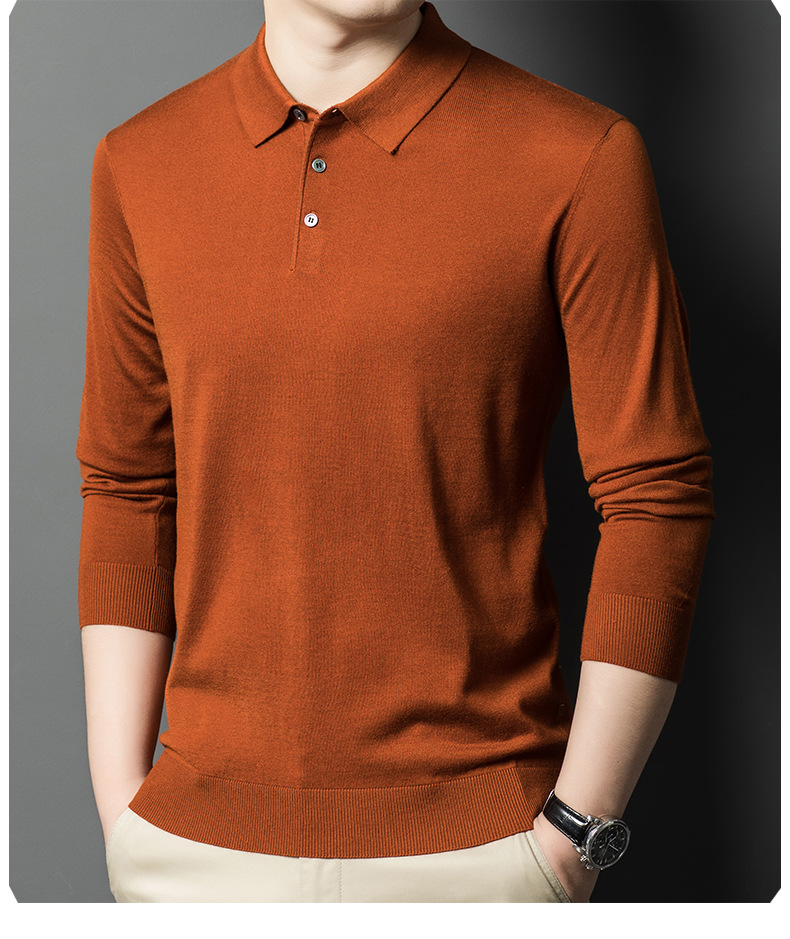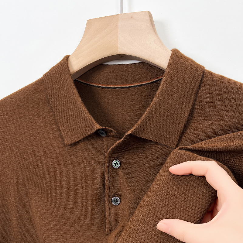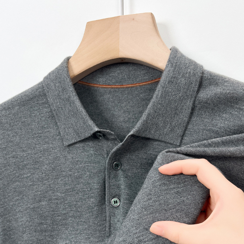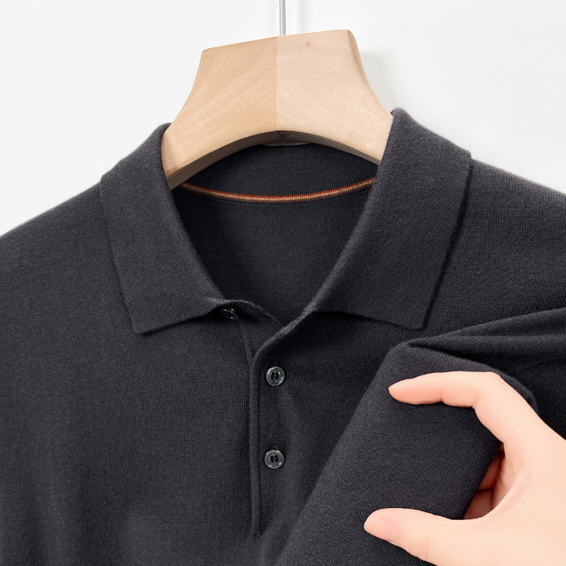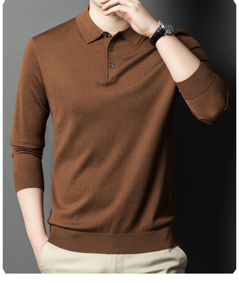 새로운 고급 단색 뽕나무 실크 울 스웨터 남성 중년 가을과 겨울 옷깃 조커 남성 폴로 셔츠 도매스토어 가기