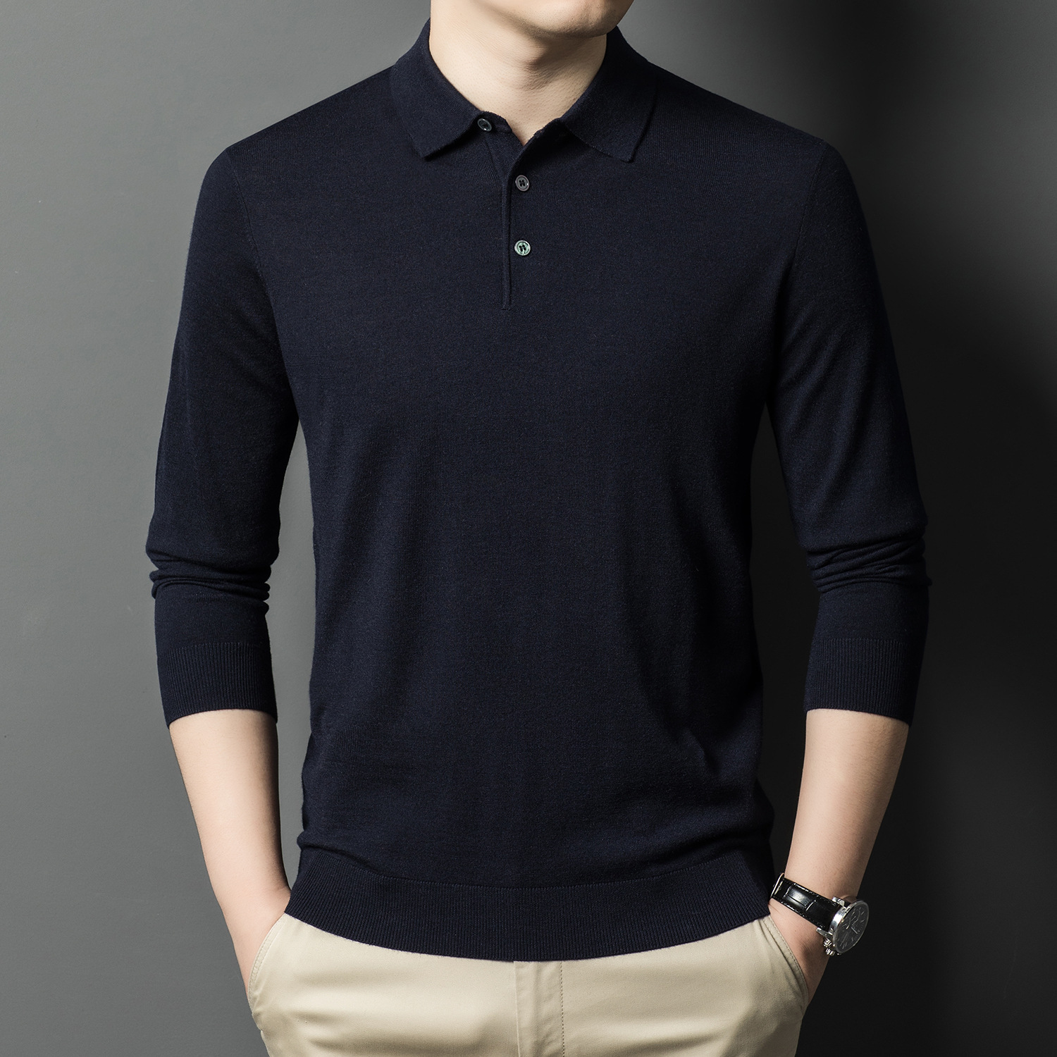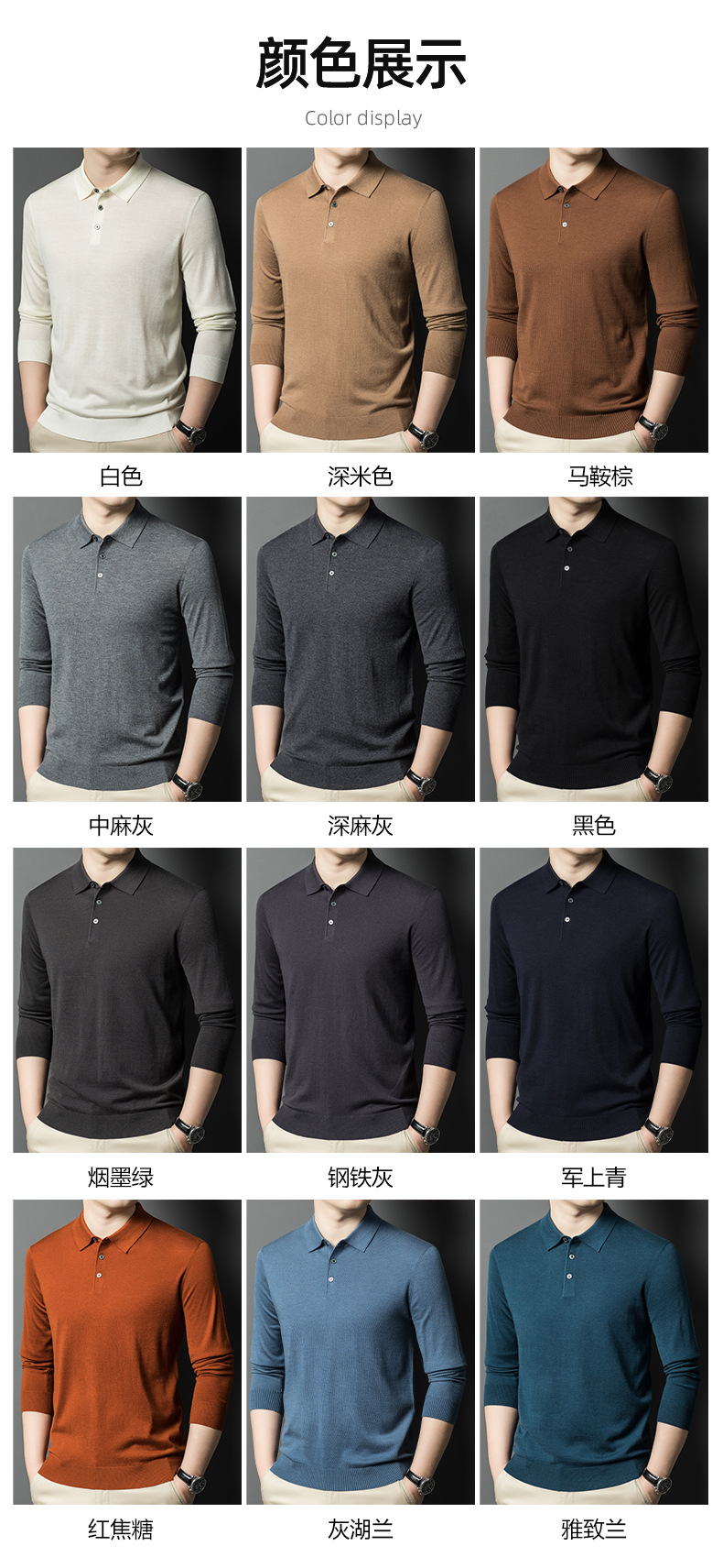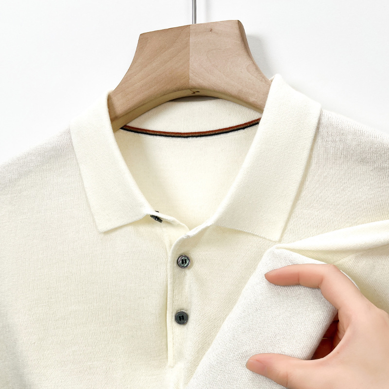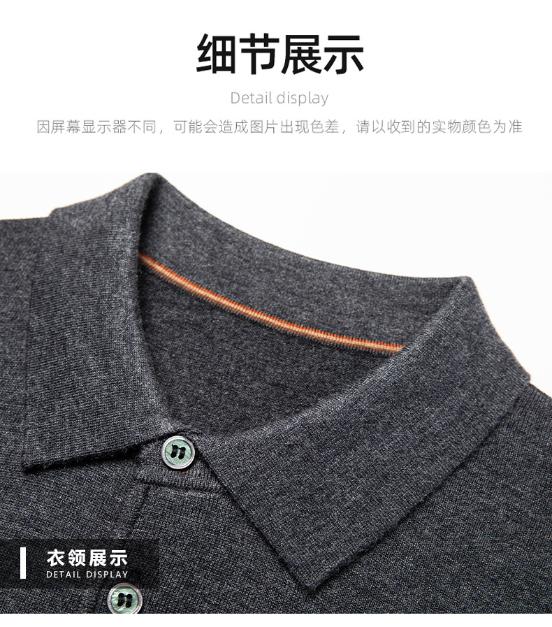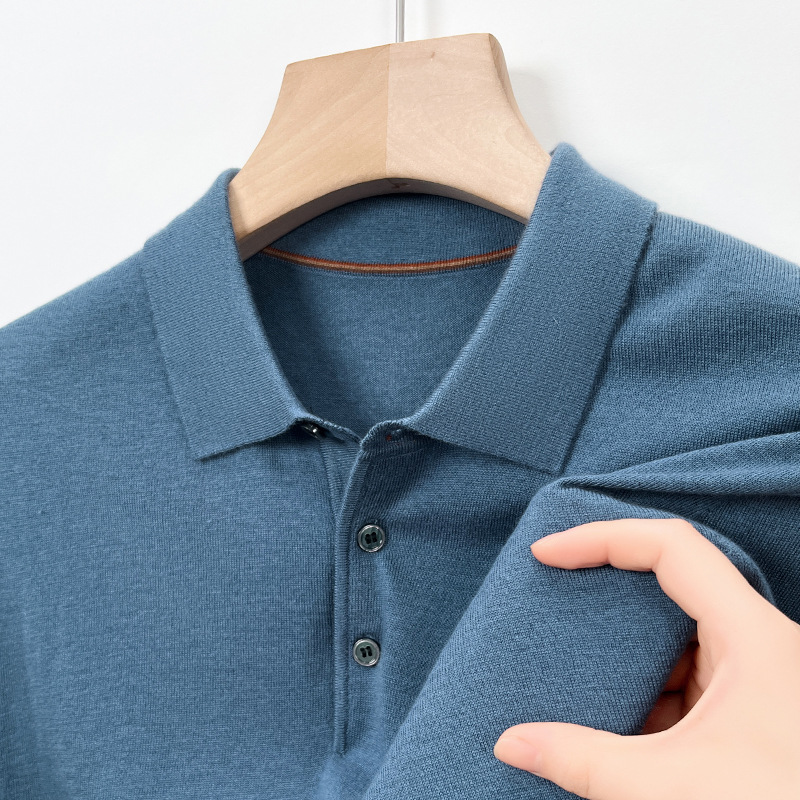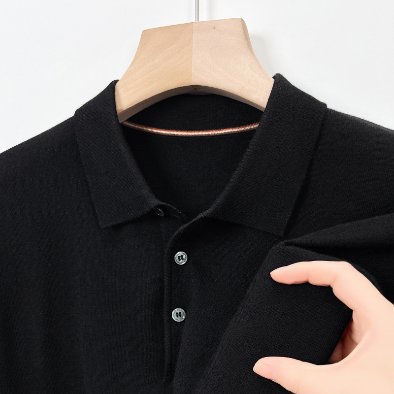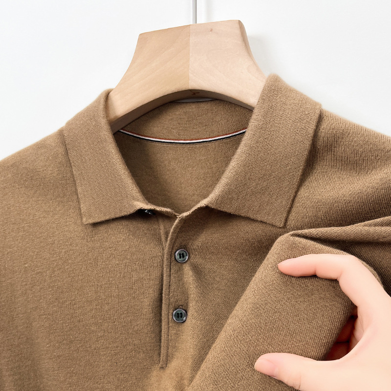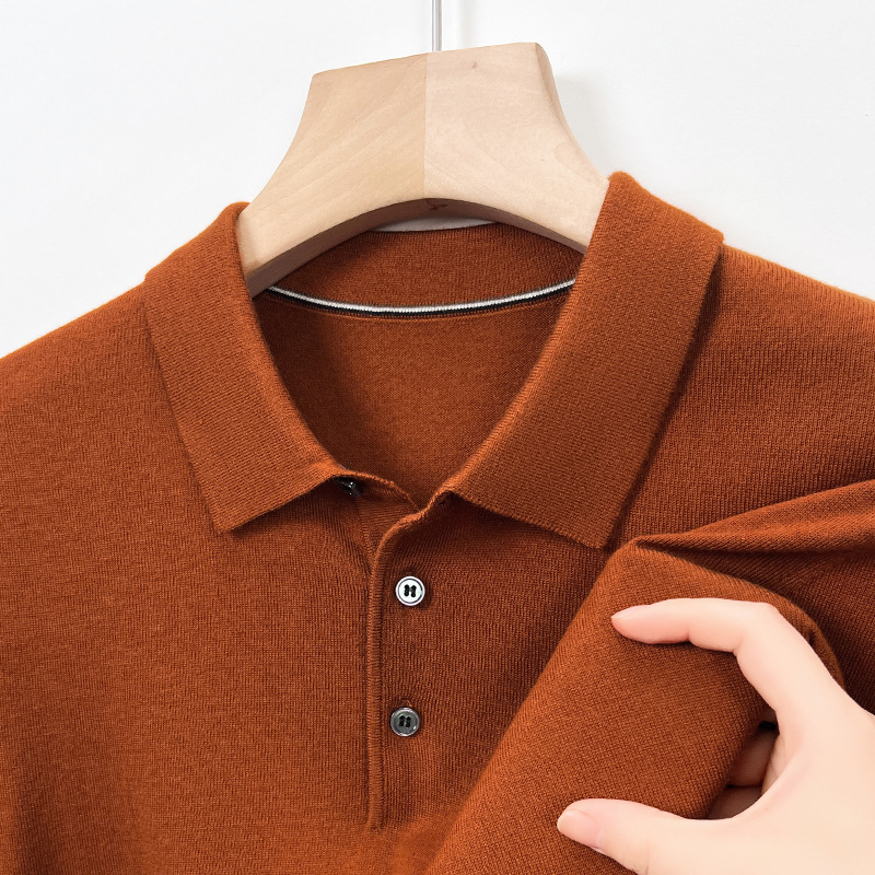 새로운 고급 단색 뽕나무 실크 울 스웨터 남성 중년 가을과 겨울 옷깃 조커 남성 폴로 셔츠 도매스토어 가기
